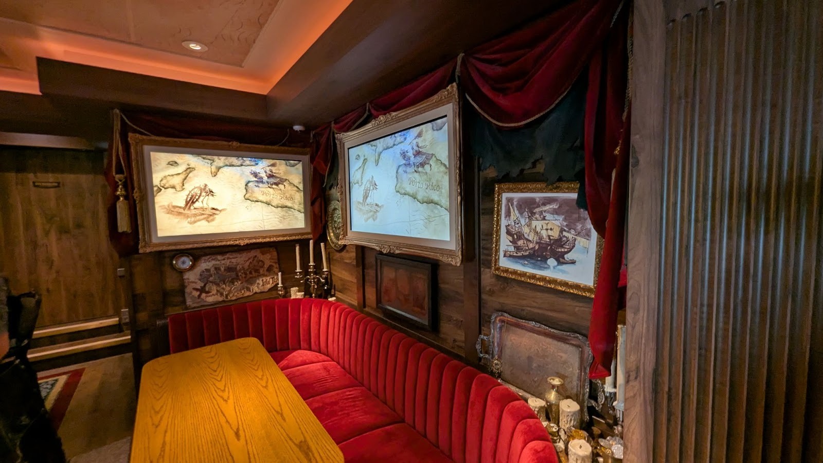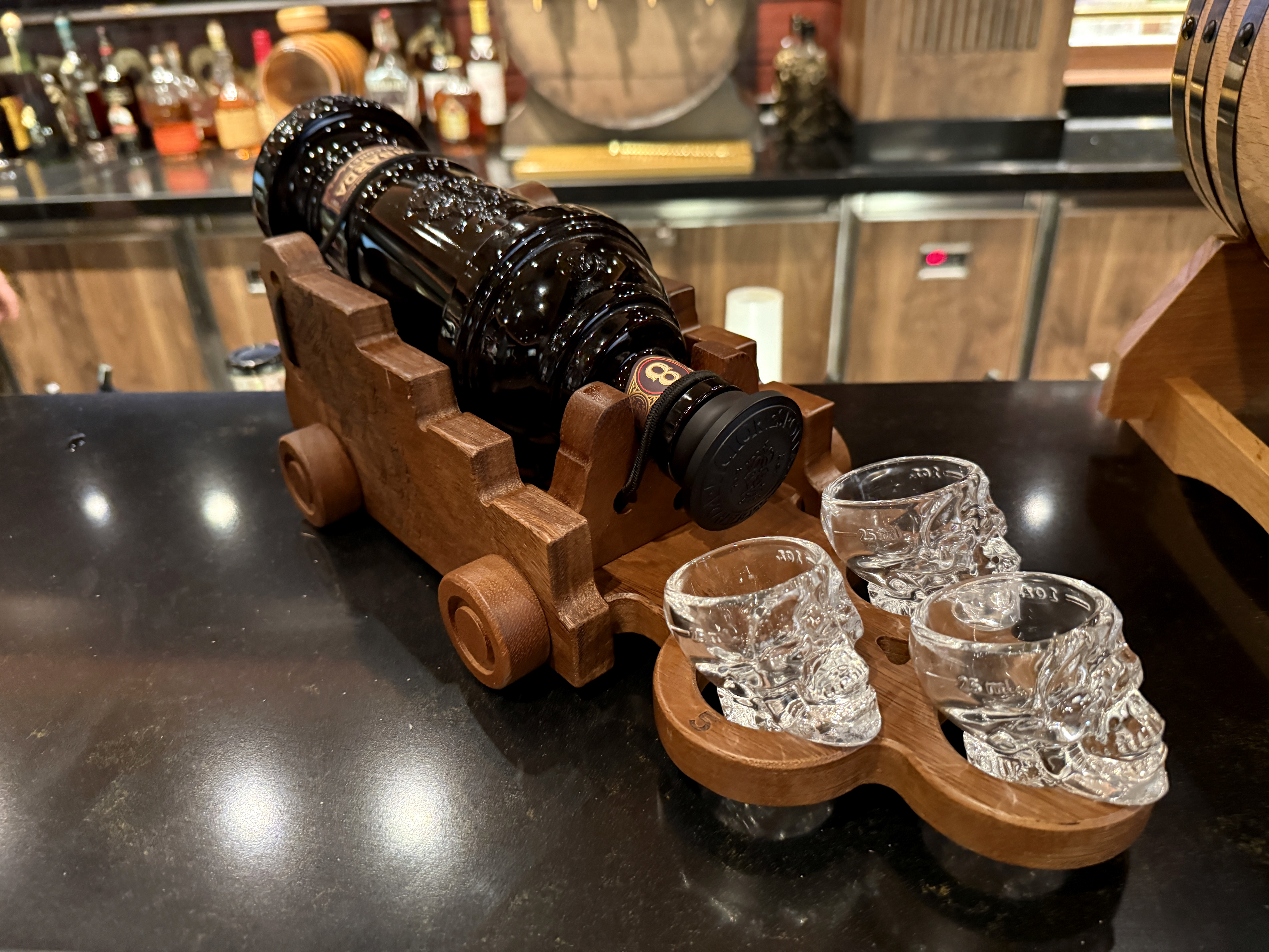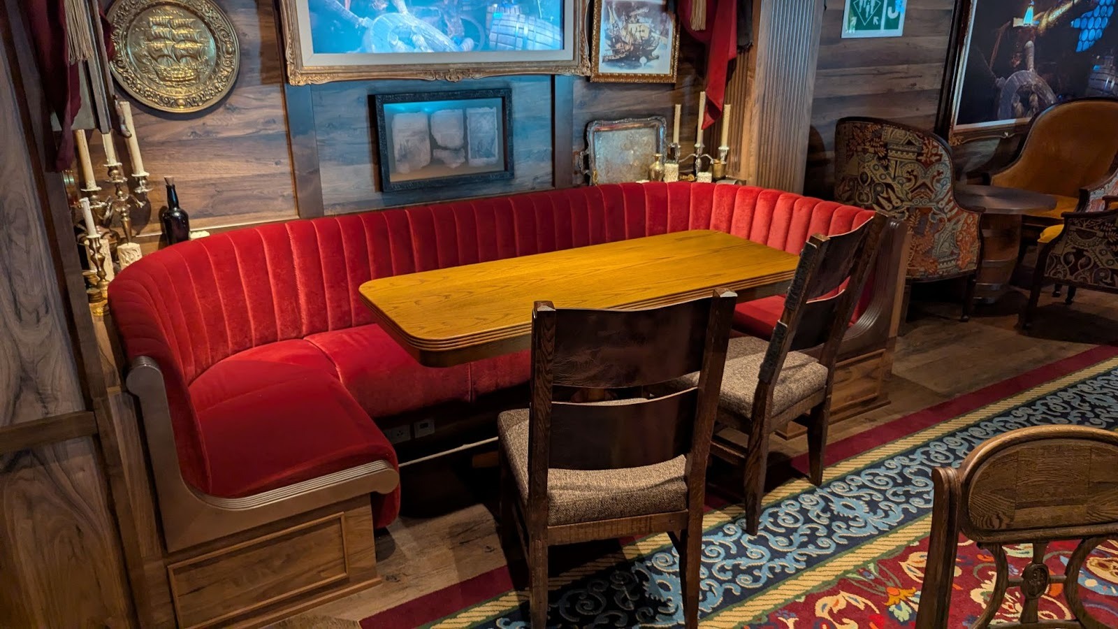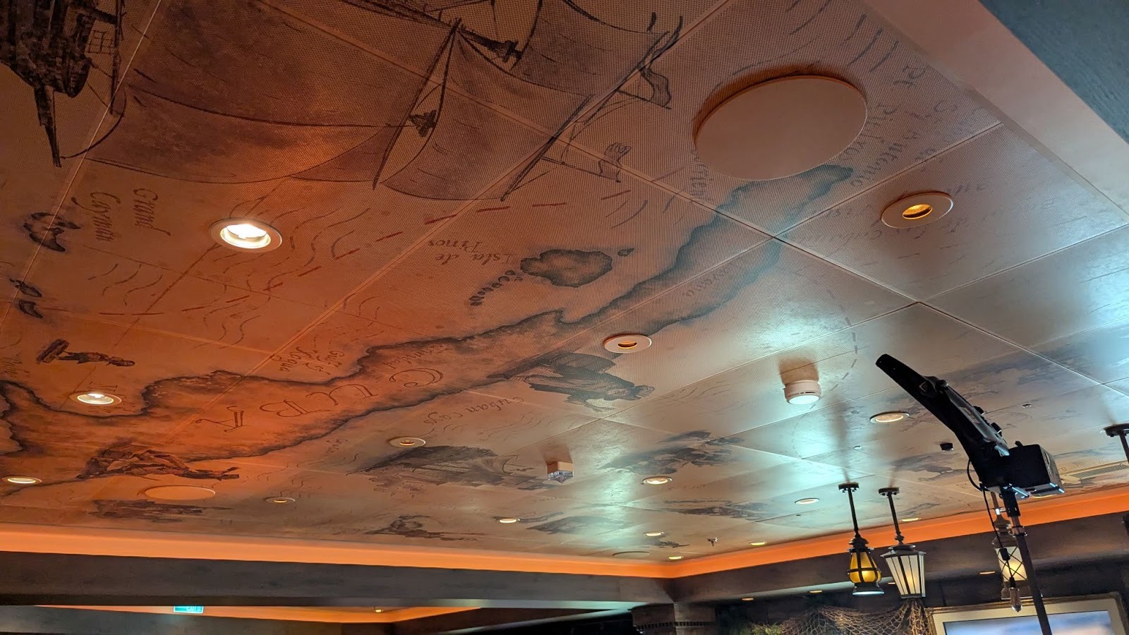 - The entire venue is loaded with nautical motifs and pirate iconography, including: