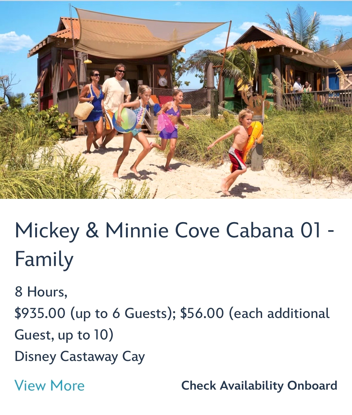 - The Family Beach Cabanas at the island now have a new name - “Sandcastle Cabanas”. Those looking to book a Sandcastle Cabana can now find them under that name under the My Cruise Activities / Port Adventures tab on the Disney Cruise Line app.