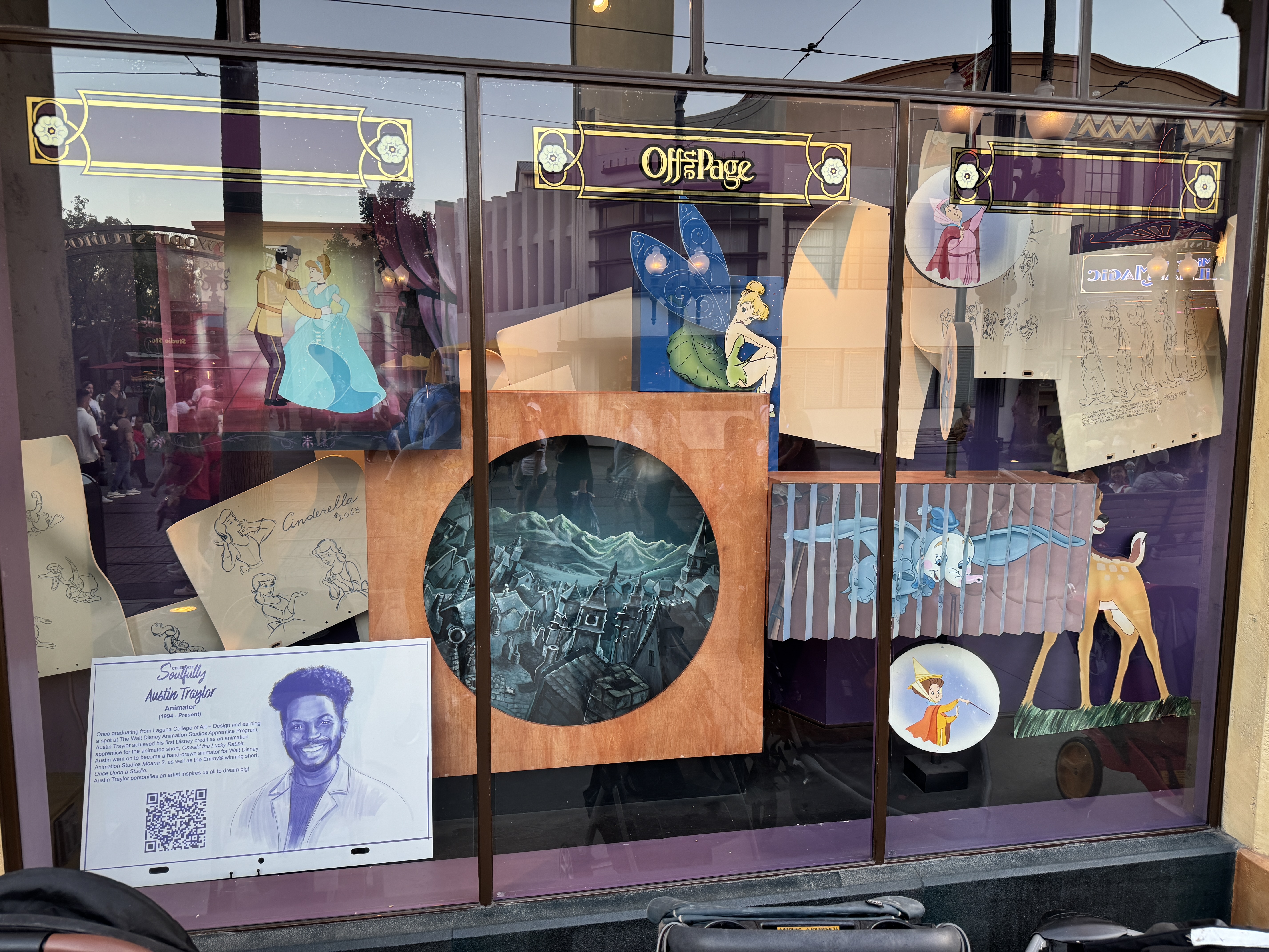 A window dedicated to Disney's first Black animator, Ron Husband, was being prepared during our visit. Some of Ron's sketches of characters such as Gaston are displayed in the window, but it has yet to receive any dedication to Ron himself.