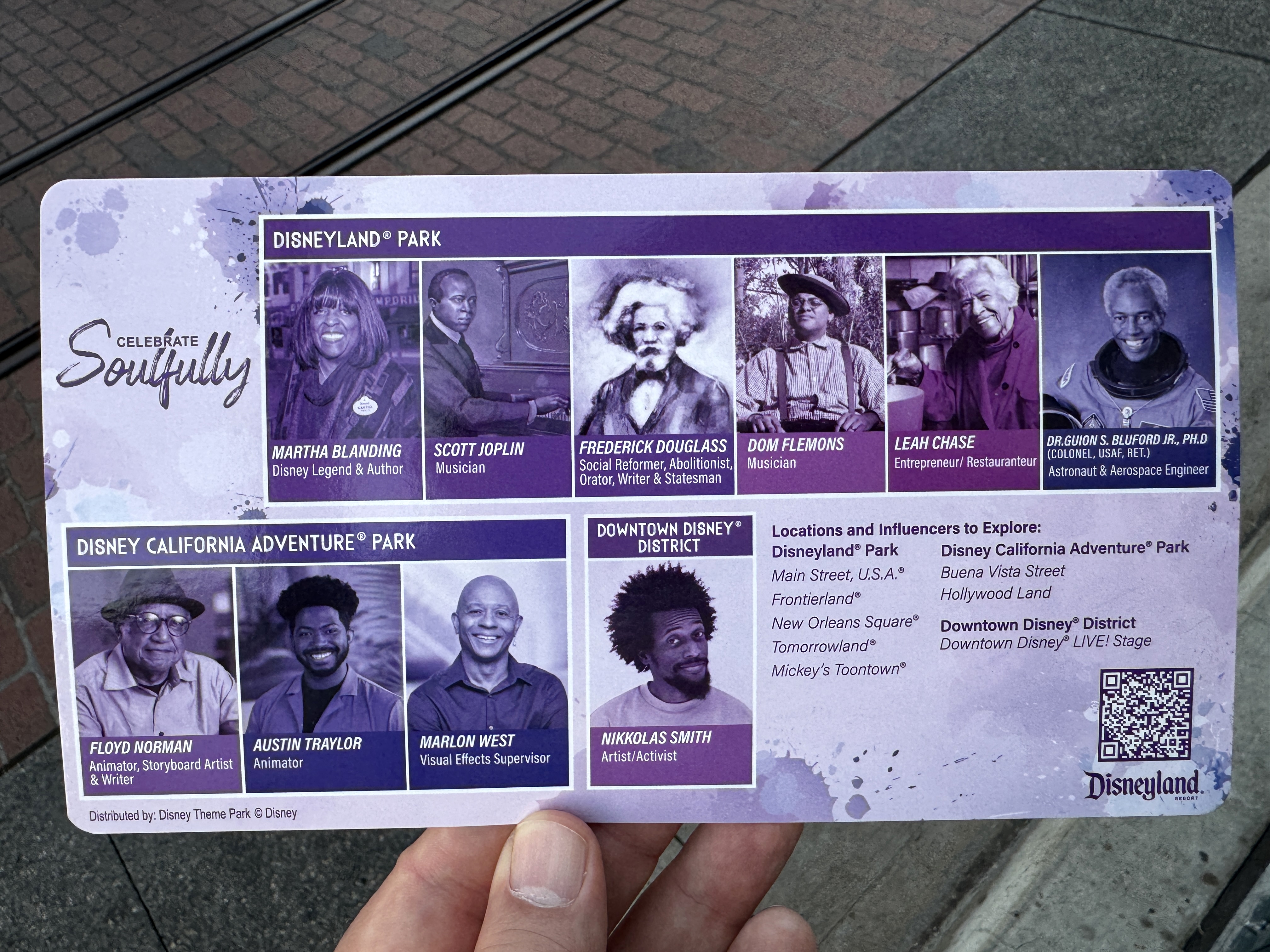 Guests can pick up a physical guide to the Celebrate Soulfully displays at Off the Page in Disney California Adventure, although not all of the featured leaders, artists, and thinkers are listed.
