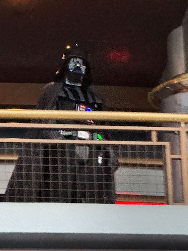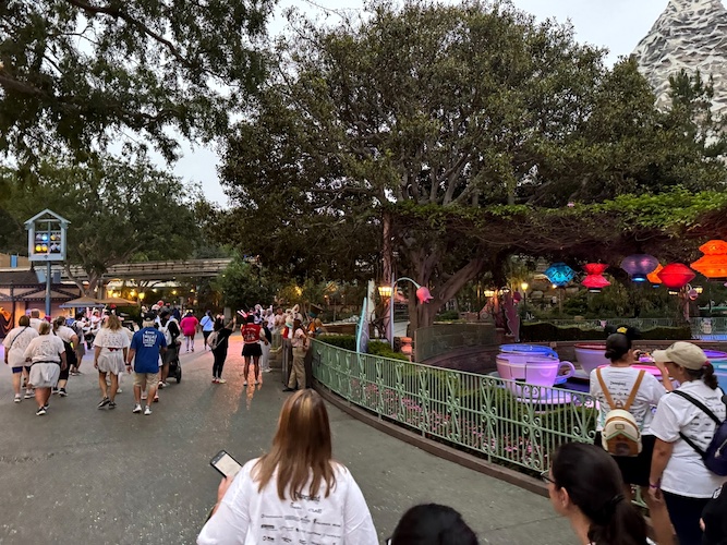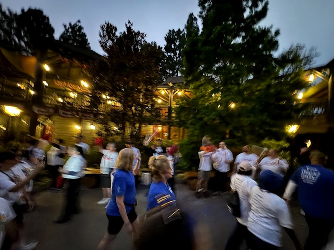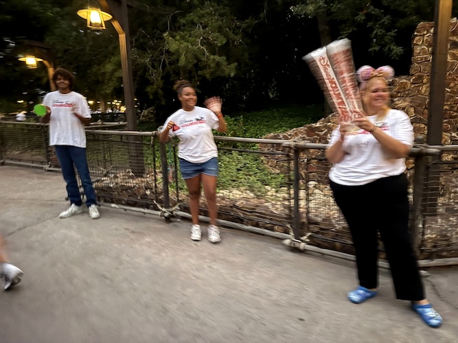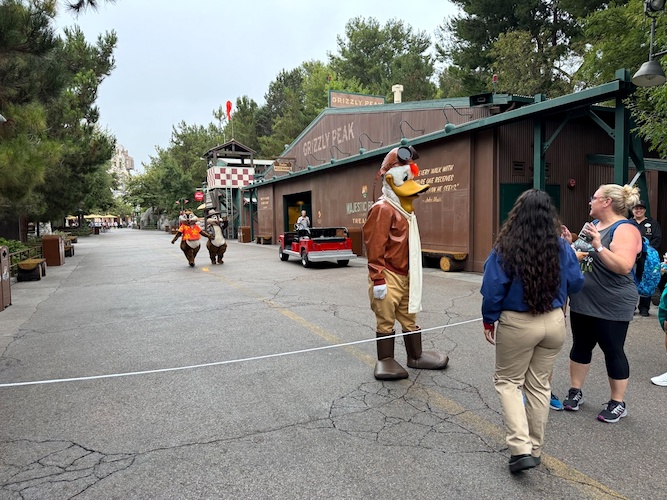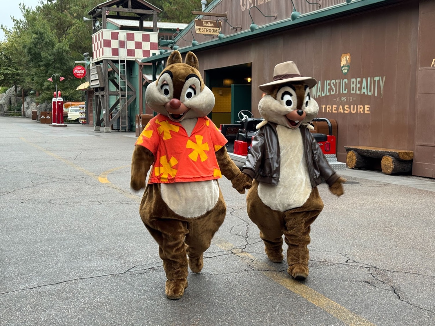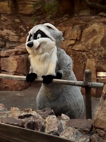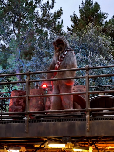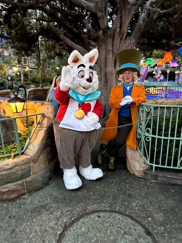 One of the most unique things about CHOC Walk is getting to amble through Disneyland while the sun is rising and encounter a number of familiar Disney characters along the route. Below you’ll see Meeko from Pocahontas, several friends from Alice In Wonderland, Prince Naveen and Princess Tiana from The Princess and the Frog, Chewbacca and the Mandalorian (with Grogu, of course) in Star Wars: Galaxy’s Edge, Darth Vader, and more.