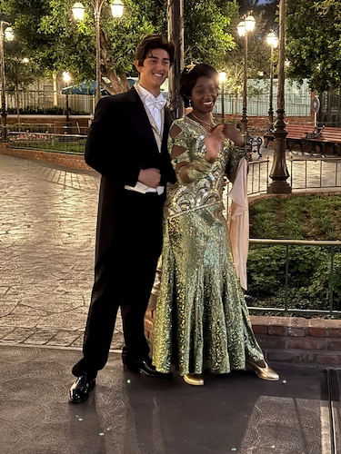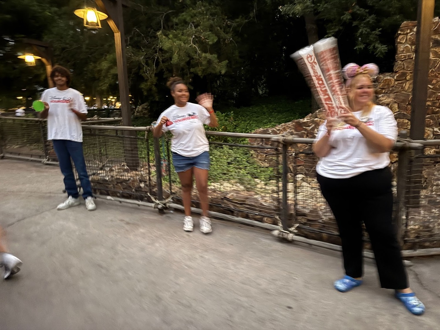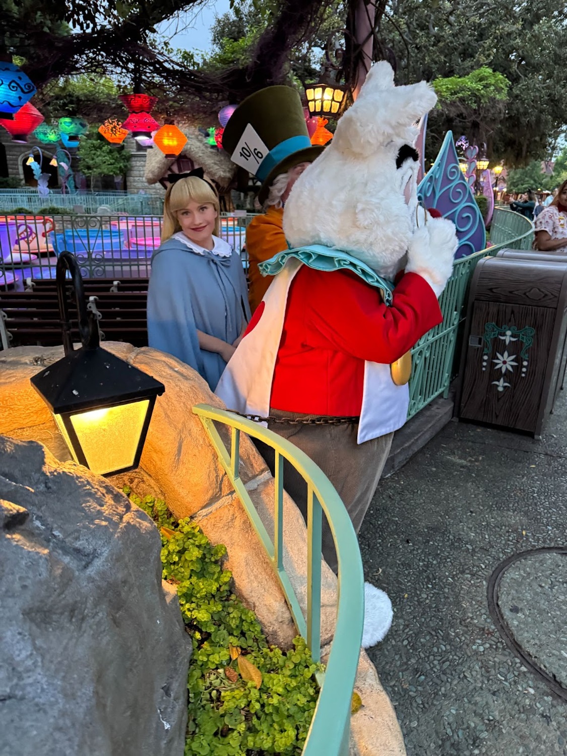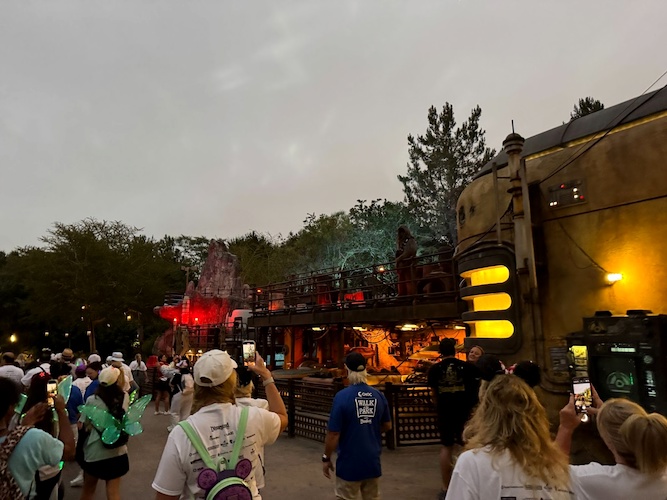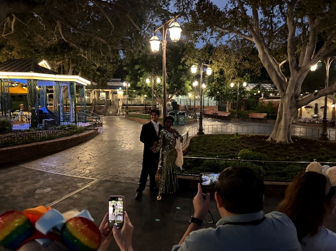 One of the most unique things about CHOC Walk is getting to amble through Disneyland while the sun is rising and encounter a number of familiar Disney characters along the route. Below you’ll see Meeko from Pocahontas, several friends from Alice In Wonderland, Prince Naveen and Princess Tiana from The Princess and the Frog, Chewbacca and the Mandalorian (with Grogu, of course) in Star Wars: Galaxy’s Edge, Darth Vader, and more.