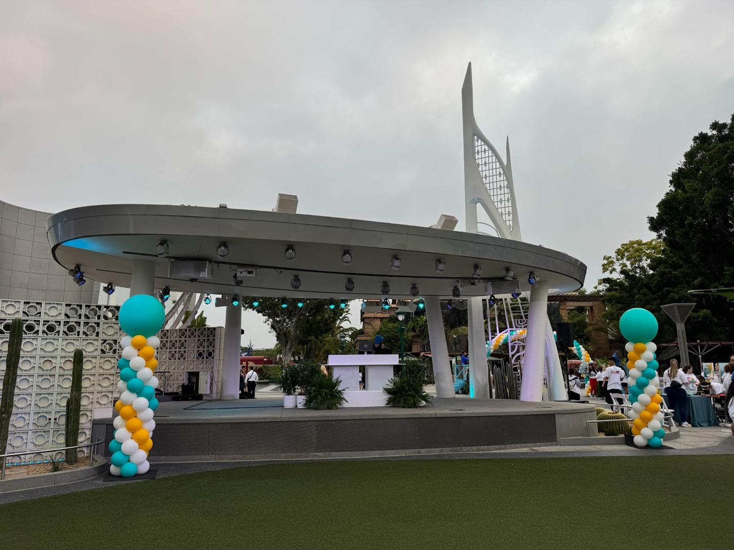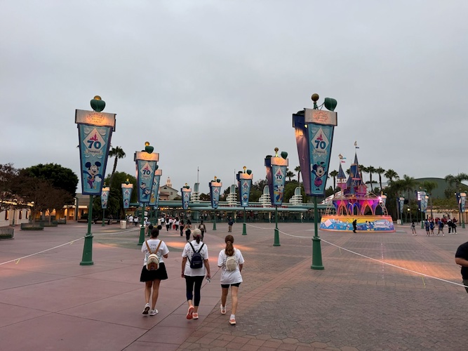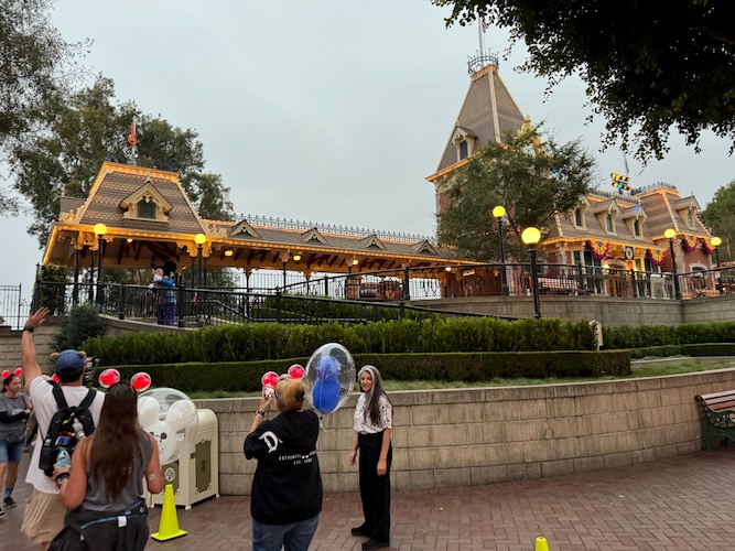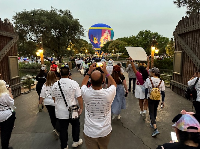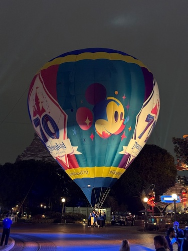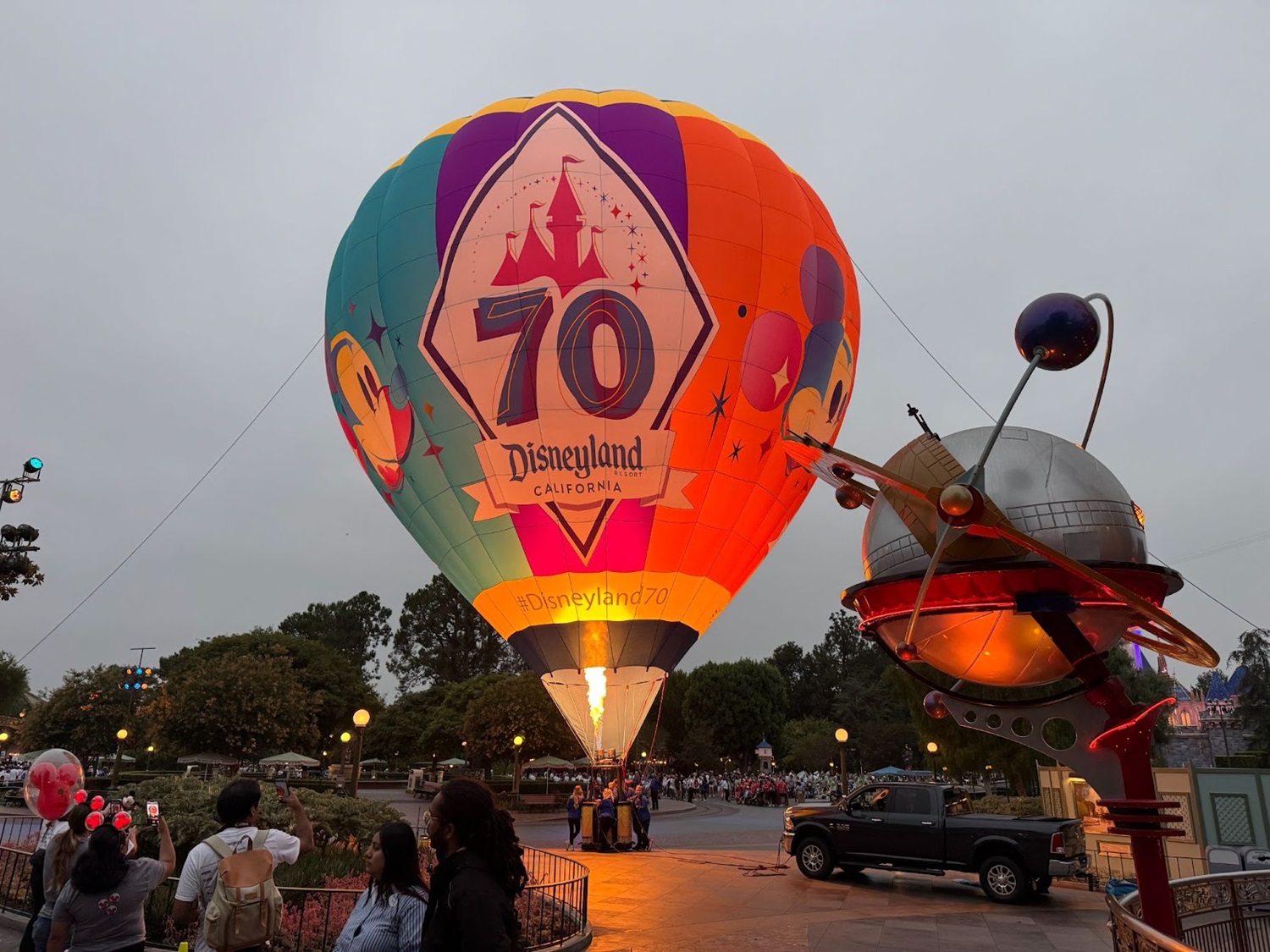 The Disneyland 70th anniversary hot air balloon was once again set up in the theme park’s Hub area, along with a stage for DJ Wendy to host the opening ceremony proceedings.
