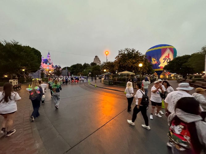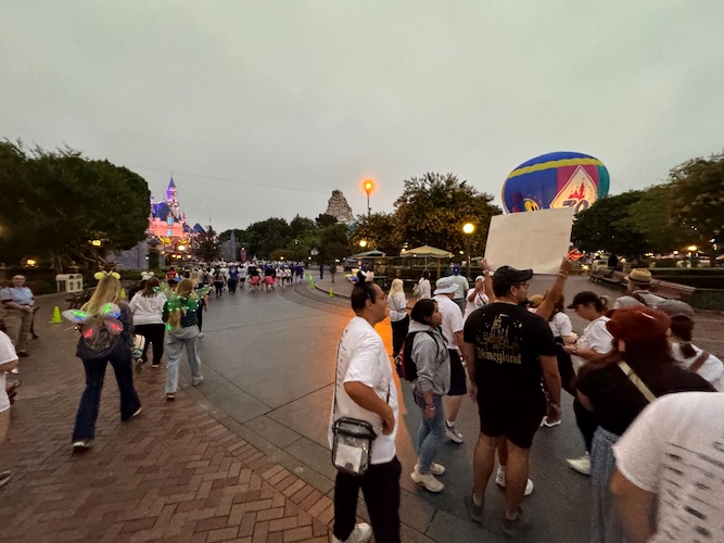 Once we circled back around to the Hub and passed the hot air balloon again, in Disneyland’s Town Square we found a Dasani-sponsored water station along with Mickey Mouse himself cheering us on from the Main Street Railroad Station.