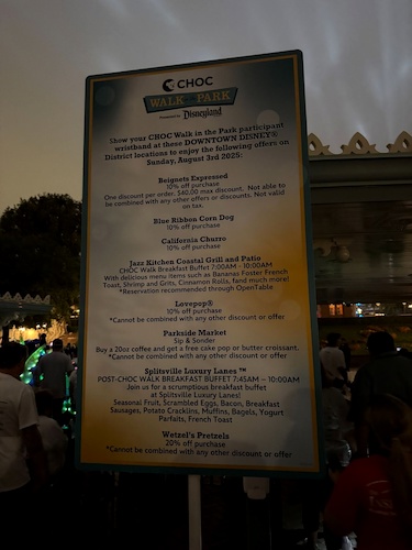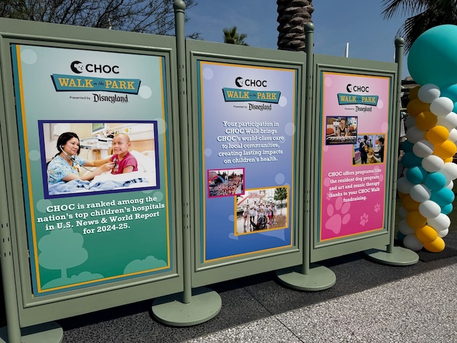 Here are a couple examples of the signage informing Disneyland Resort guests and CHOC Walk participants of what to expect that morning.
