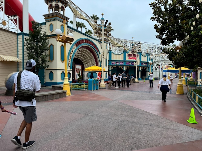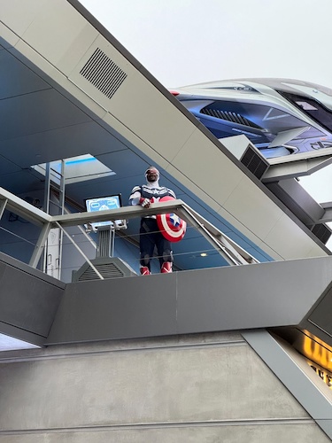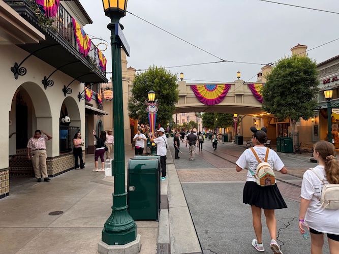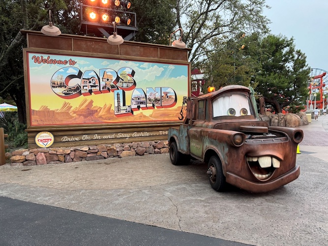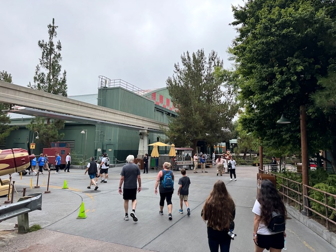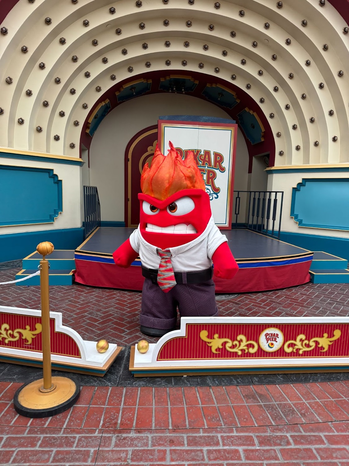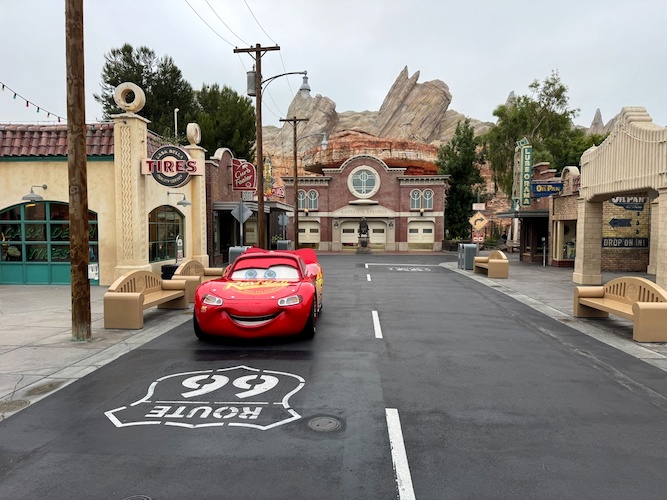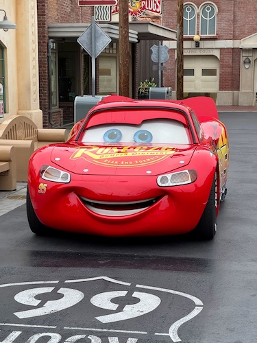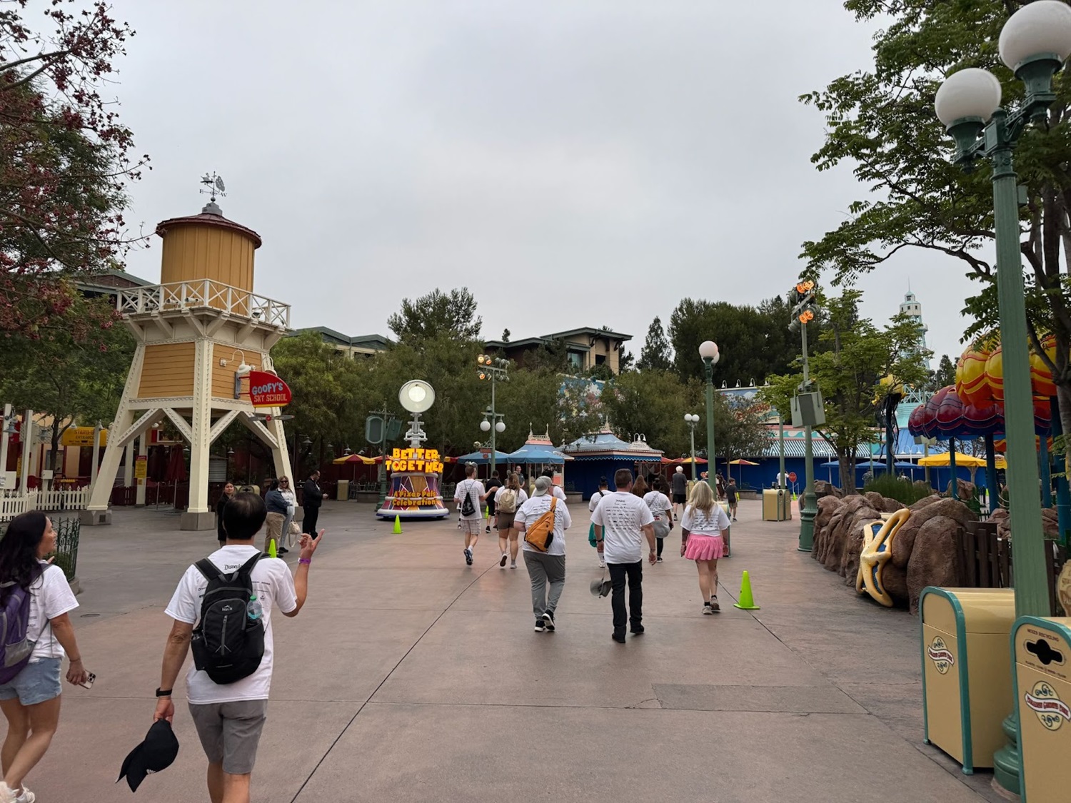 From that point the route crossed over the Esplanade and into Disney California Adventure, where we crossed paths with Oswald the Lucky Rabbit, Goofy, Marvel superheroes in Avengers Campus, Tow Mater and Lightning McQueen in Cars Land, and Anger from Inside Out in Pixar Pier.