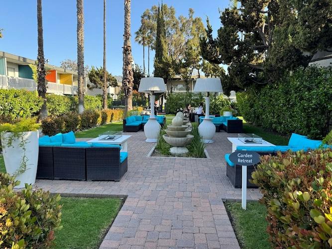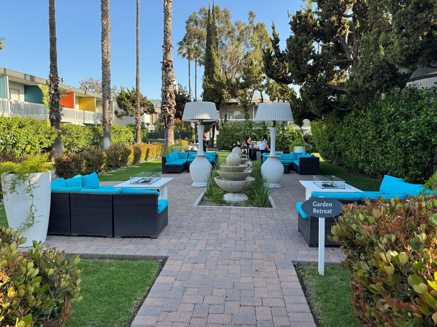 Rewinding time a bit, when I arrived at the Anaheim Hotel I found the lobby decked out with a CHOC Walk projection, leading me to the beautiful courtyard garden of this late-1950s Orange County classic– located just across Harbor Boulevard from Disneyland Resort.