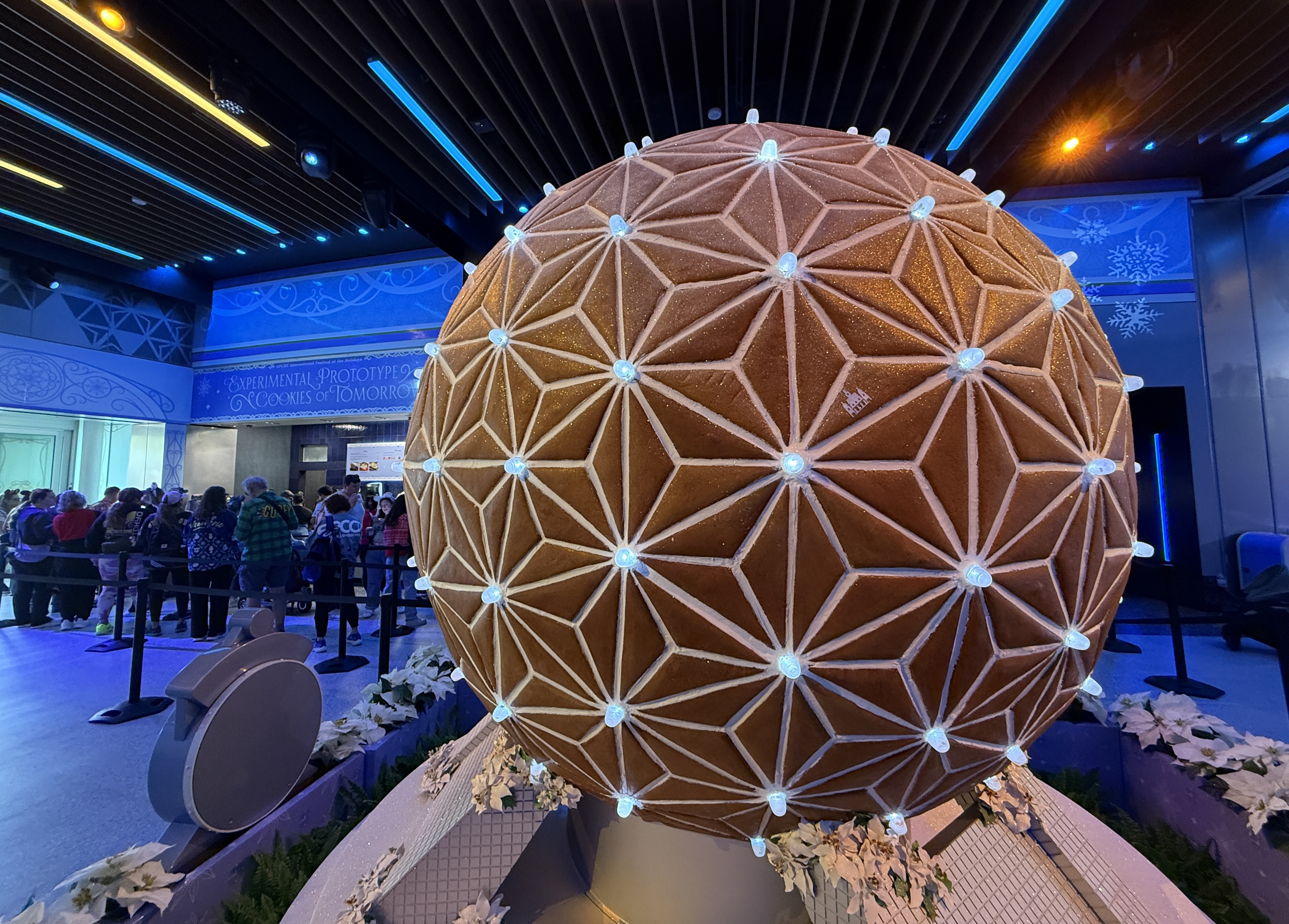 - As for the returning 8-foot-tall gingerbread display inspired by Spaceship Earth... The geodesic sphere made up of hundreds of handcrafted gingerbread triangles even lights up and dances to music periodically throughout the day, just like its full-size counterpart!