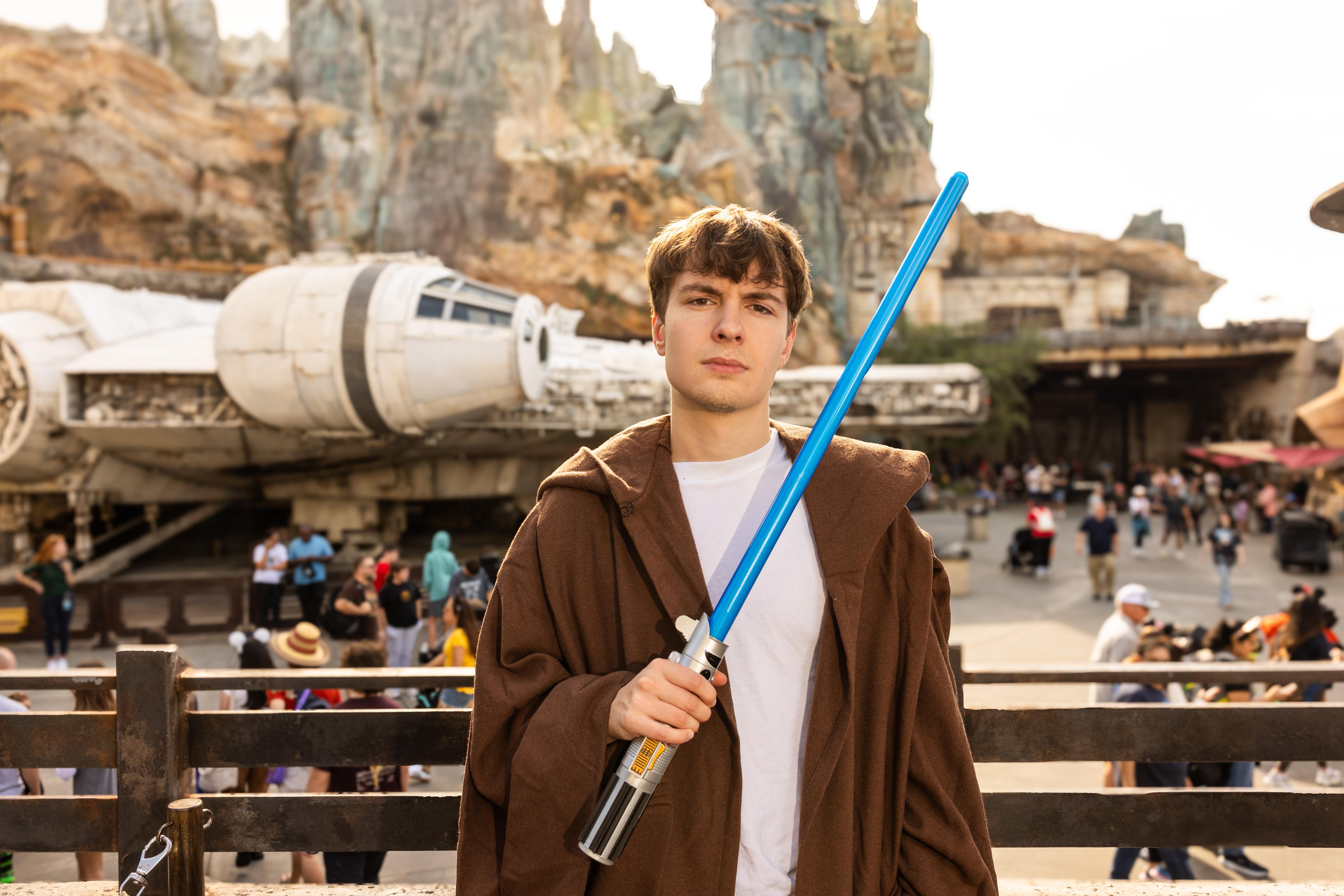 - Thousands of fans gathered around the see the professional gamer, as he interacted with Stormtroopers throughout Galaxy’s Edge.