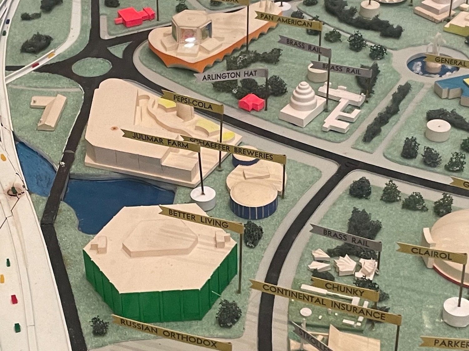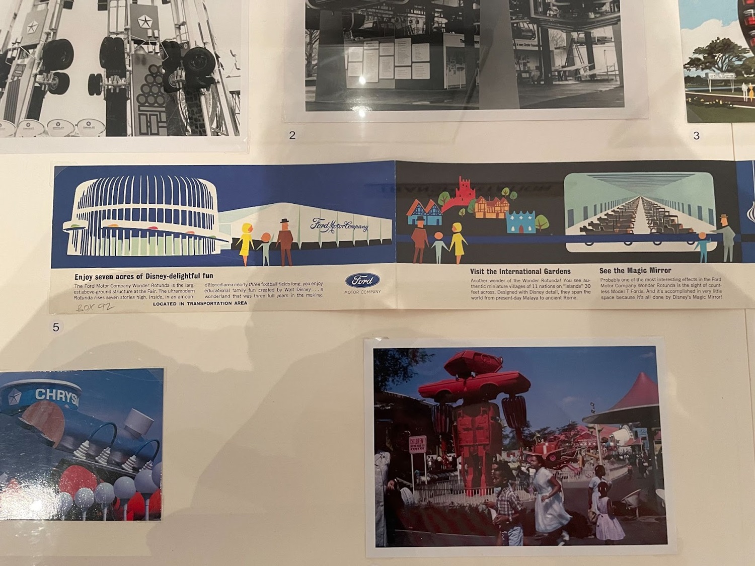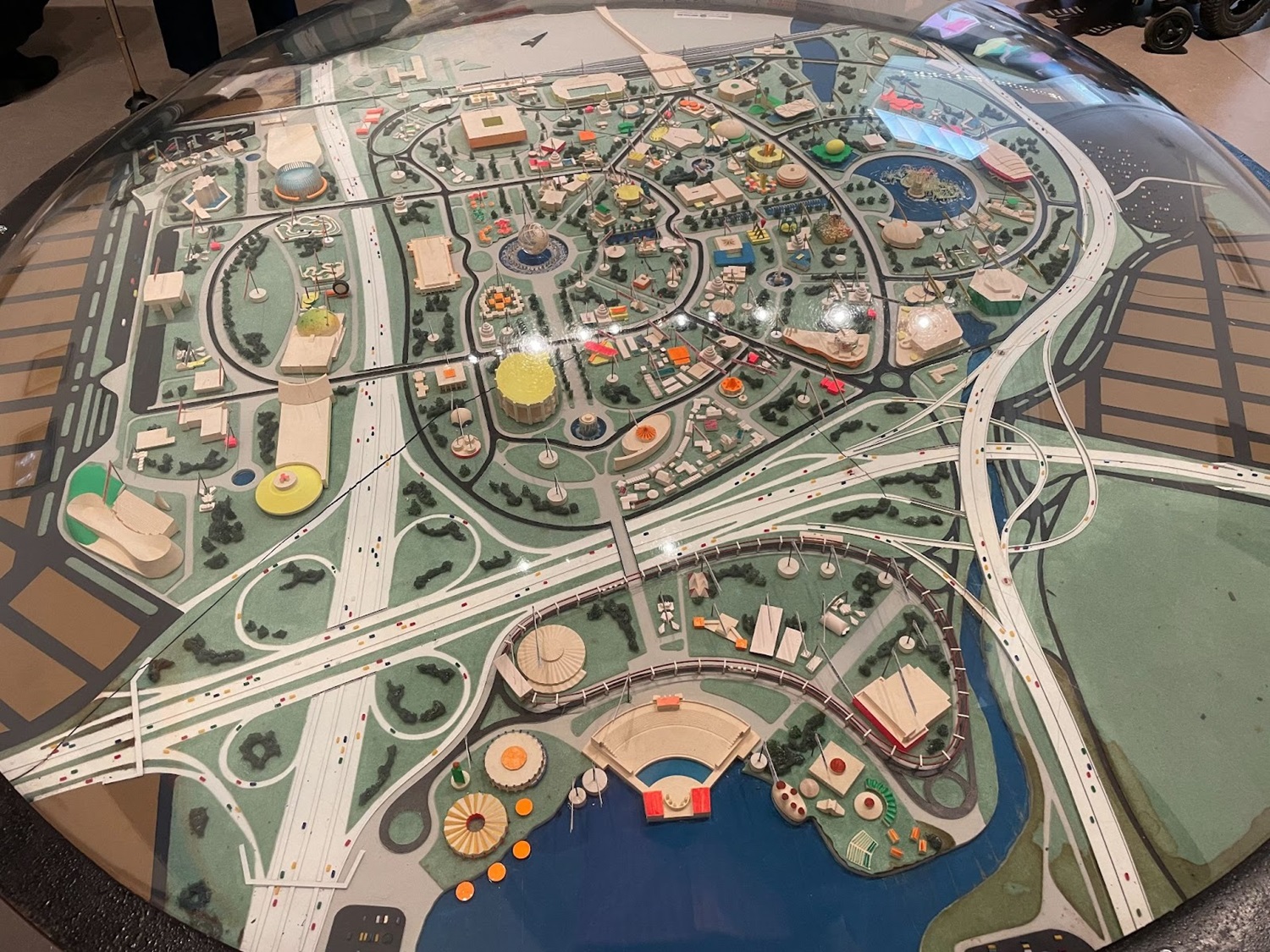 Elsewhere in the exhibit were historical photographs and maps, alongside a remarkable model of the fairgrounds during the celebration. (I made sure to look at other pavilions Disney worked on, including Pepsi (it’s a small world) and Illinois (Great Moments with Mr. Lincoln).