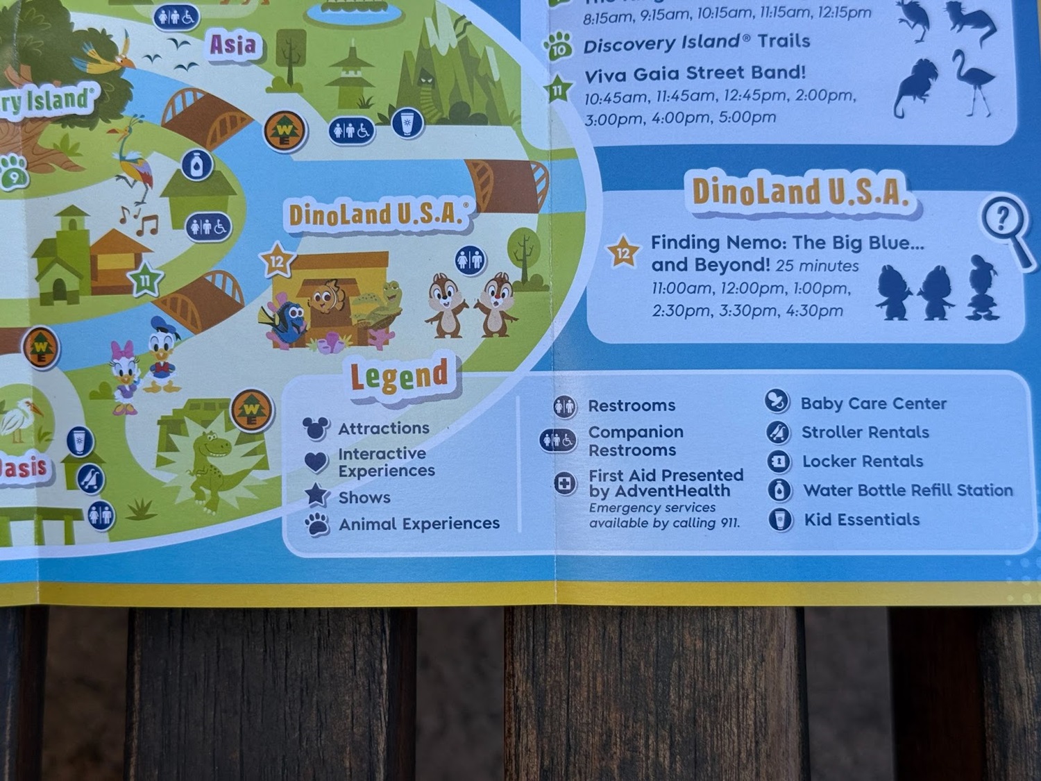 - The Fun for Families with Kids guide map also only shows Finding Nemo: The Big Blue… And Beyond! as its only offering in DinoLand USA