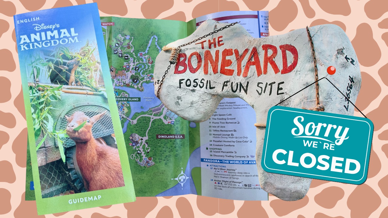 - Disney’s Animal Kingdom has released an updated park map, which now reflects recent changes, including the permanent closure of The Boneyard, the park’s popular children’s play area.