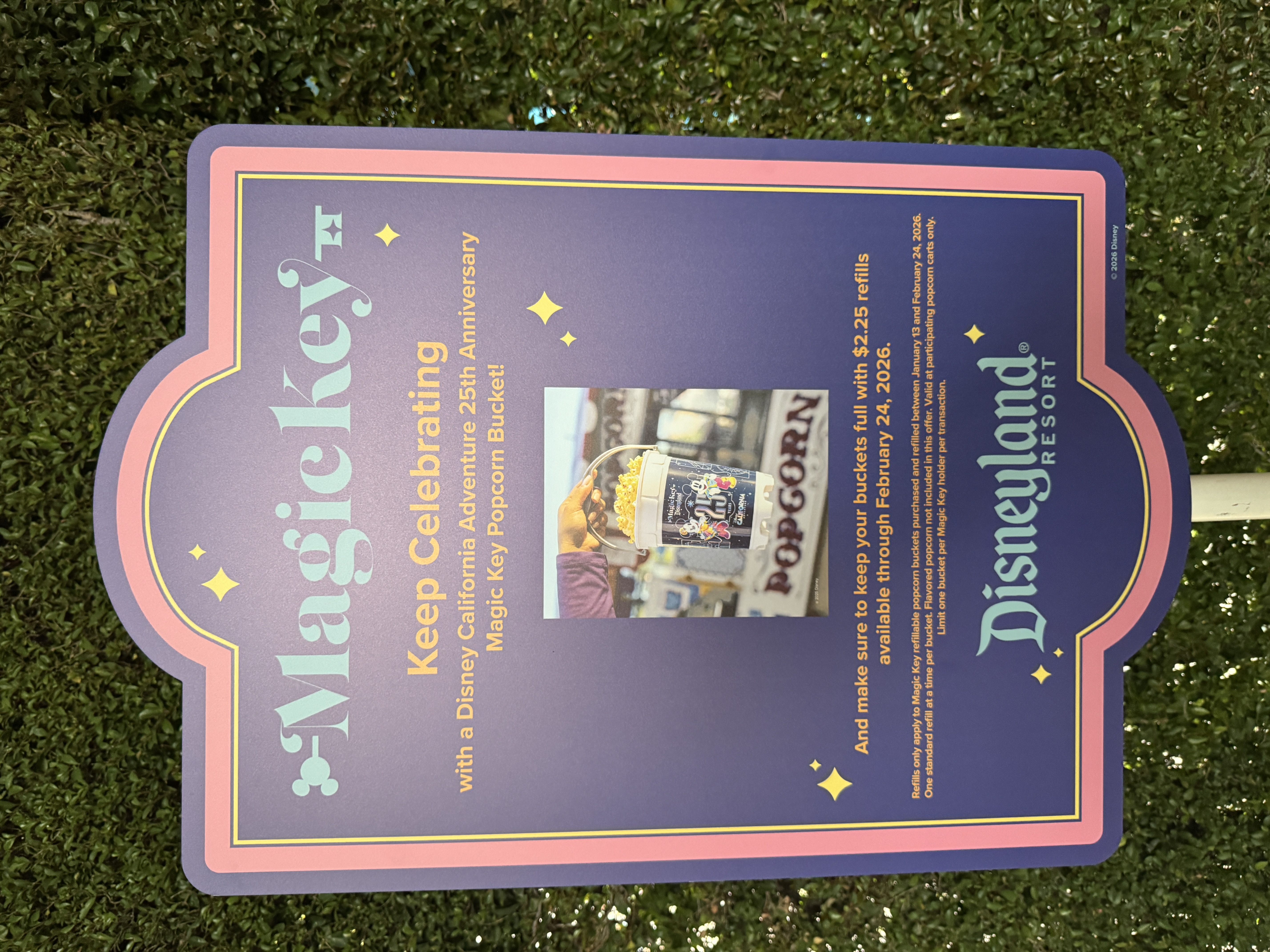 - Magic Key holders can purchase this special Magic Key popcorn bucket celebrating California Adventure's milestone anniversary (while supplies last) for $15.25 and get $2.25 refills through February 24, 2026.