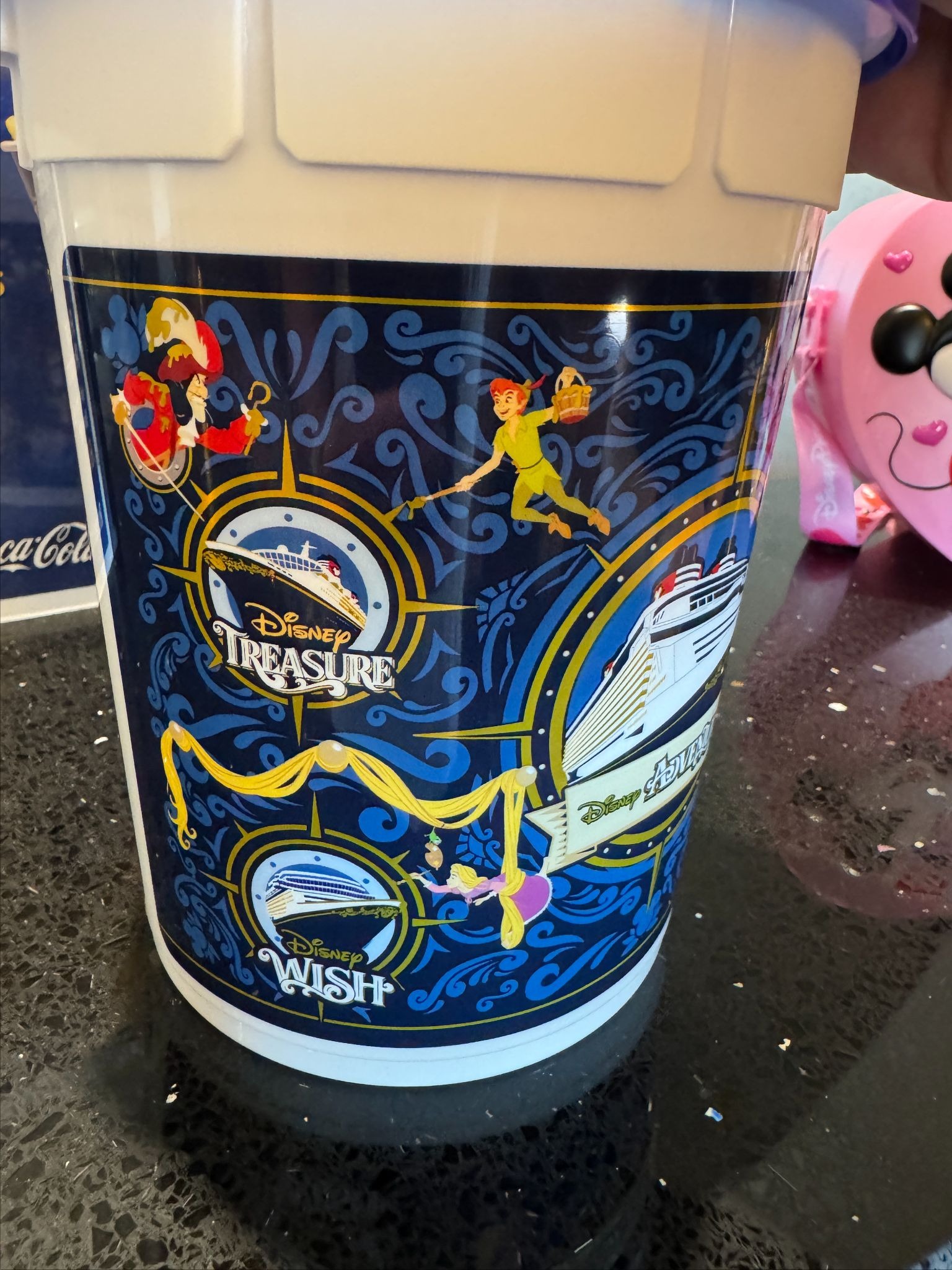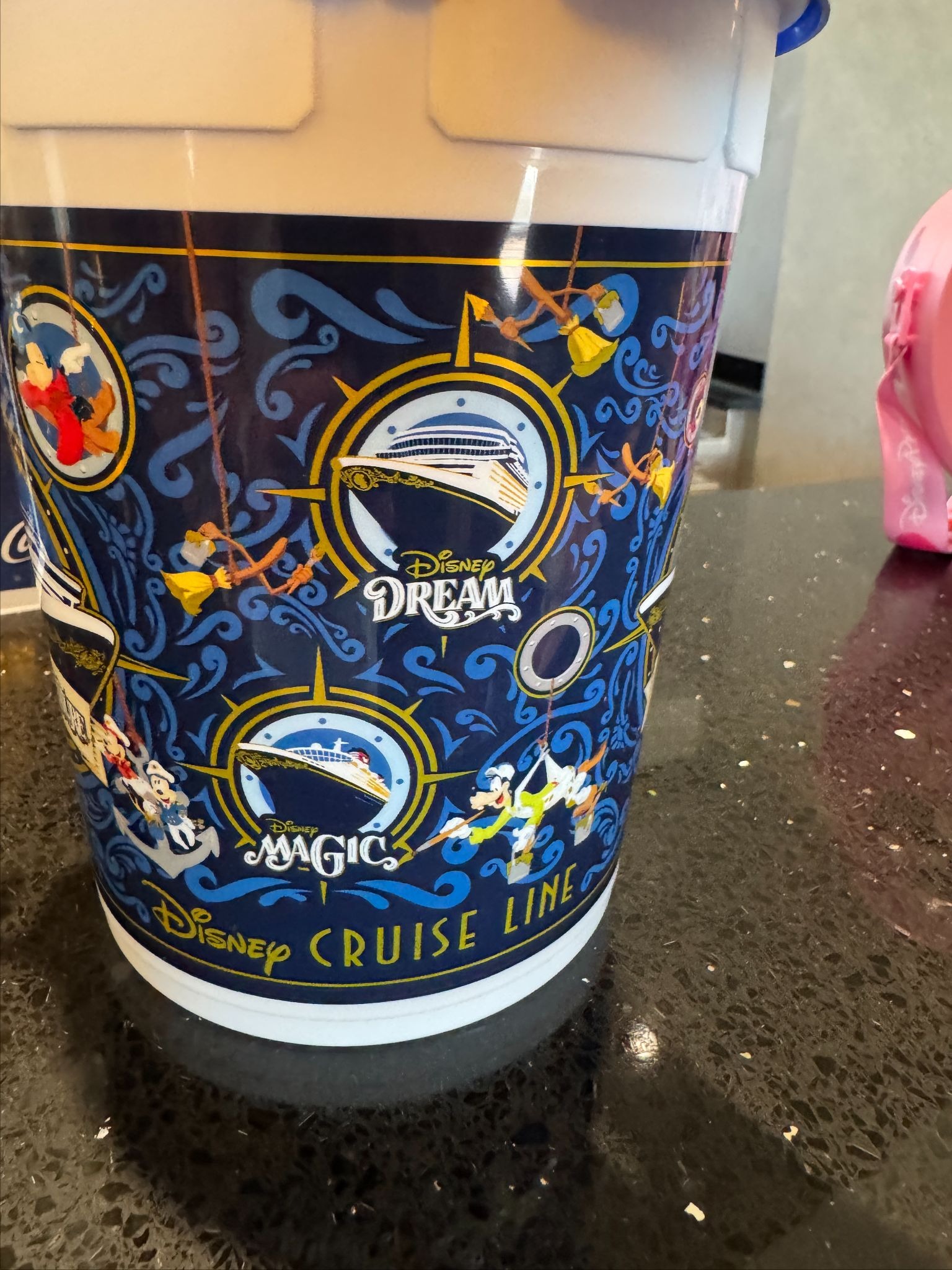 - Enjoying the at-sea fun, we spotted an exciting change to Disney Cruise Line’s souvenir popcorn buckets, welcoming in the newest ship in the DCL fleet.