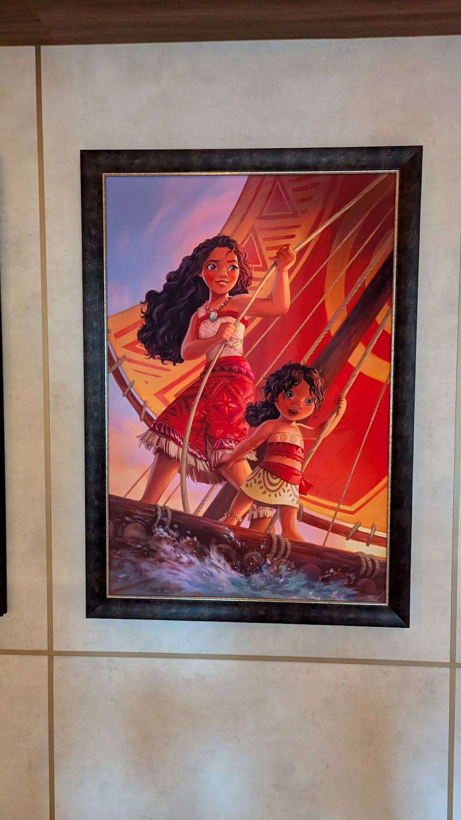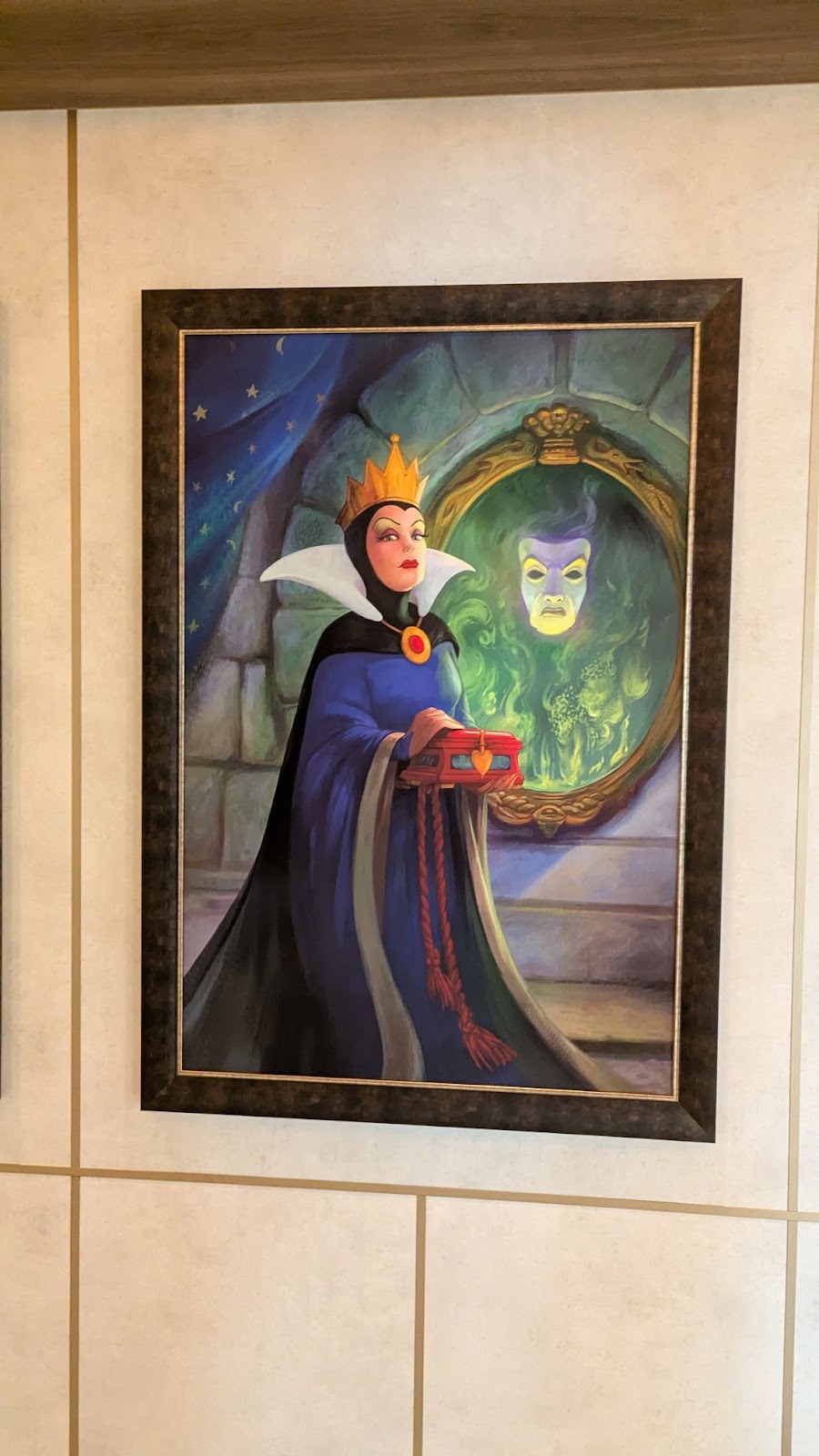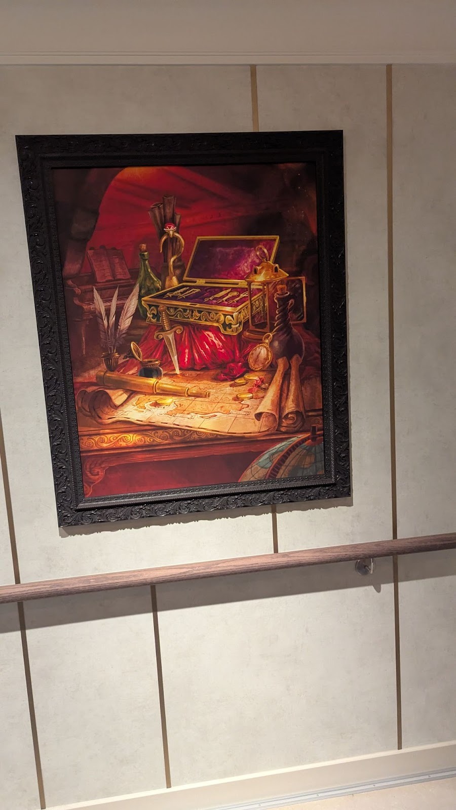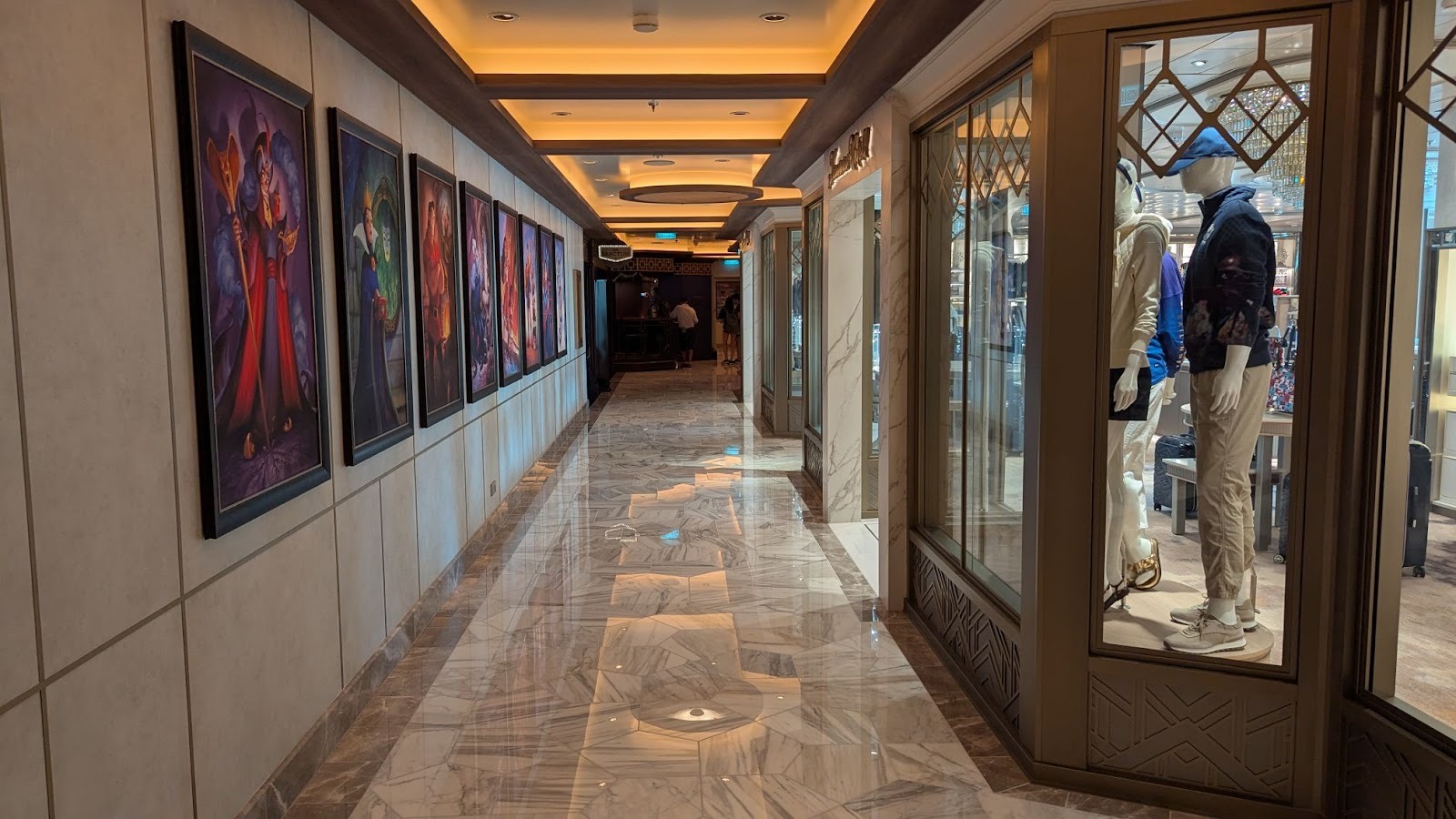 Down the hall, a stunning image of several Disney Cruise Line ships between a world of heroes and a dark world of villains is also prominently displayed.