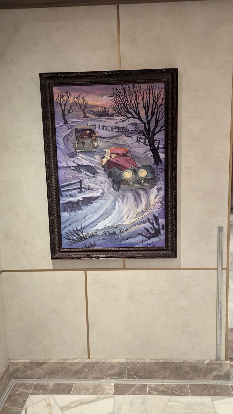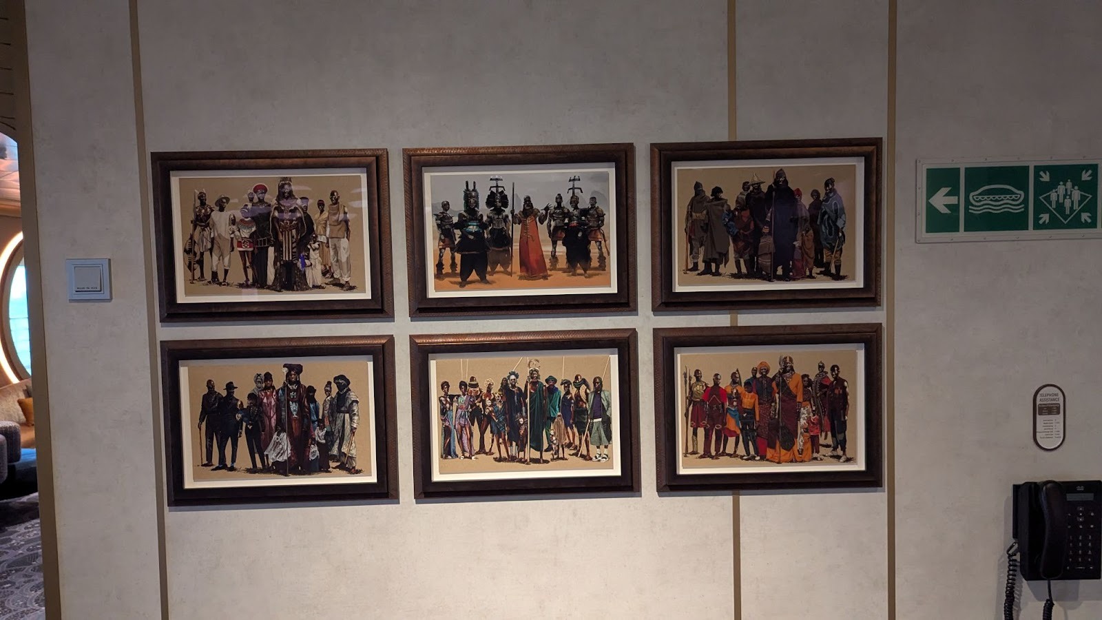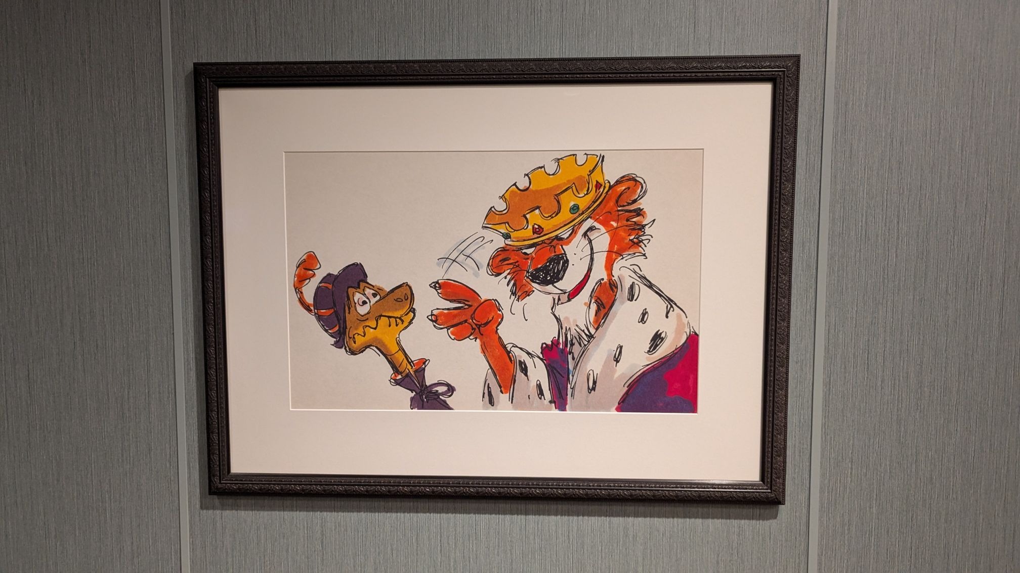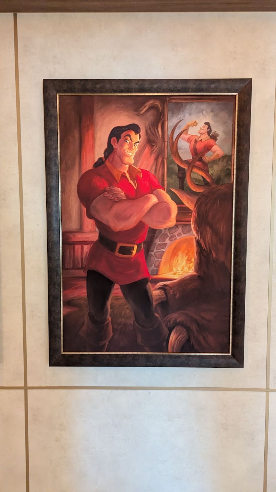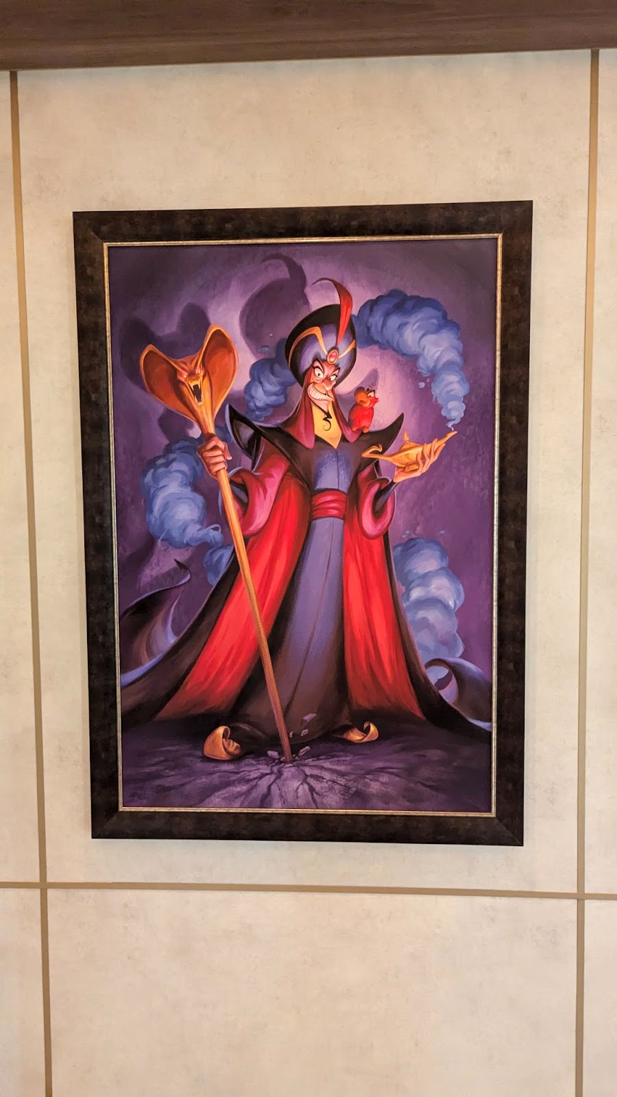 Down the hall, a stunning image of several Disney Cruise Line ships between a world of heroes and a dark world of villains is also prominently displayed.