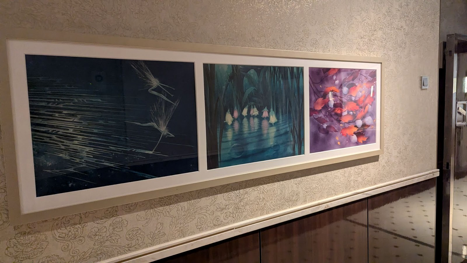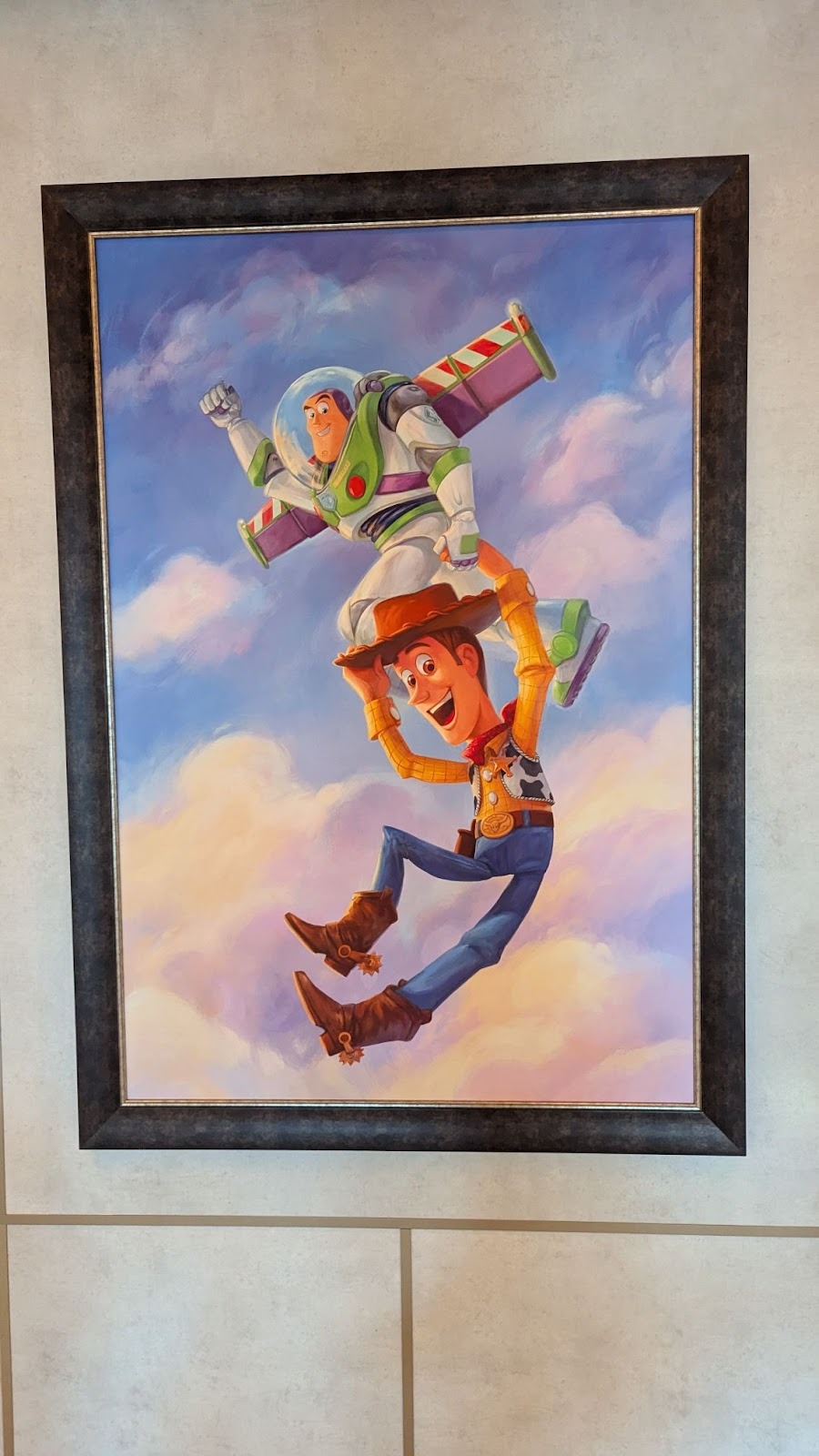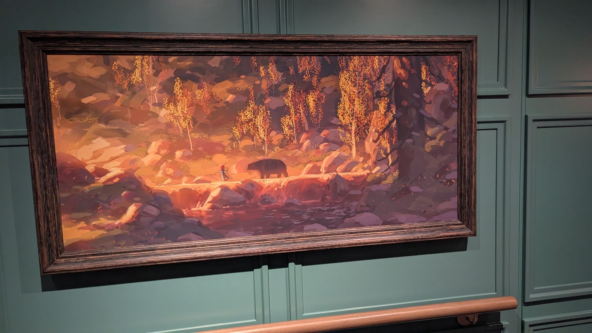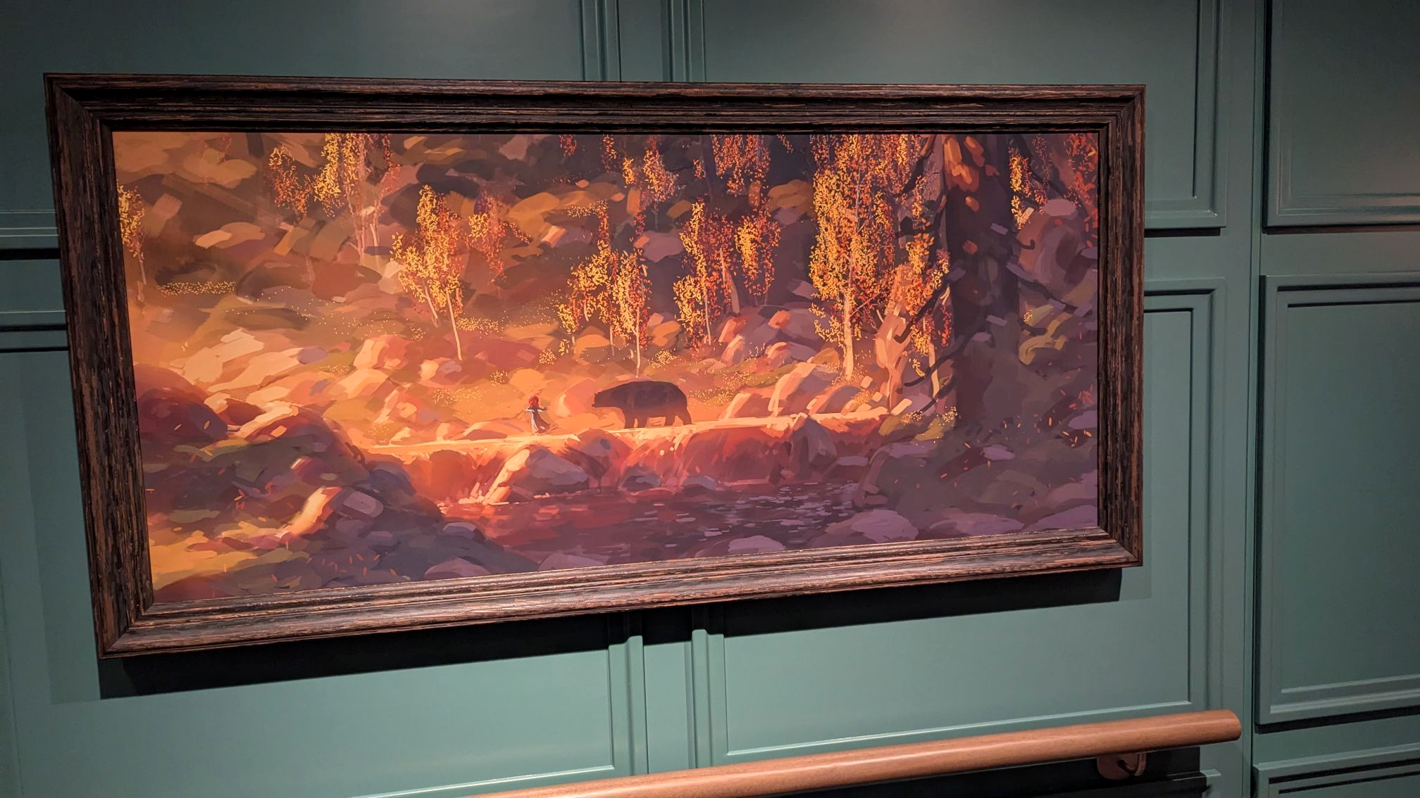 Down the hall, a stunning image of several Disney Cruise Line ships between a world of heroes and a dark world of villains is also prominently displayed.