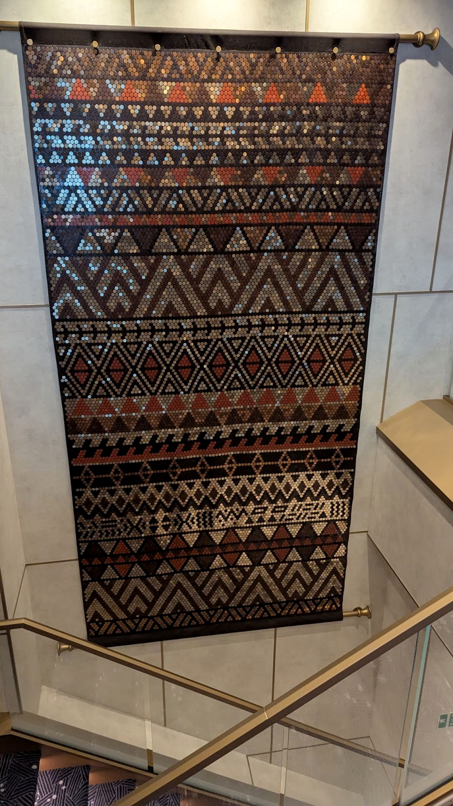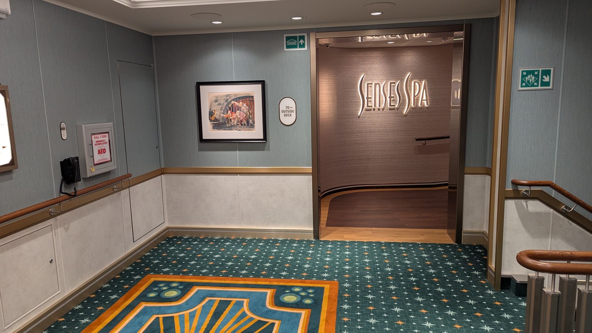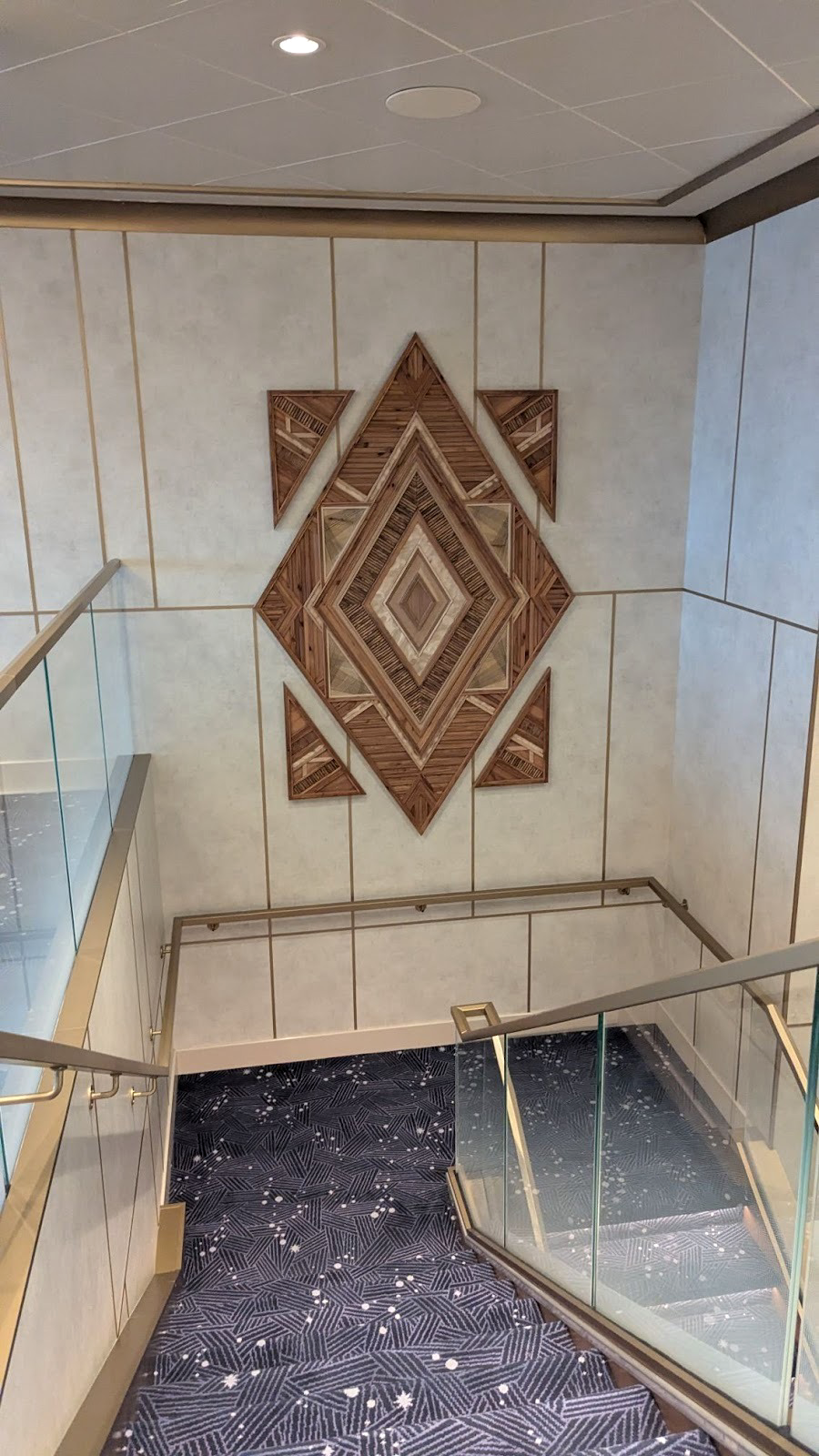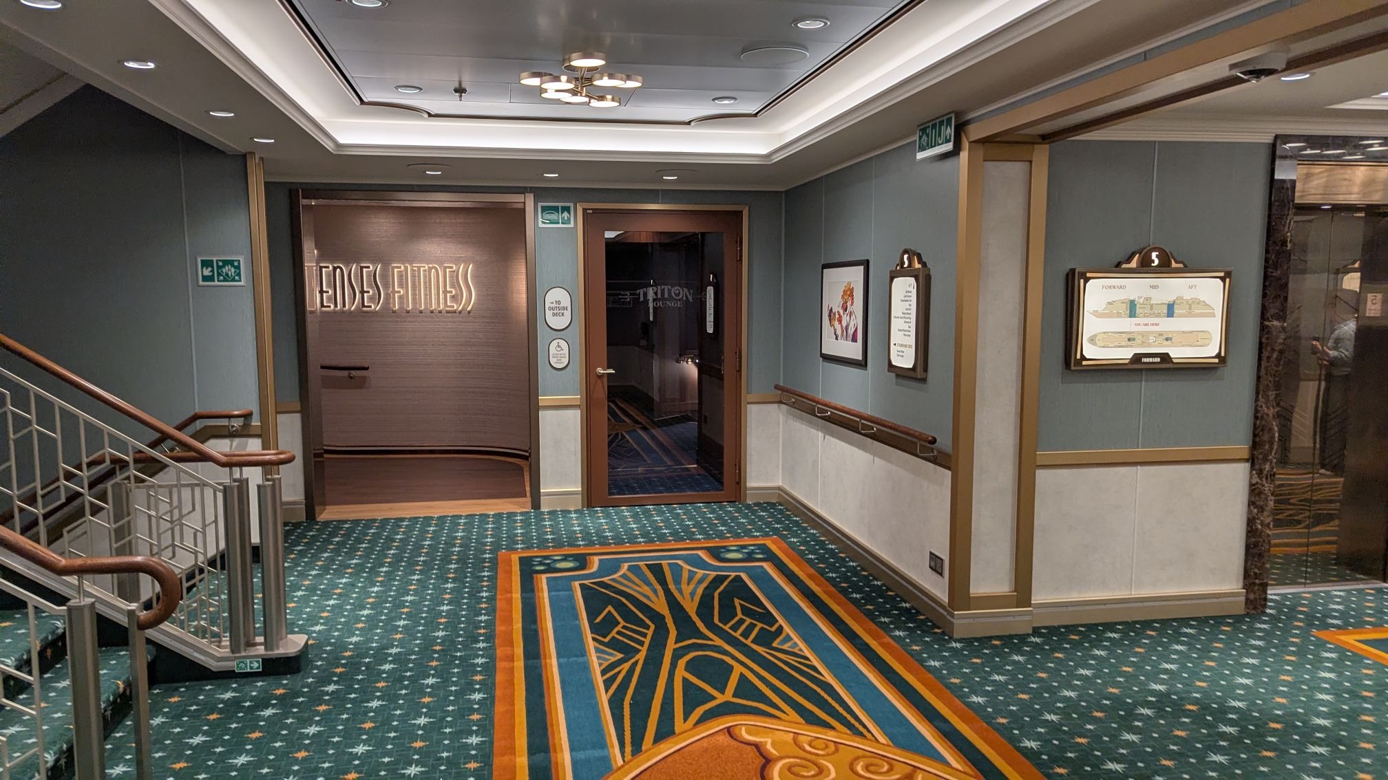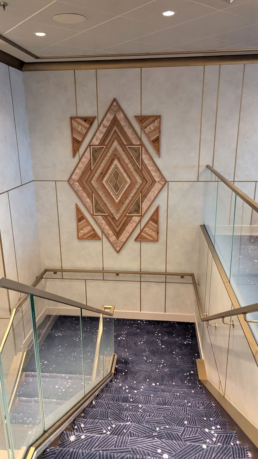 Majestic carpet can be found at the landing leading up to some of Deck 4’s elevators, one featuring the symbol of the Gods as seen in Hercules, leading up (for some reason) to Maleficent from Sleeping Beauty.