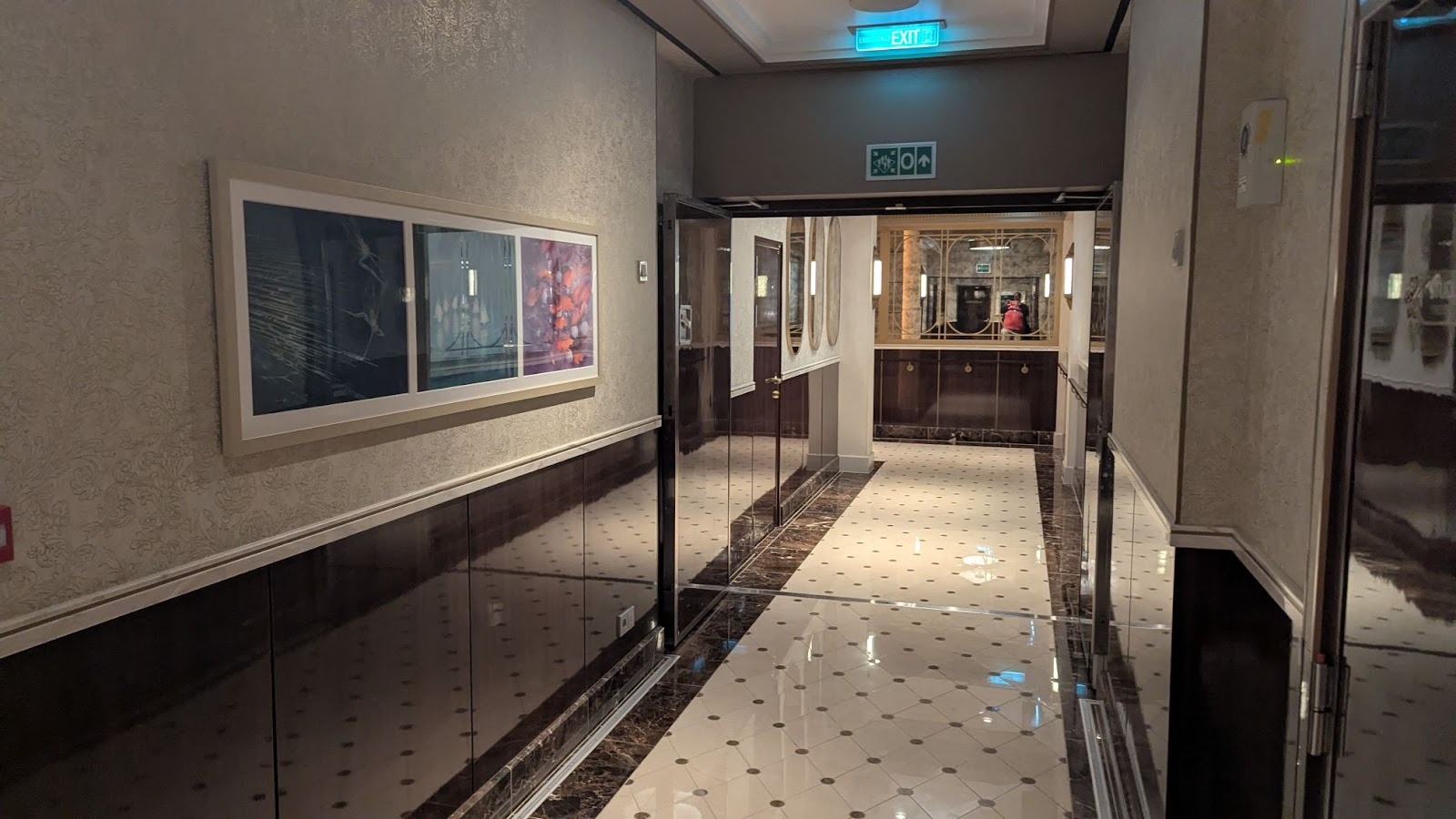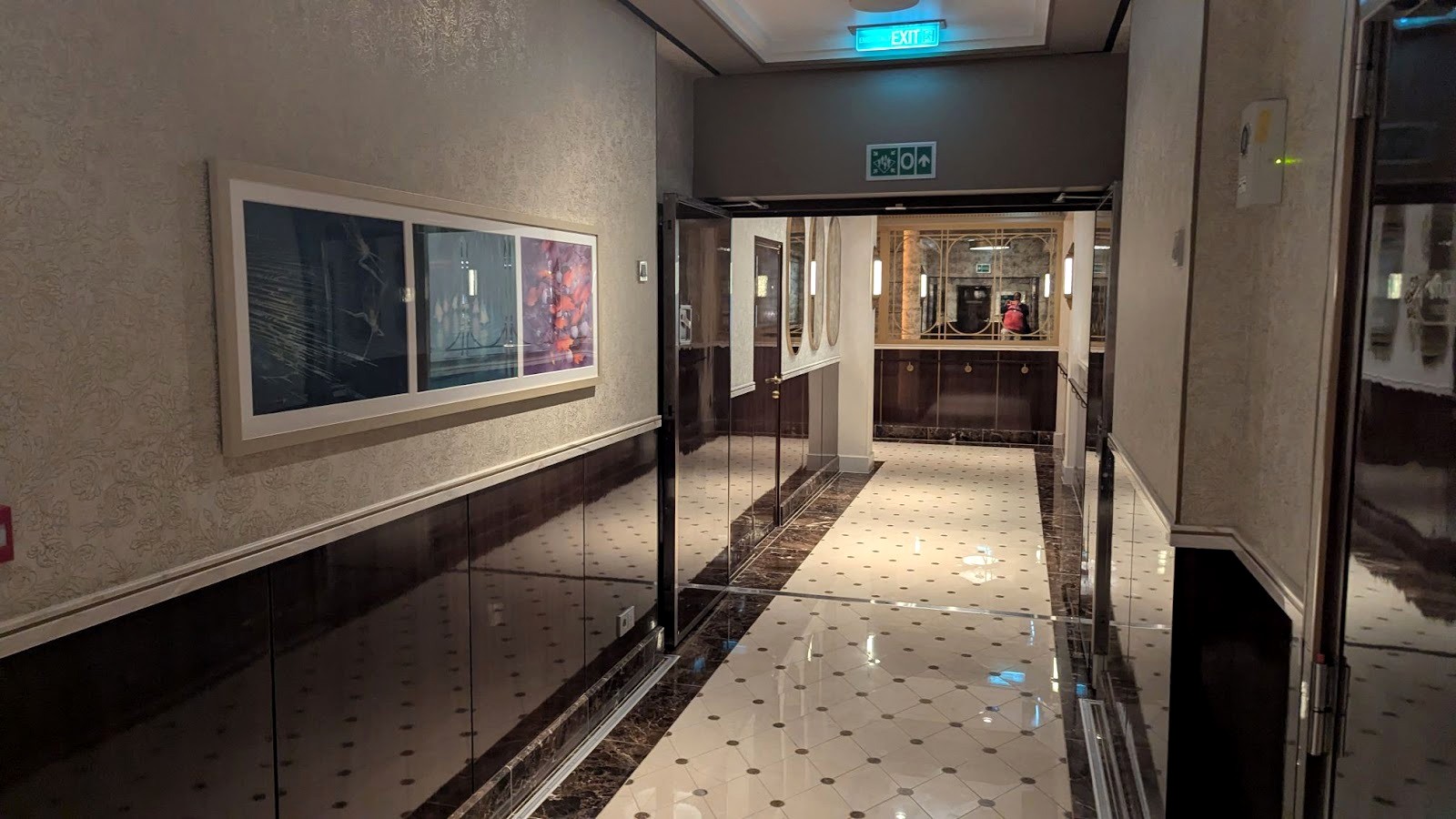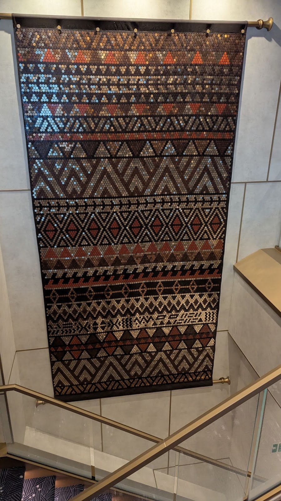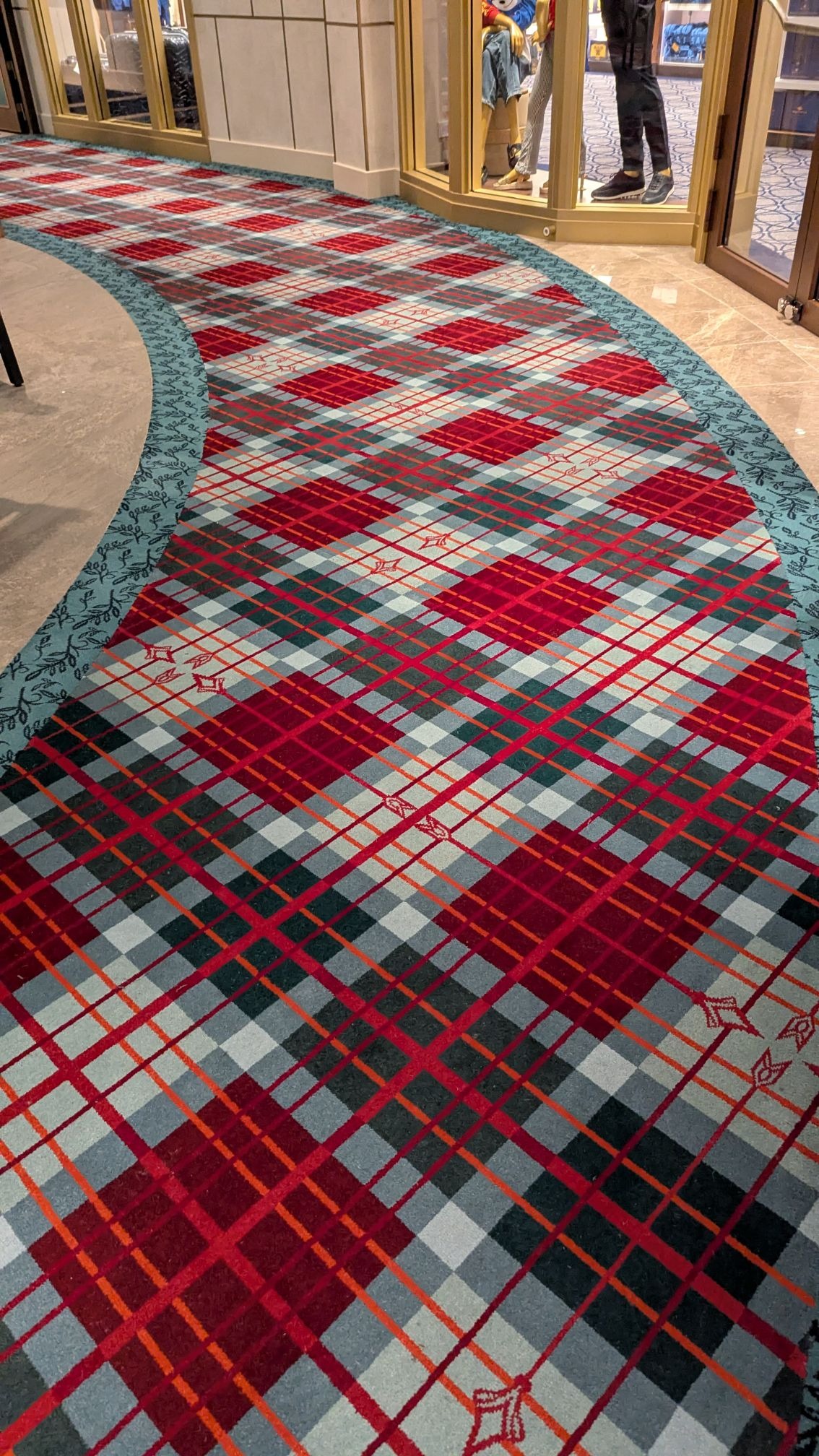 Majestic carpet can be found at the landing leading up to some of Deck 4’s elevators, one featuring the symbol of the Gods as seen in Hercules, leading up (for some reason) to Maleficent from Sleeping Beauty.