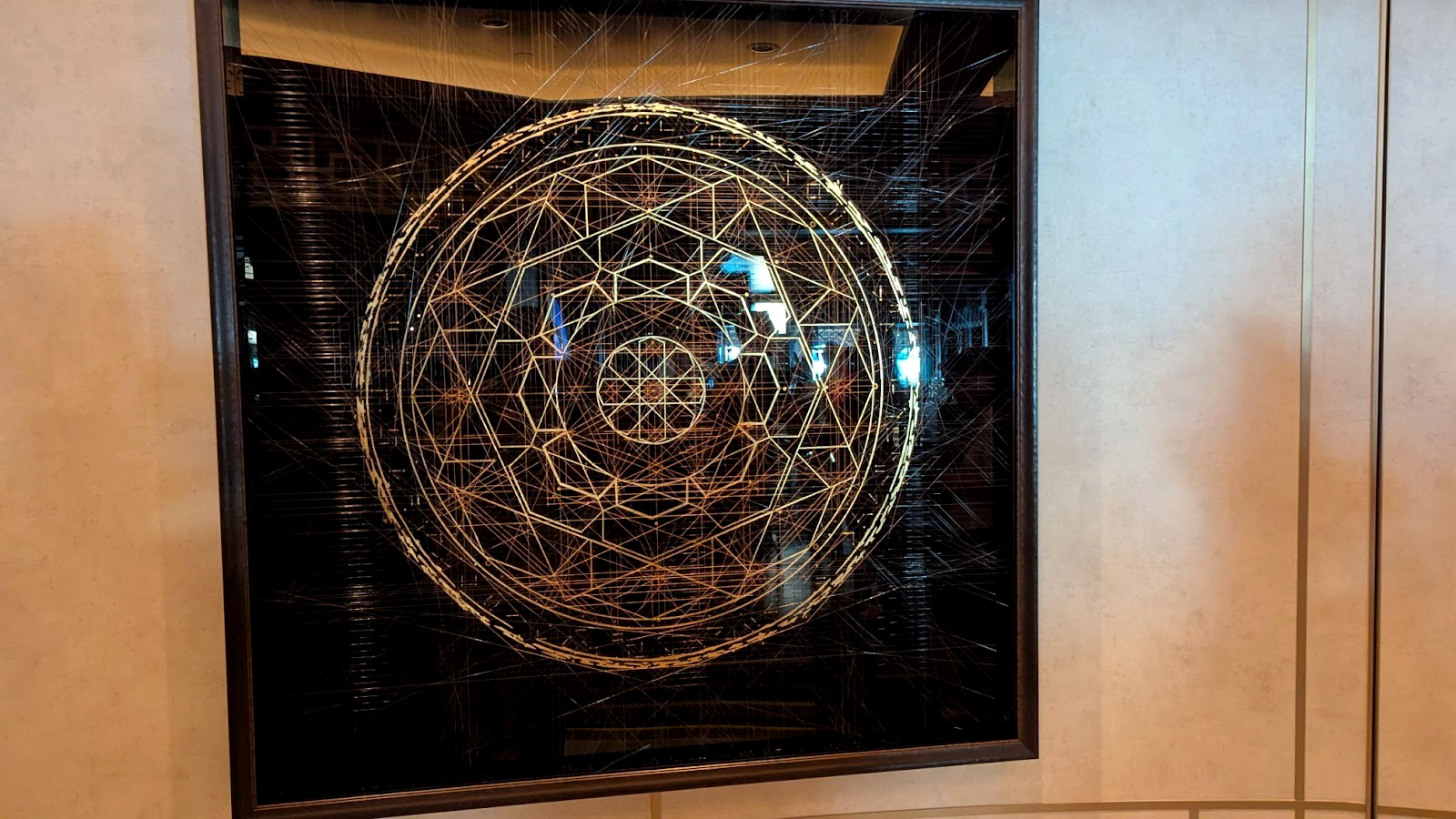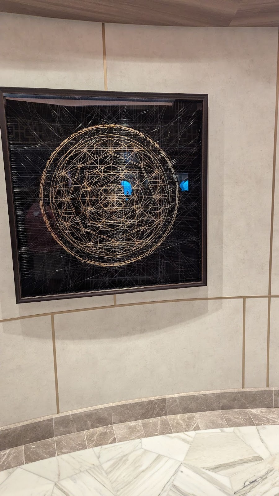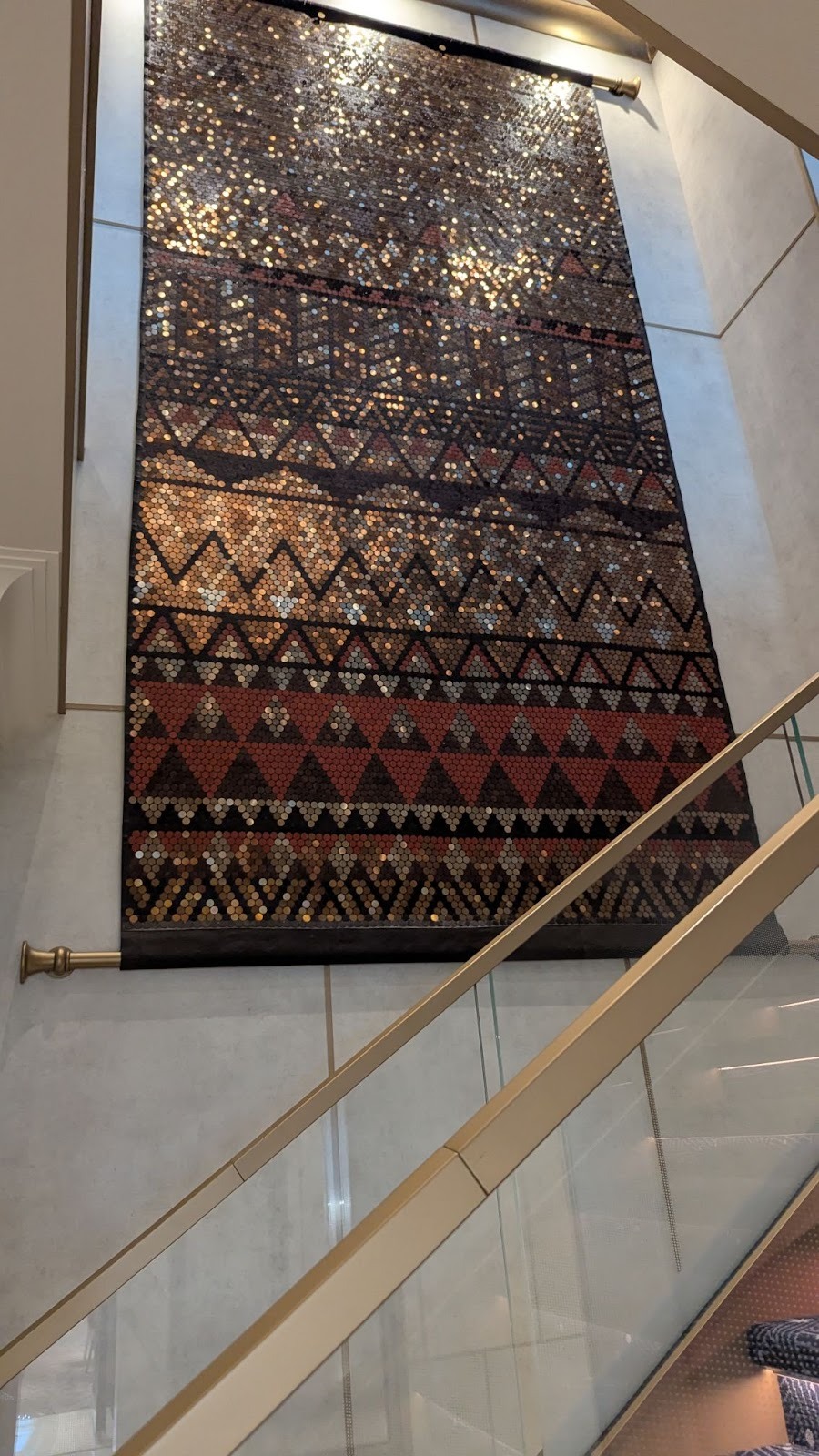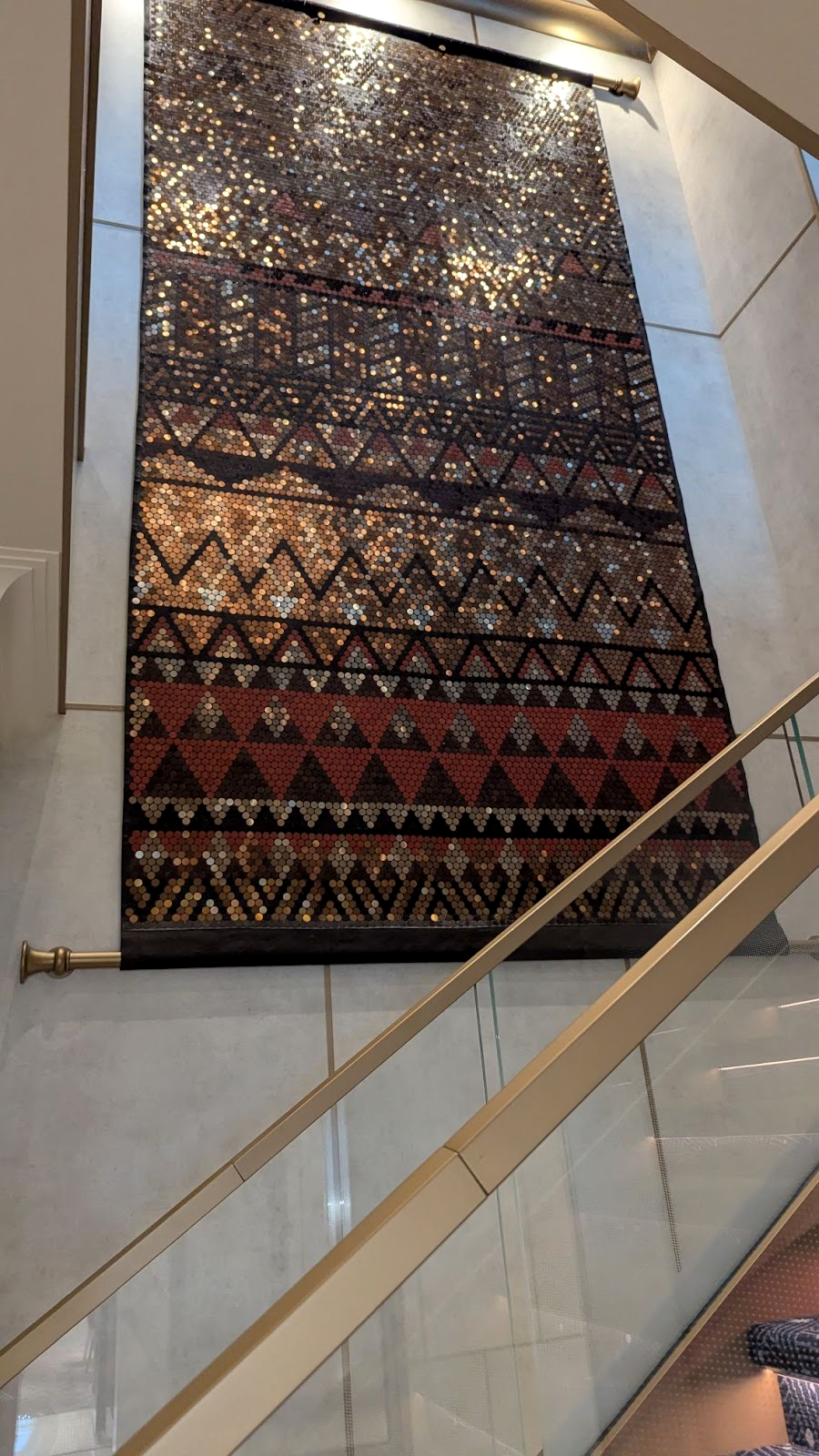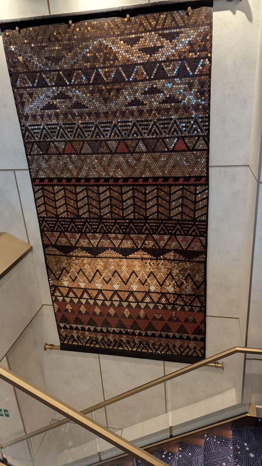 Majestic carpet can be found at the landing leading up to some of Deck 4’s elevators, one featuring the symbol of the Gods as seen in Hercules, leading up (for some reason) to Maleficent from Sleeping Beauty.