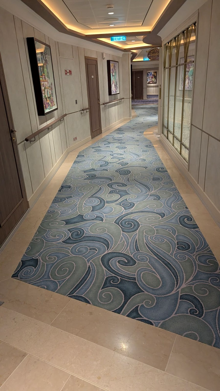 To get even more glimpses of the Disney Destiny, and the wonderful venues and experiences found aboard the newest ship in the Disney Cruise Line fleet, be sure to check out our Disney Destiny page. You can also see more of the stunning carpets and door decorations beyond these halls, in our stateroom doors and hallways page. To book your voyage aboard this new ship or any other in the Disney Cruise Line fleet, be sure to reach out to our friends at Mouse Fan Travel.