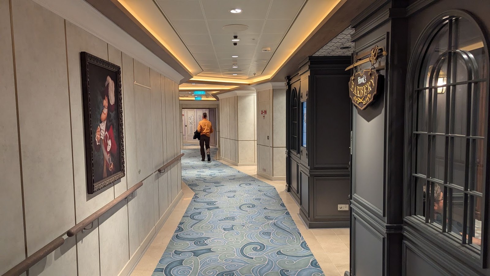 On the opposite side of Deck 4 from the Untangled Salon, guests will find Hook’s Barbery. The location also features a portrait of Captain Hook himself nearby, as well as other still life style art representing other villains, including Prince John from Robin Hood, the Evil Queen from Snow White and the Seven Dwarfs, and Captain Hook from Peter Pan.