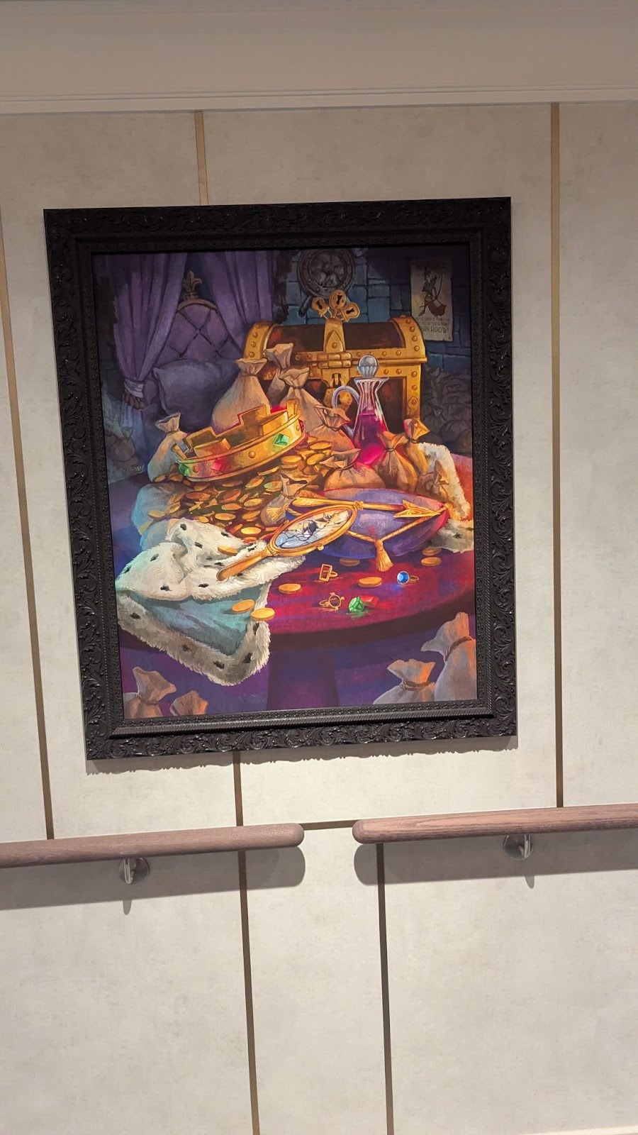 Up on Deck 5 near the Senses Spa, some Pirates fun can be found. On the opposite side of the ship, outside the Senses Fitness center, guests will find Prince John art.