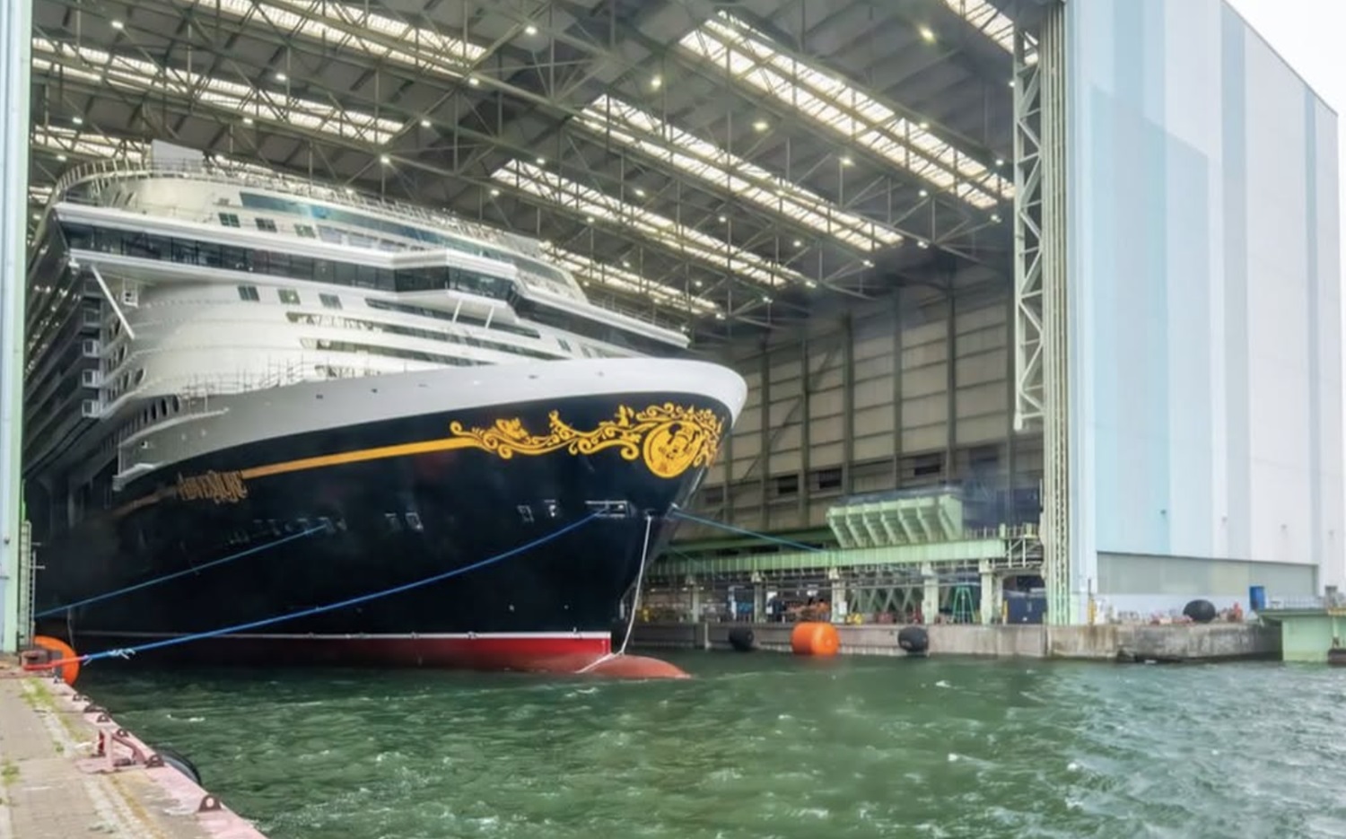 - The massive ship, originally acquired mid-construction by Disney, is ready to be floated out of the shipyard.