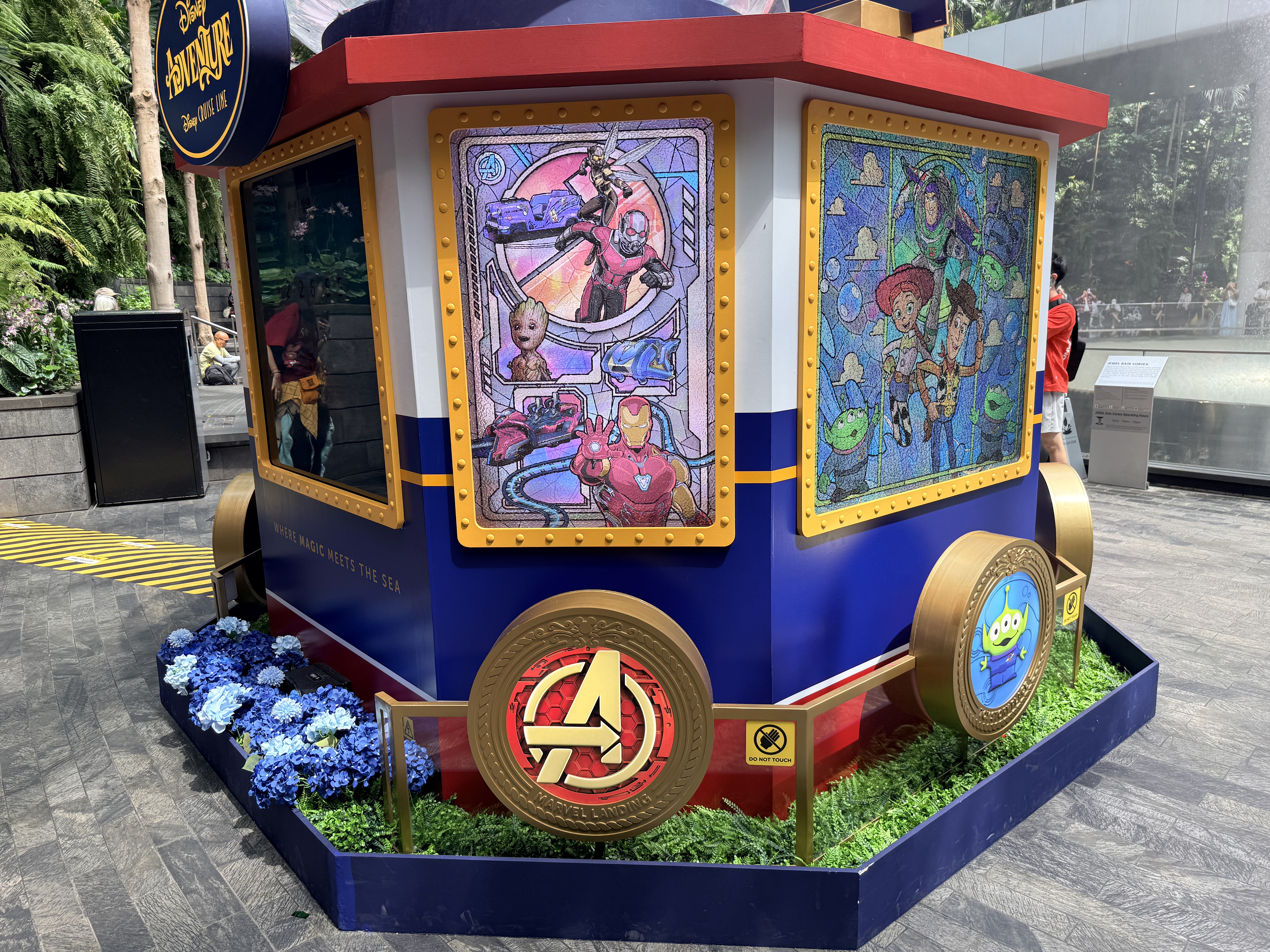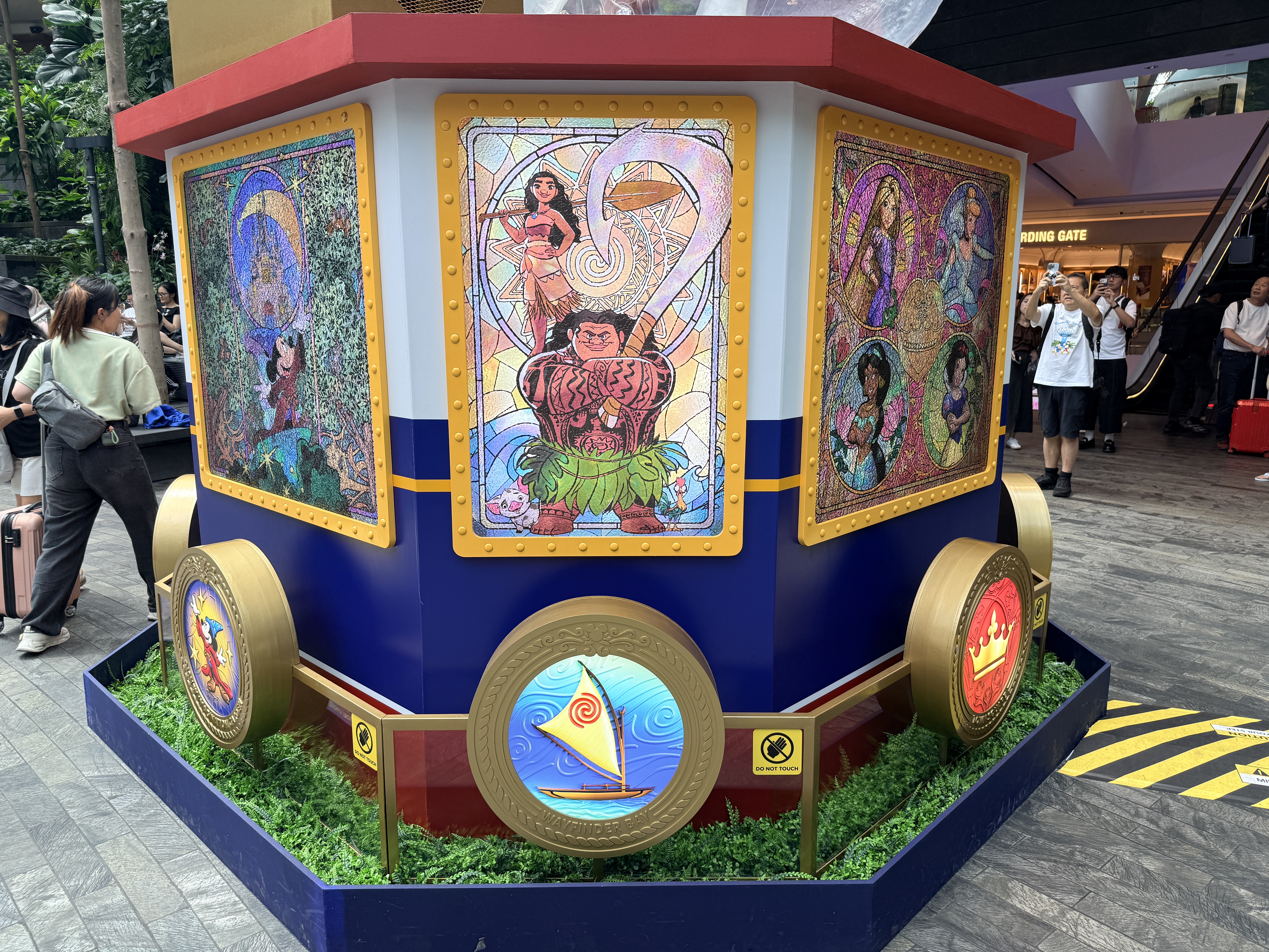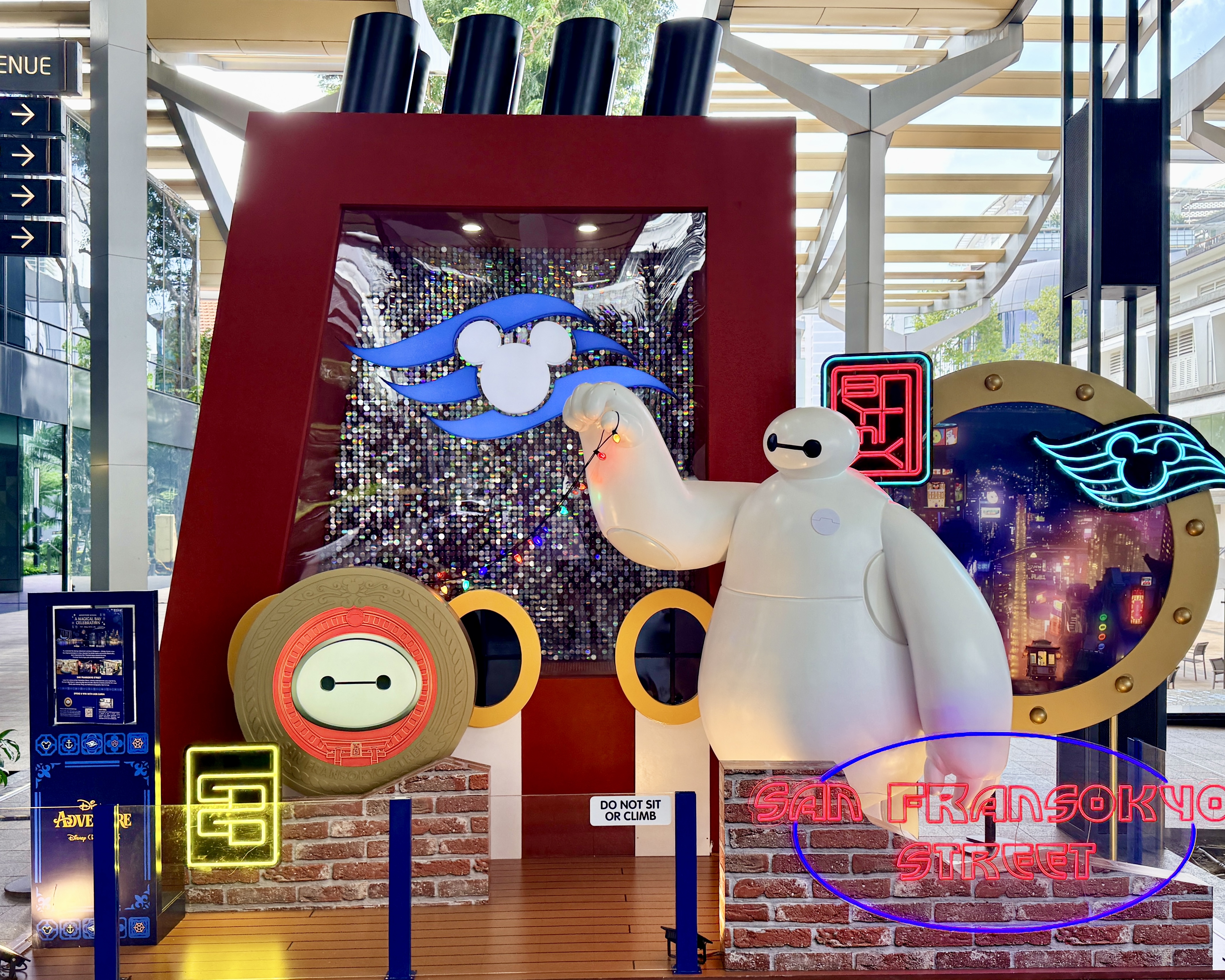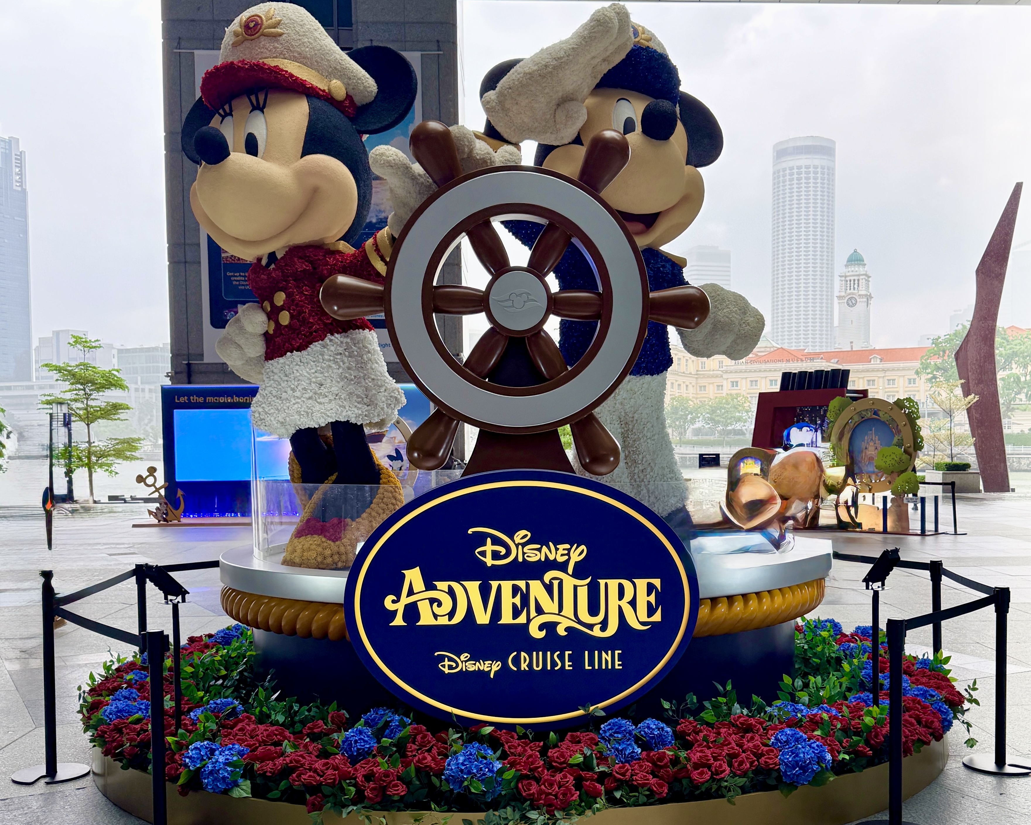 As we get ready for the maiden voyage of the new Disney Adventure, the newest and largest ship in the Disney Cruise Line fleet, all hands are on deck at the Singapore Changi Airport. There, displays featuring the new districts and neighborhoods of the massive ship - which will be homeported in Singapore for a minimum of five years - can be found throughout the airport and its terminals.