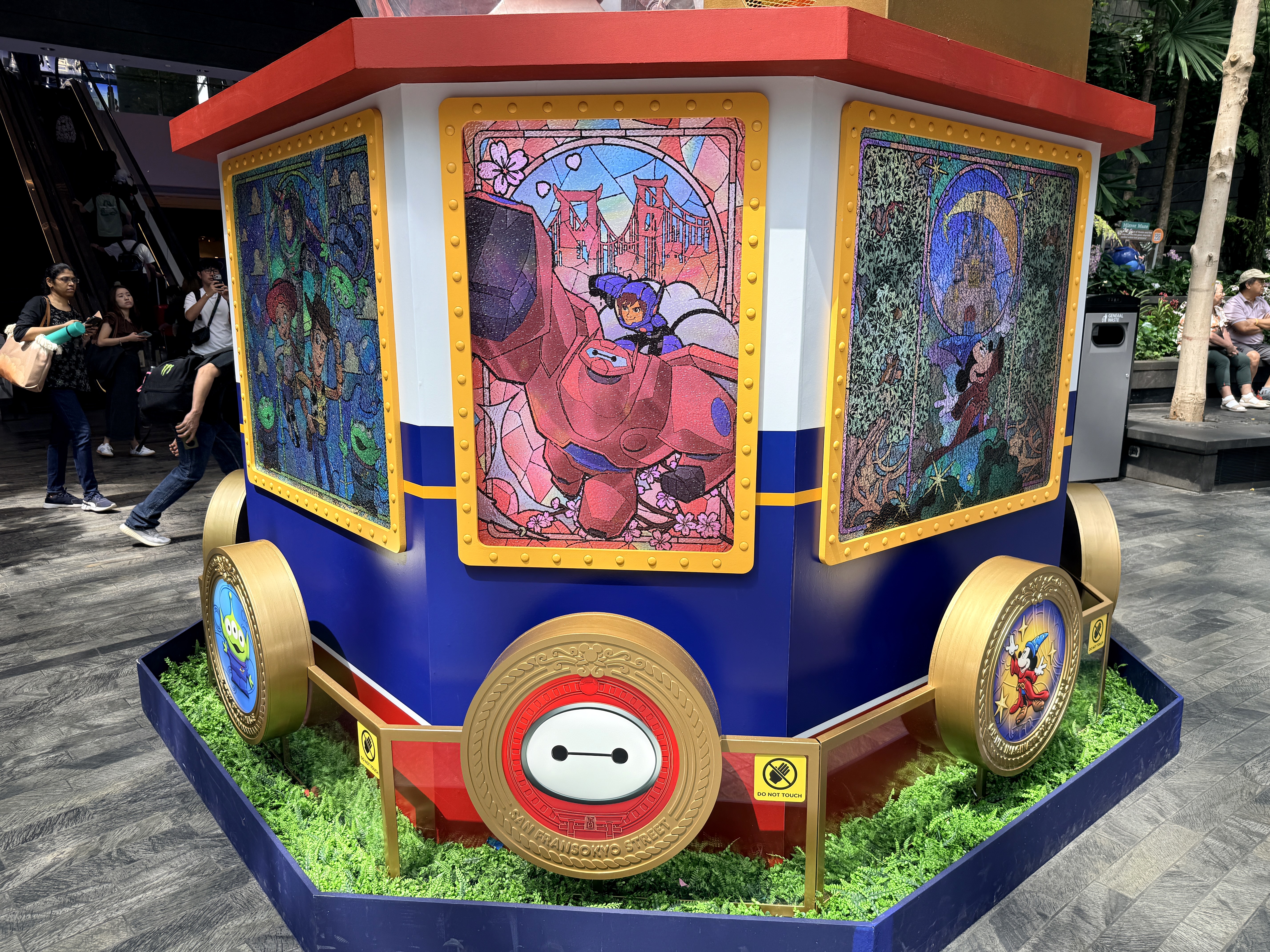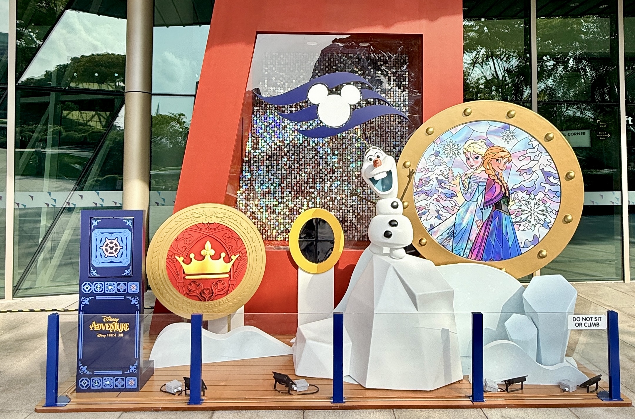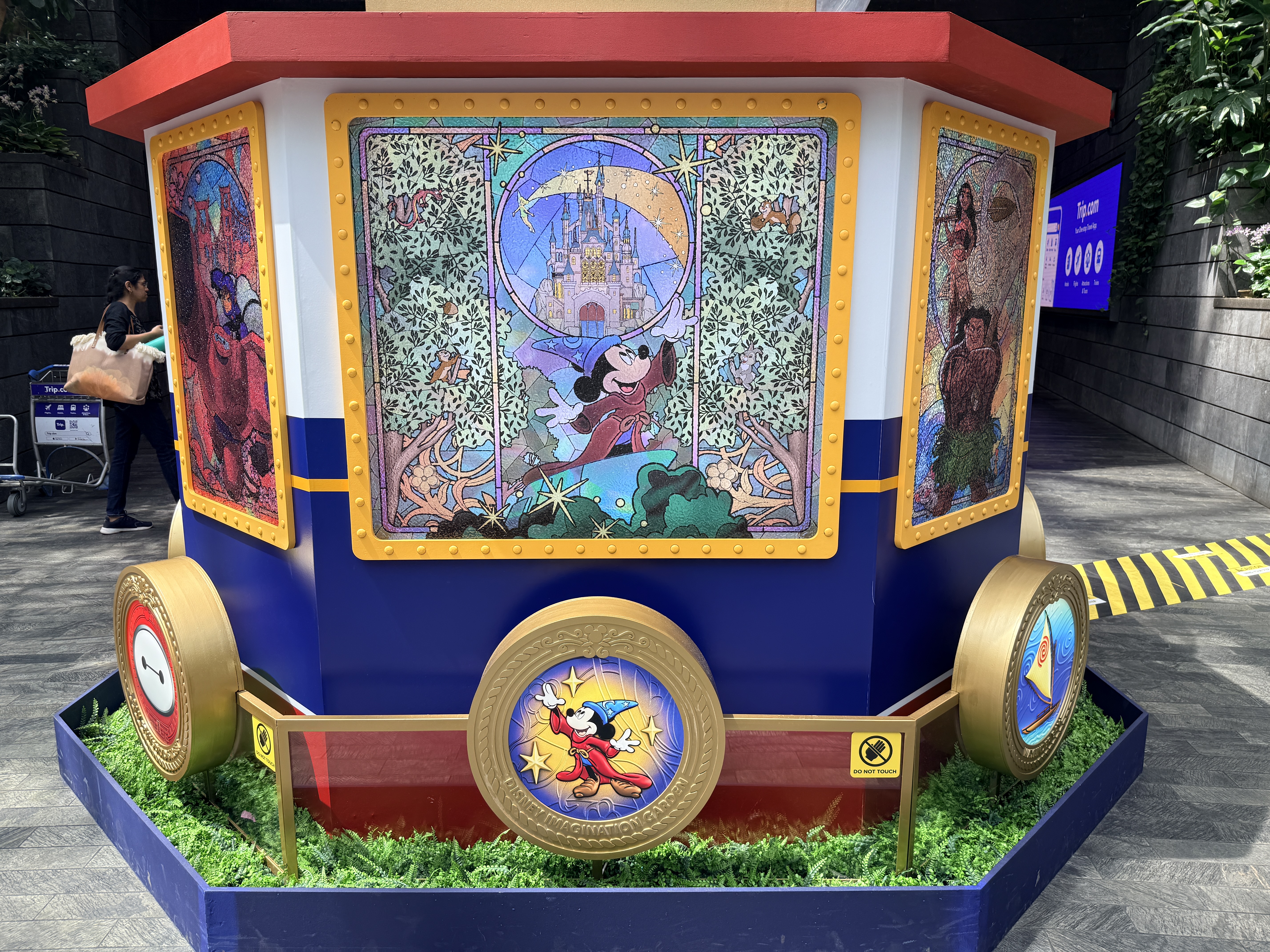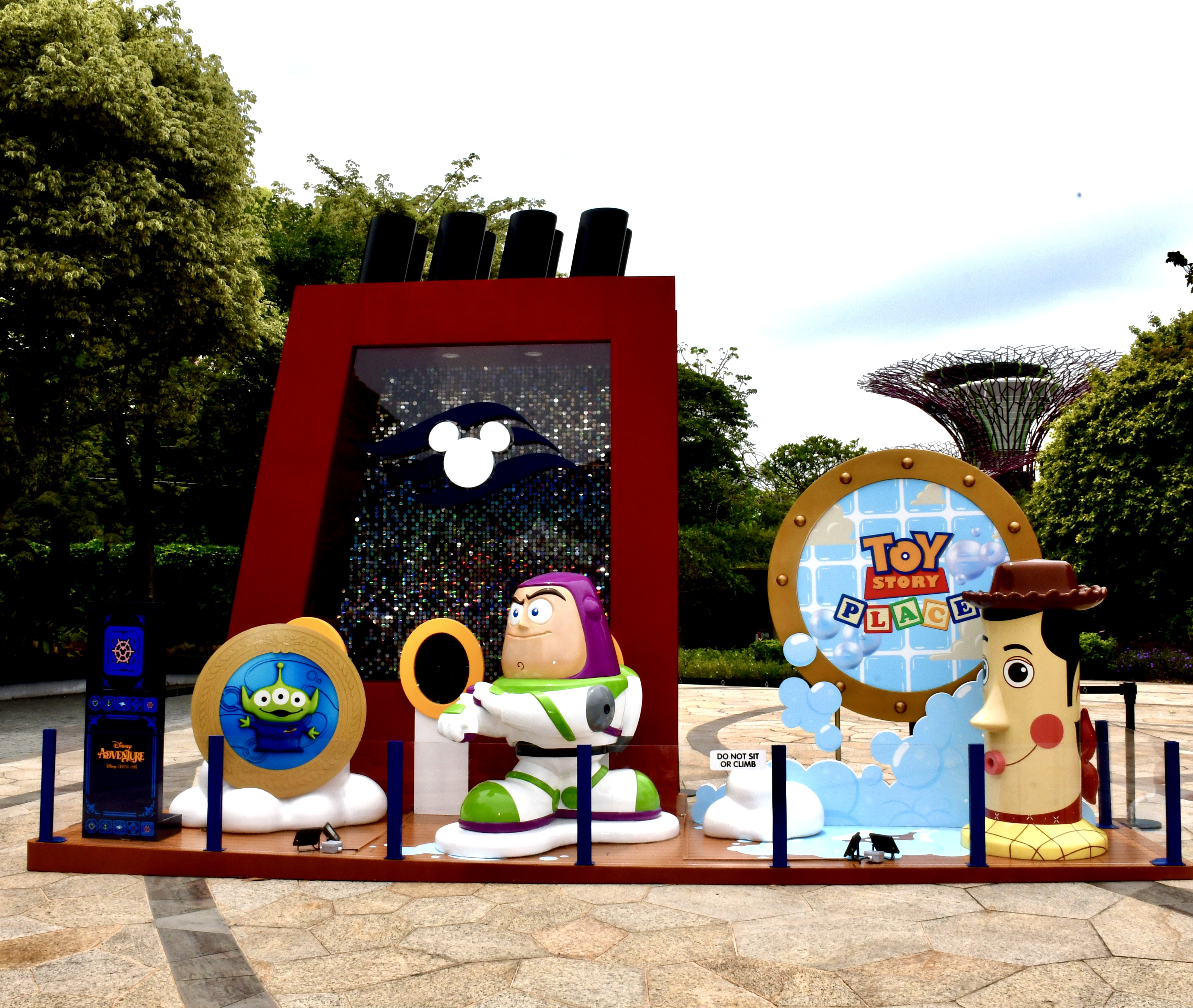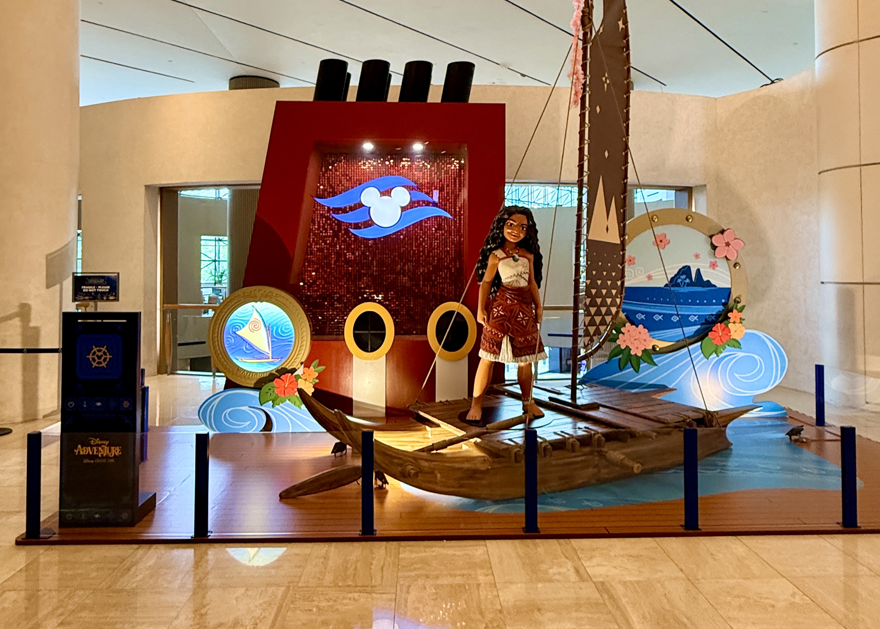 As we get ready for the maiden voyage of the new Disney Adventure, the newest and largest ship in the Disney Cruise Line fleet, all hands are on deck at the Singapore Changi Airport. There, displays featuring the new districts and neighborhoods of the massive ship - which will be homeported in Singapore for a minimum of five years - can be found throughout the airport and its terminals.