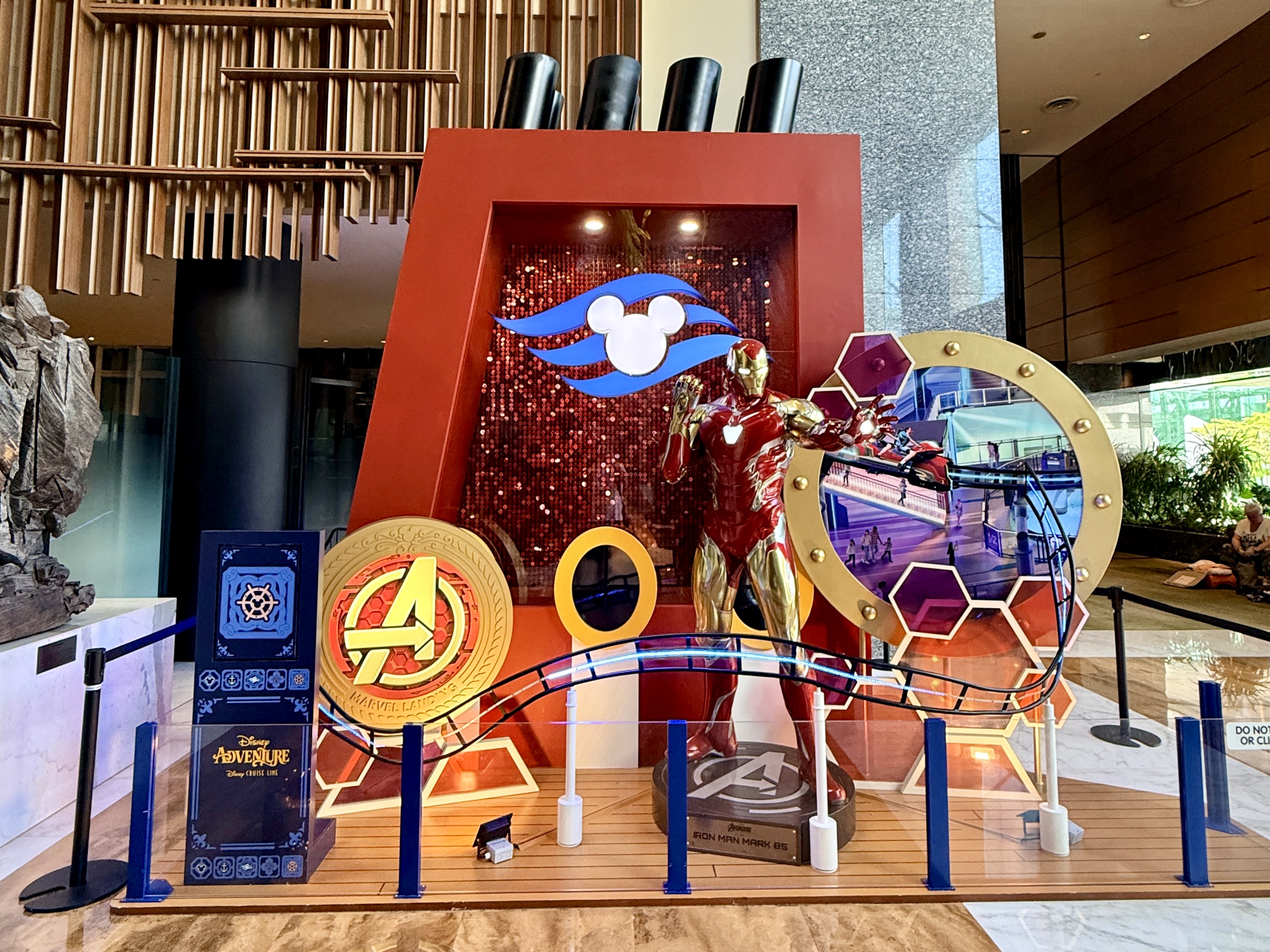 The displays feature the different themed areas of the ship, including Marvel Landing and Wayfinder Bay.
