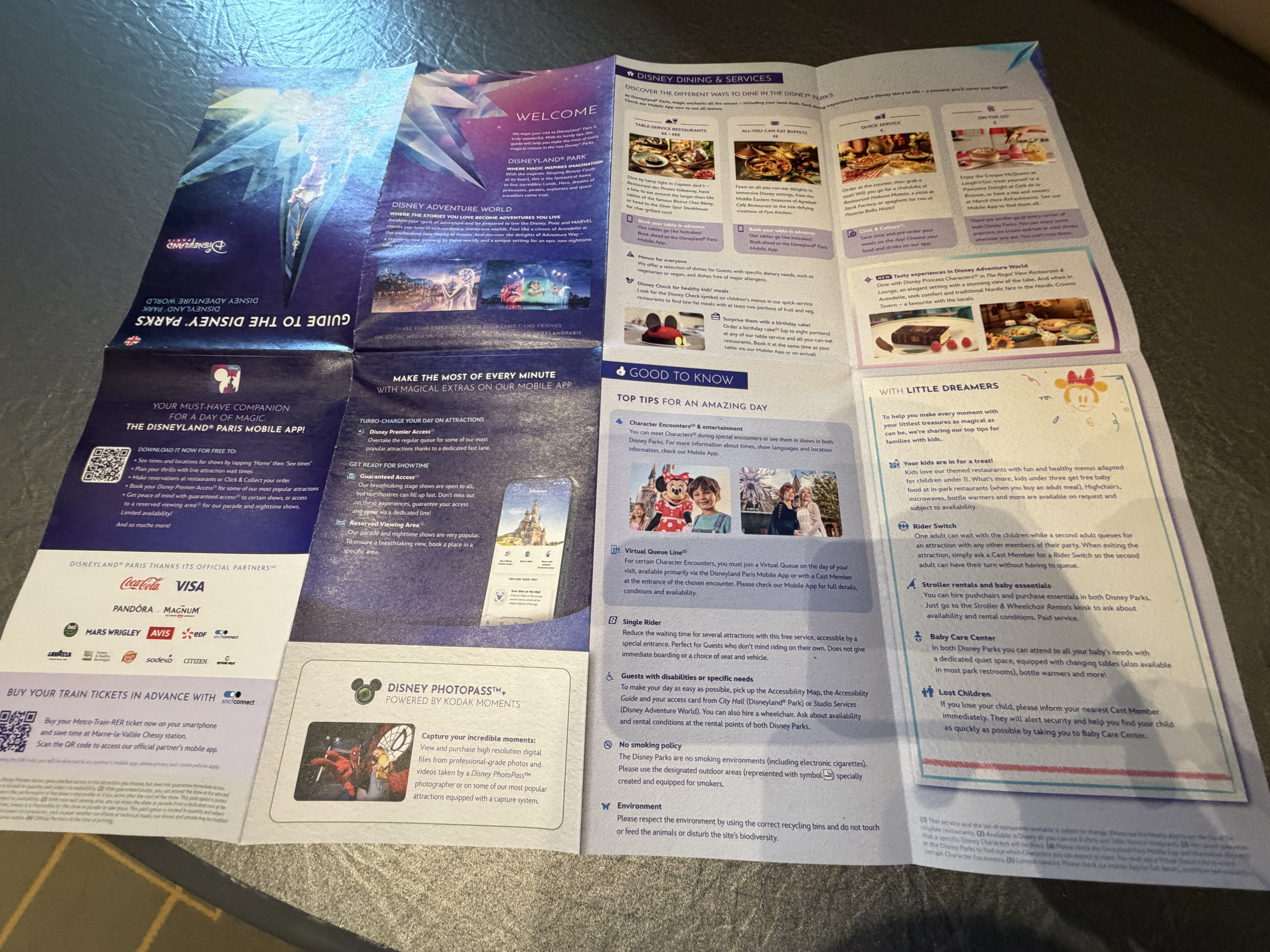 As is the case with the Disneyland Paris guidemaps, both parks are featured on one single sheet, along with the attractions, restaurants, entertainment, and more.