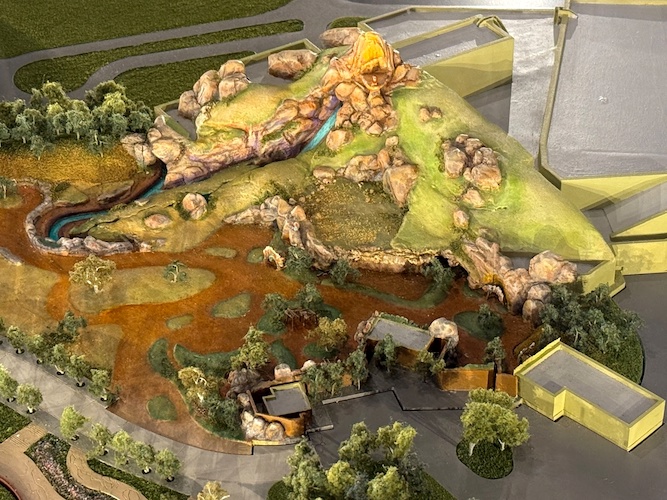 - Surrounding the model are some pieces of concept art along with more information on the park’s epic transformation.