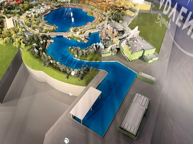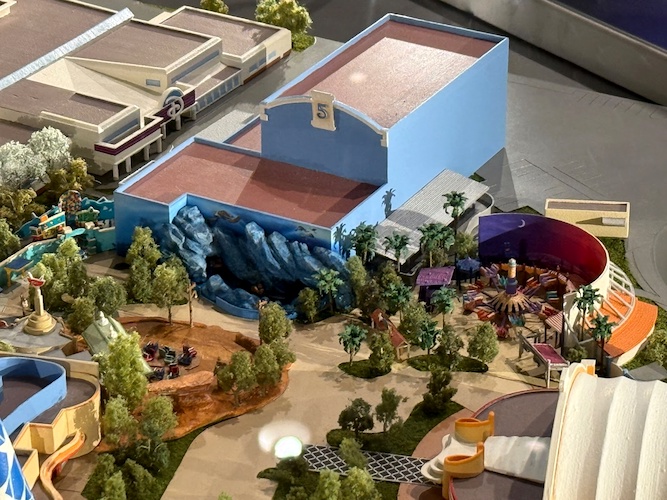 - The model even details the backstage water storage area for the park’s new nighttime spectacular, which is connected to Adventure Bay.