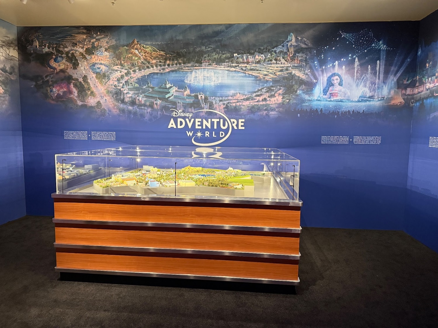 - The highlight of the exhibit is a model of the reimagined and expanded park, which will soon be known as Disney Adventure World.