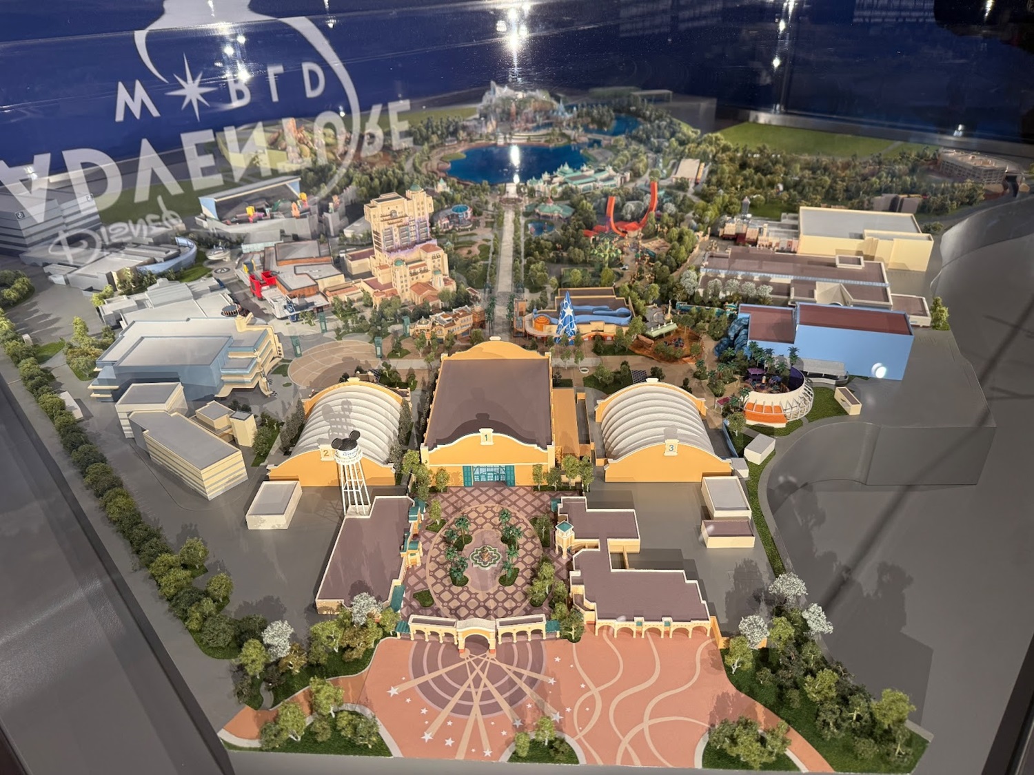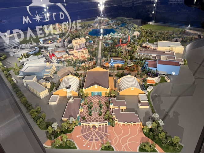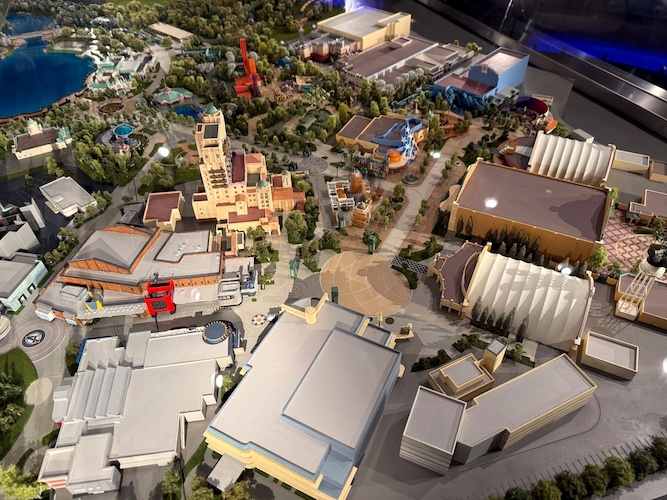 - The model features reimagined elements of the park which have or will debut, such as World Premiere and Avengers Campus.