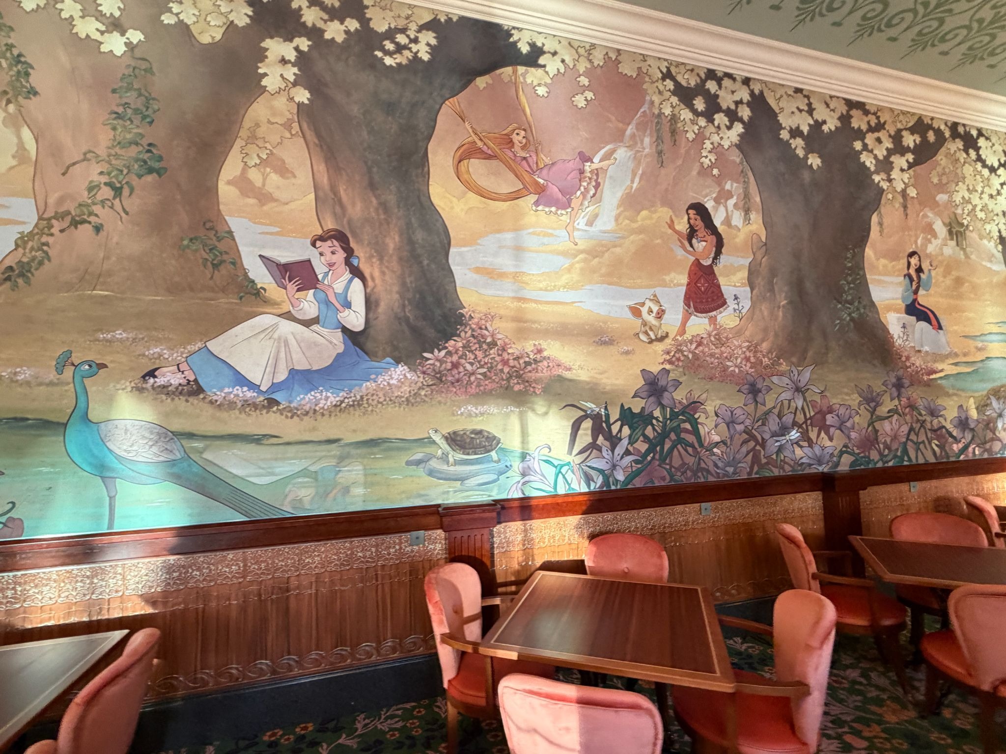- The ornate space is filled with a massive mural highlighting the incredible heroines that helped make Disney the company it is today.