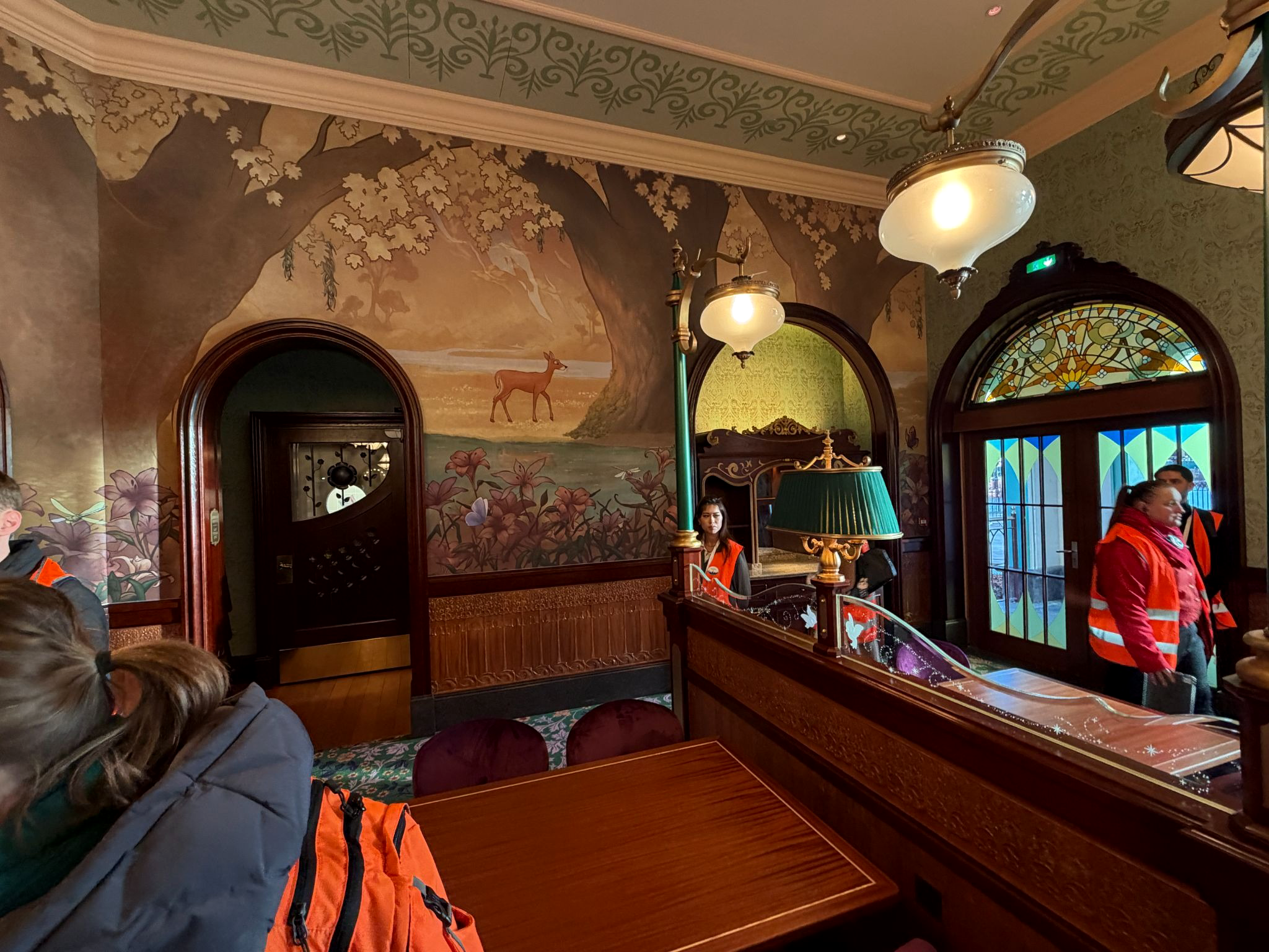 - The lounge includes the first-ever bar inside either Disneyland Paris park, decorated in royal blue with a gold-accented wooden bar.