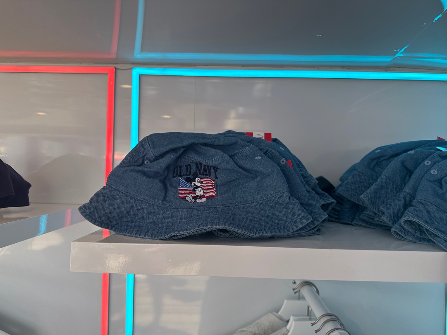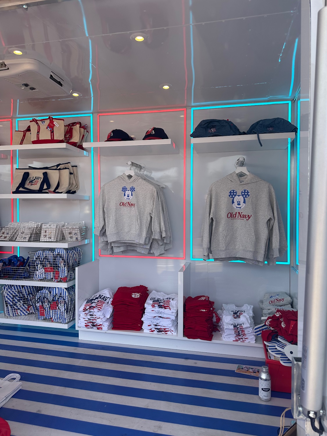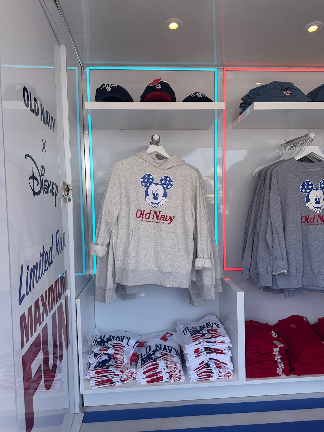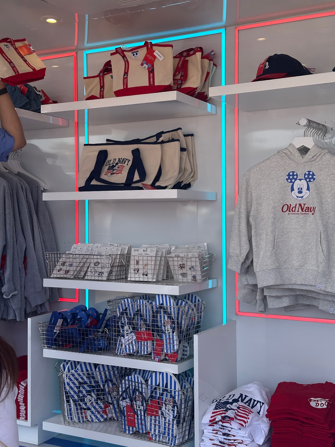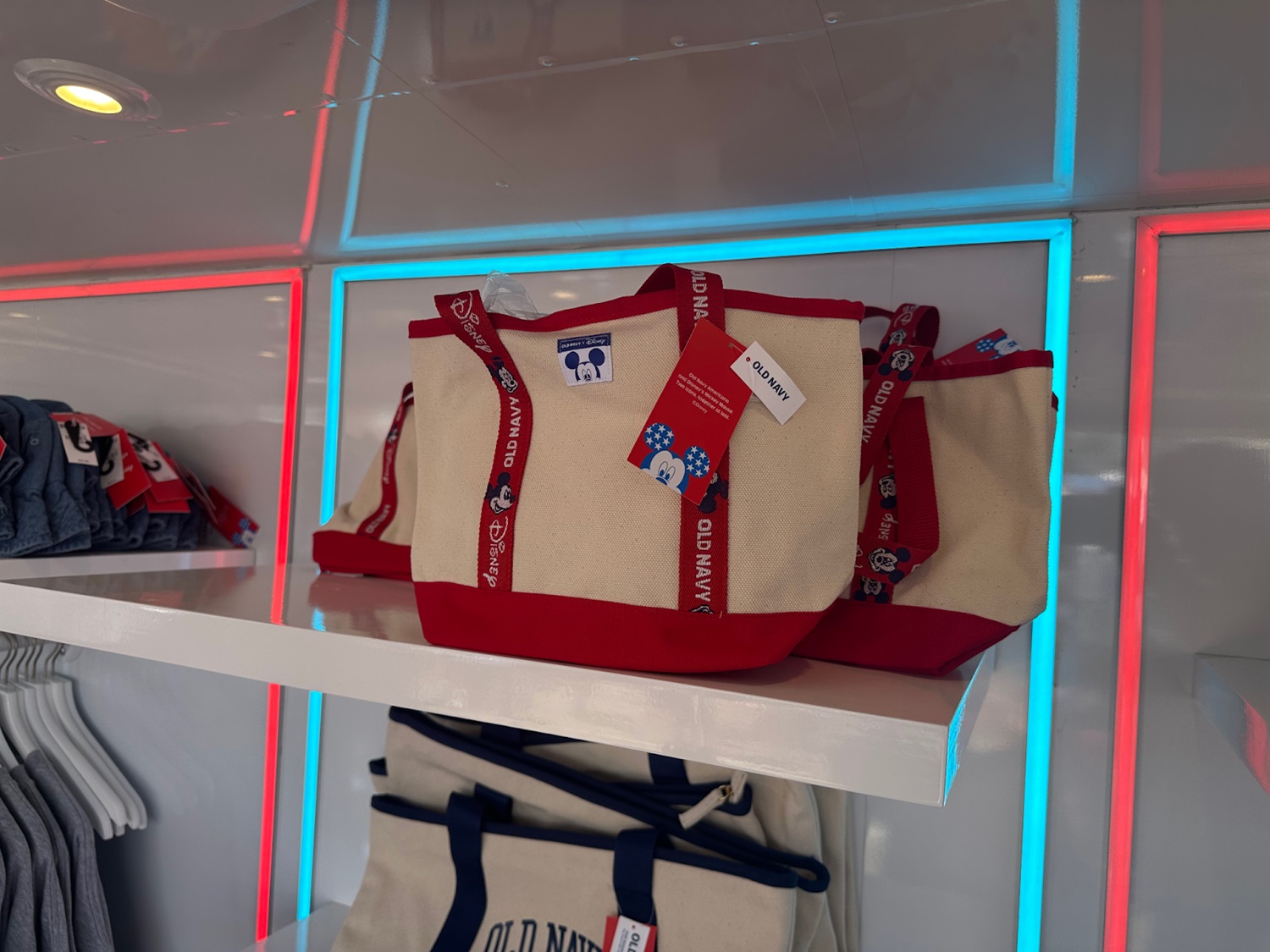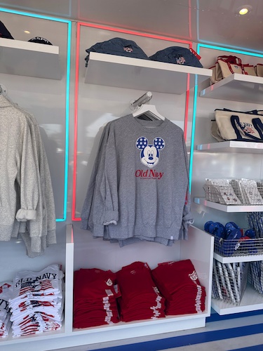 The red, white, and blue color scheme can be found throughout Old Navy and Disney’s latest collection of apparel and accessories. Many of the collaboration’s sold out items were available during the event, including the incredibly popular mini tote bag.