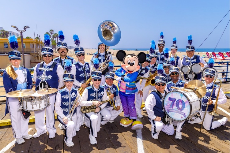 Playing classic Disney songs like “Reflection" from Mulan, “Supercalifragilisticexpialidocious" from Mary Poppins, and park classics like “Fantasmic!," the Disneyland Band performed for about 15 minutes during the surprise appearance. As the Disneyland Resort celebrates its 70th anniversary, Mickey Mouse joined the virtuosos in his “Celebrate Happy" attire, dancing alongside the unforgettable Disney tunes. The Disneyland Band closed out the performance with the official song of the 70th celebration, “Celebrate Happy" by the Jonas Brothers.