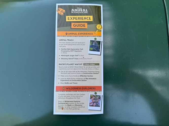 Now titled Experiences Guides, the paper handouts include not just show times, but also musical appearances, animal trails, and wilderness explorer information.