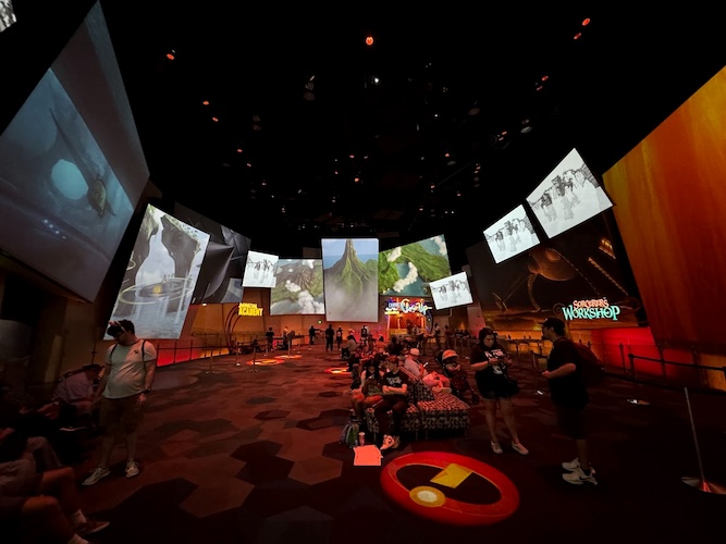 The argument can be said that “well it's just a lobby for people to move through to various attractions in the building," including Animation Academy, Turtle Talk with Crush, or the ever-decreasing exhibit space of the Sorcerer’s Workshop - which was once home to Beast’s Library and Ursula’s Grotto, where you can find out what Disney character you’re most like, or record your own voice into classic moments, respectively. That argument may be true, but the courtyard lobby is an attraction unto itself, celebrating the vast catalog of films from Walt Disney Animation Studios and Pixar Animation Studios as well and might just deserve more than 34 minutes. And, because it is a lobby, people can choose to relax and enjoy, or depart and move on to their next adventure. There are couches throughout the space for a reason.