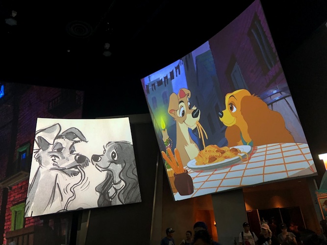 After nearly a decade since we last saw some changes to the Disney Animation attraction at Disney California Adventure, the popular loop of film montages and clips, showcasing concept artwork, backgrounds, and final scenes from the animation processes from classic films has been updated.