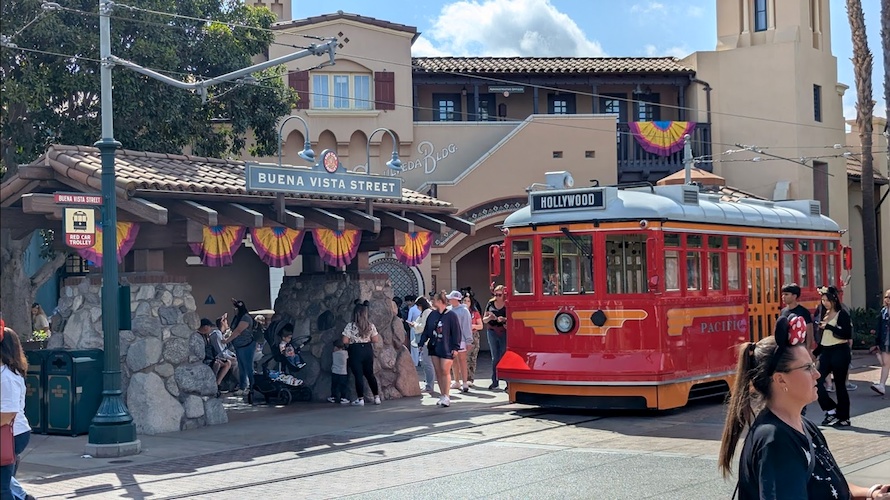 Disney California Adventure icons, such as Grizzly Peak, the San Fransokyo Bridge, the Cozy Cone Motel, Carthay Circle and the dearly-departed Red Car Trolley are also featured in the displays.