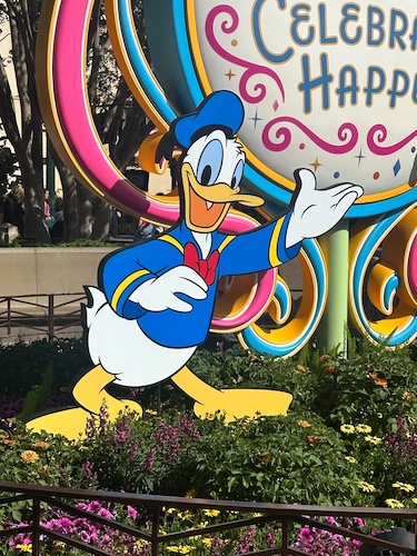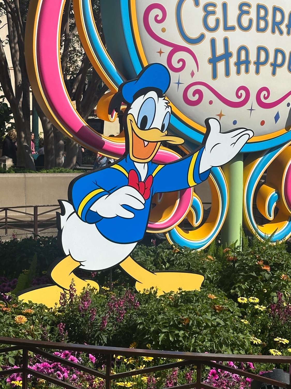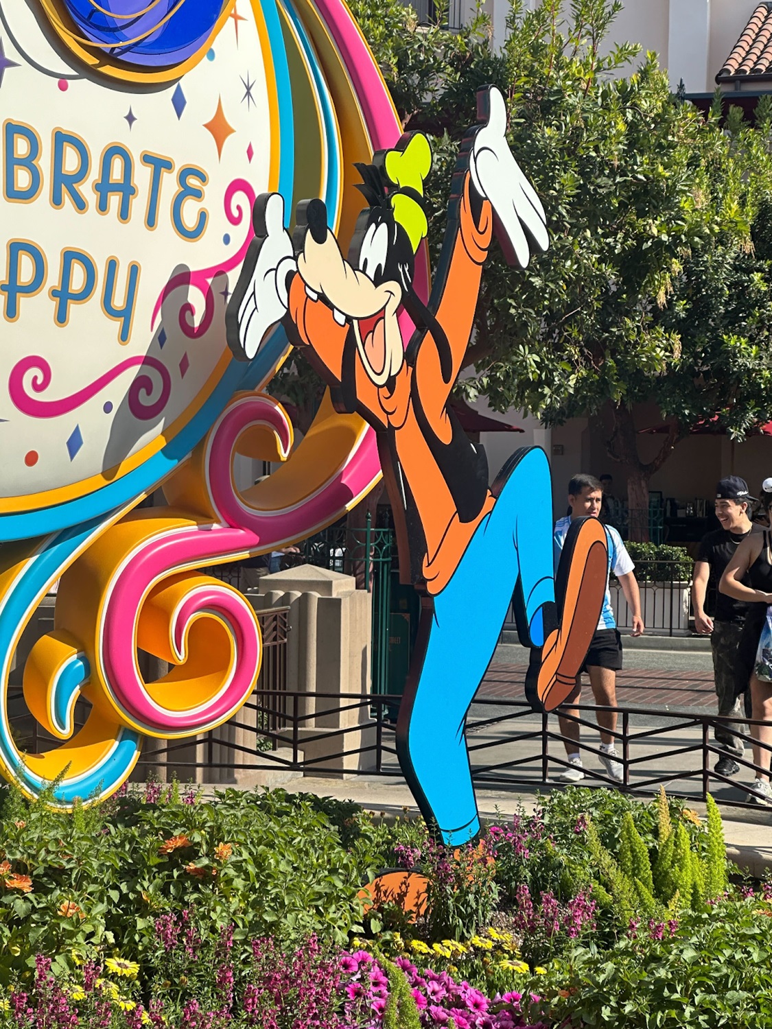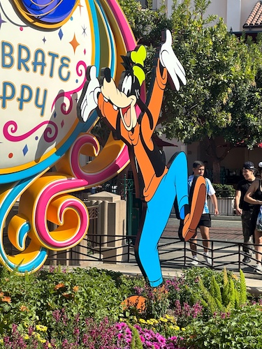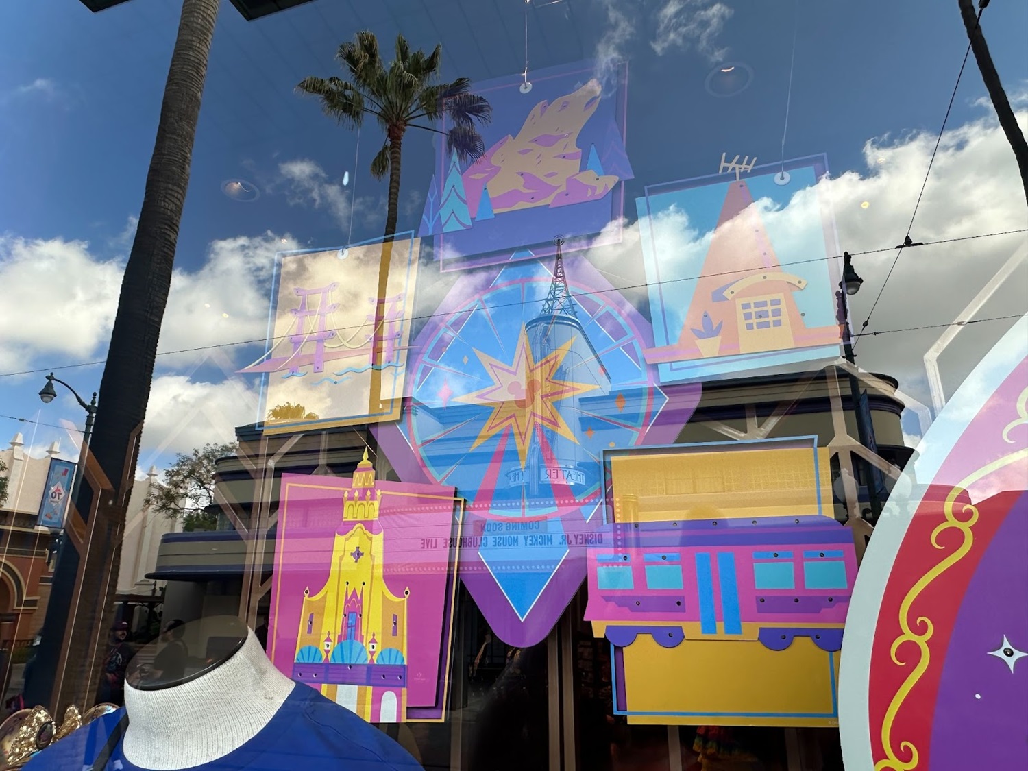 All up and down Buena Vista Street, you’ll now find multi-colored banners and bunting in the pink, blue and yellow color scheme of the celebration.