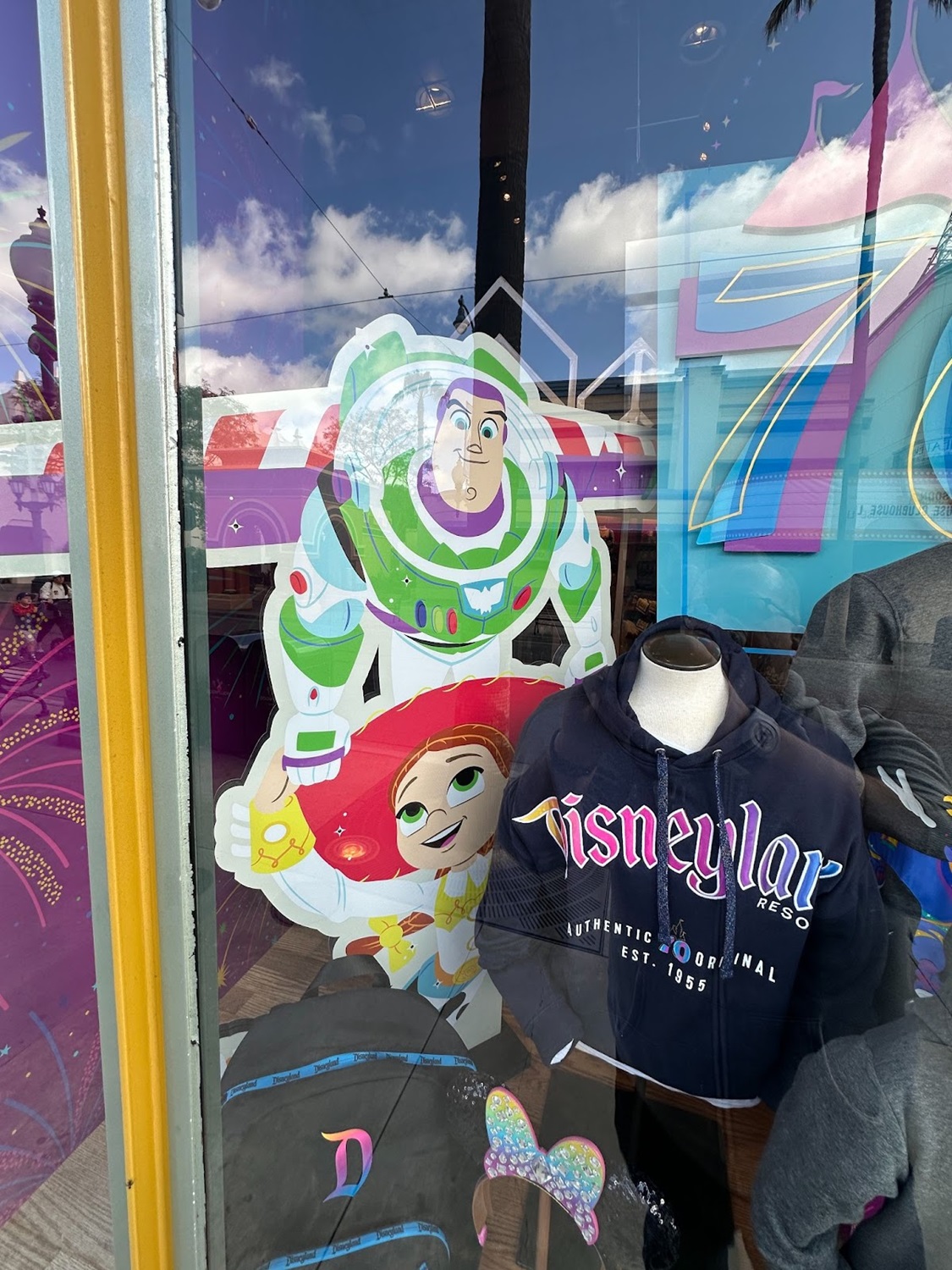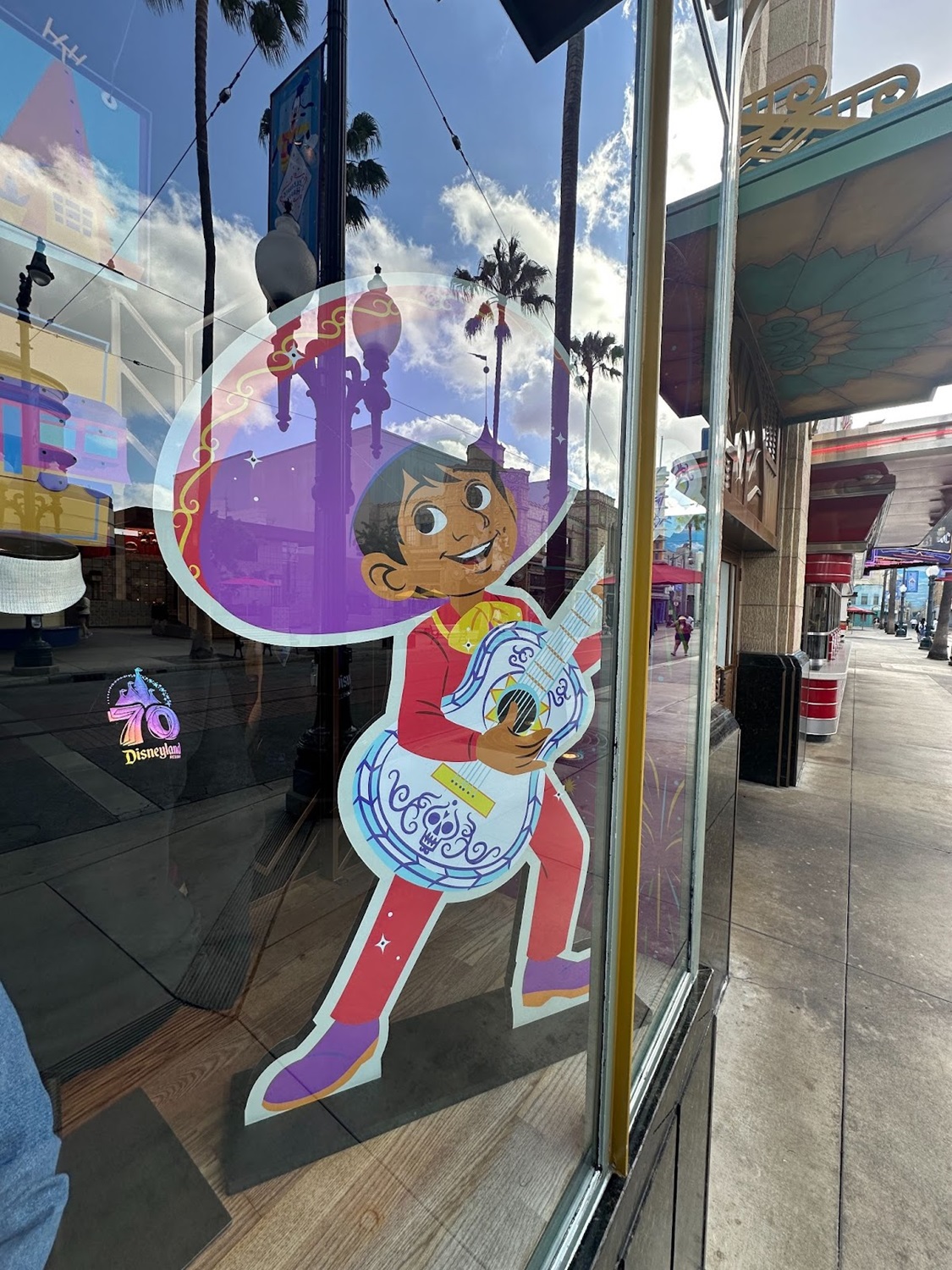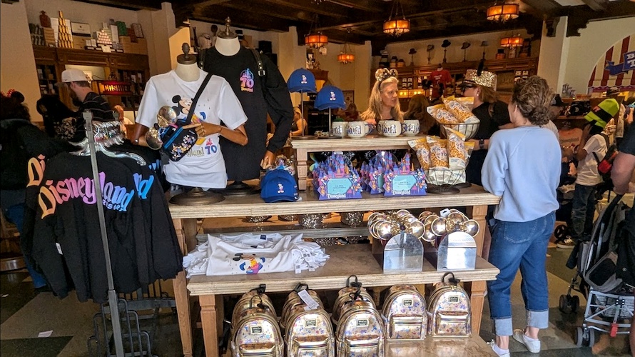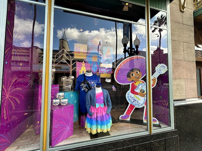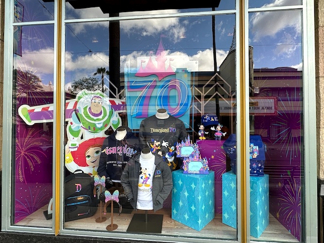 Of course, you’ll find plenty of 70th anniversary merchandise inside the shops of Buena Vista Street, along with window displays.