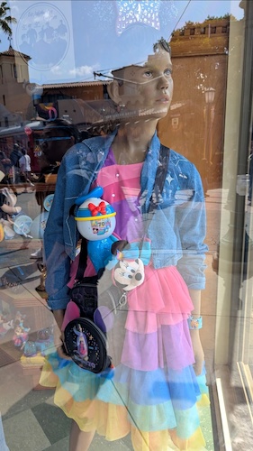 The shop windows of Gone Hollywood also feature some Disneyland 70th displays, featuring various characters – such as Clarabelle in her 70th costume – alongside some of the merchandise collections.