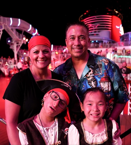 - Anthony DiDonato, 17, from Colorado, loves cruising and enjoyed his first time on a Disney Cruise Line ship. Anthony’s younger sister Aubrey, 10, said that Anthony was “really happy" during the sailing, adding that “he loves spending time with his family." Anthony, Aubrey, their parents, and members of their extended family donned pirate garb for the Pirates in the Caribbean deck party, where they danced in the glow of fireworks over the upper decks.