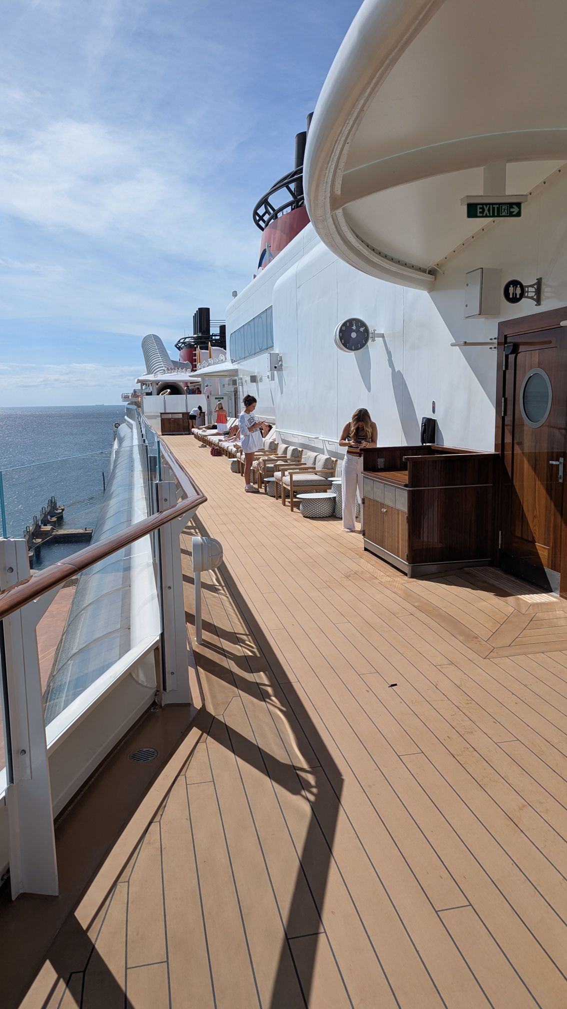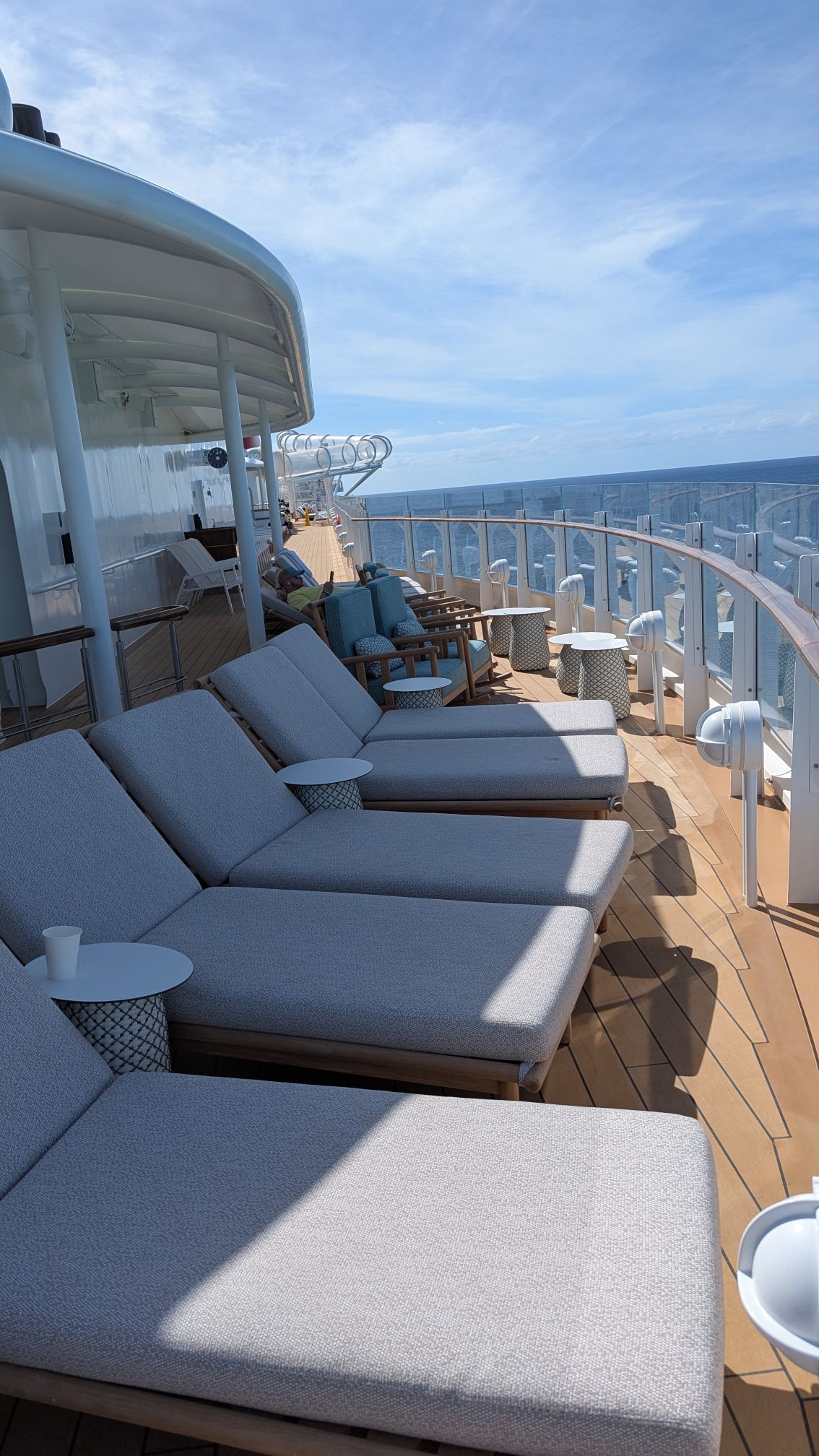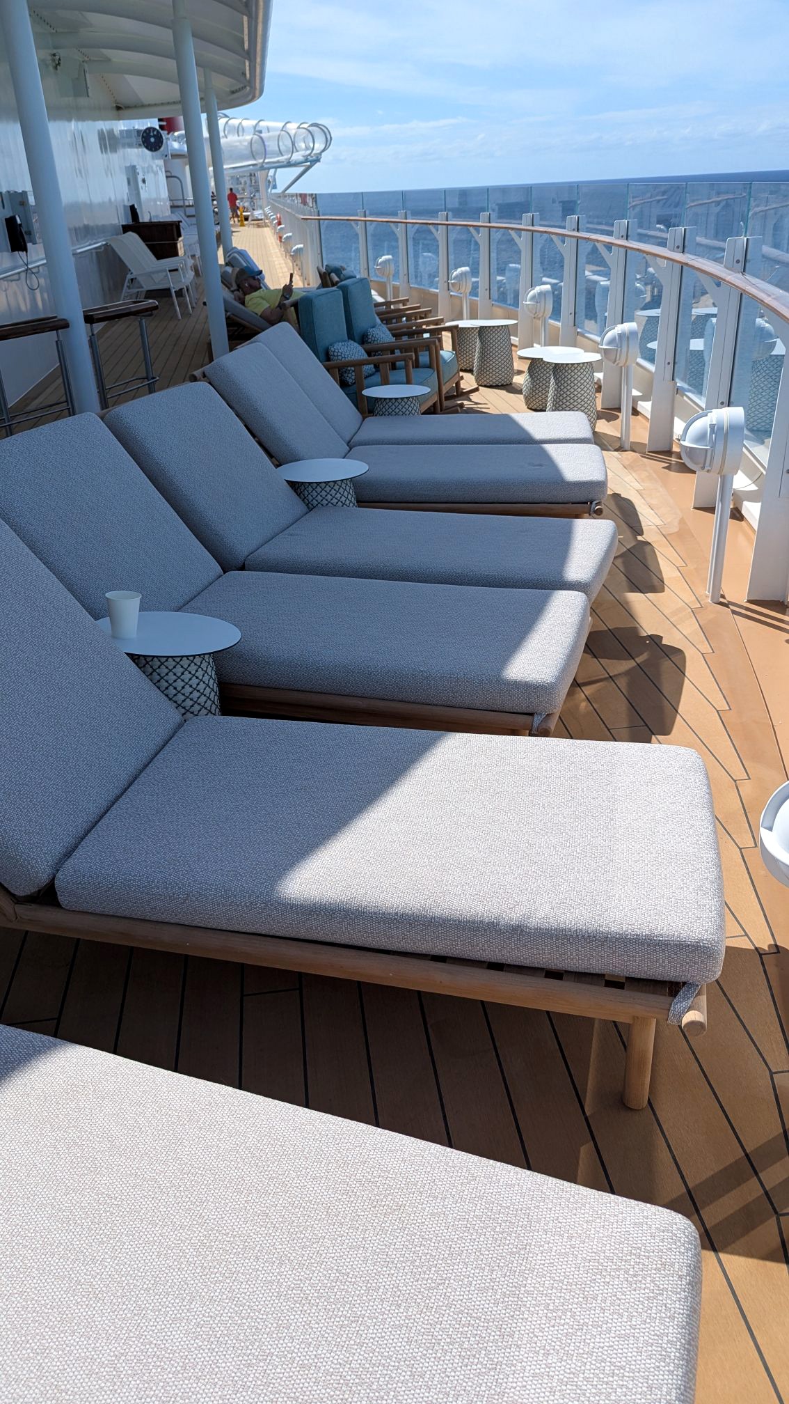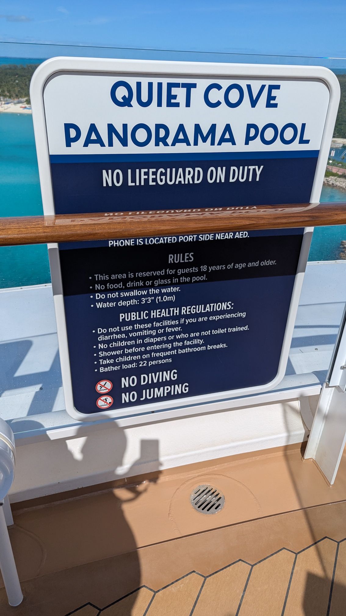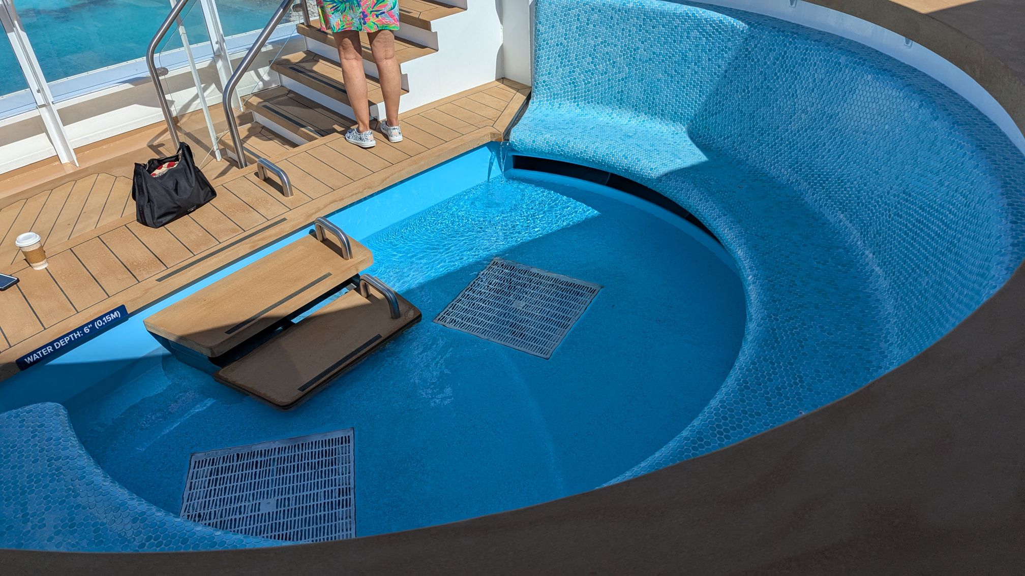 Below you can check out Doobie's photos from the Disney Destiny's adults-only outdoor areas, pools, and the adjacent Cove Cafe, which features Moana-themed artwork.