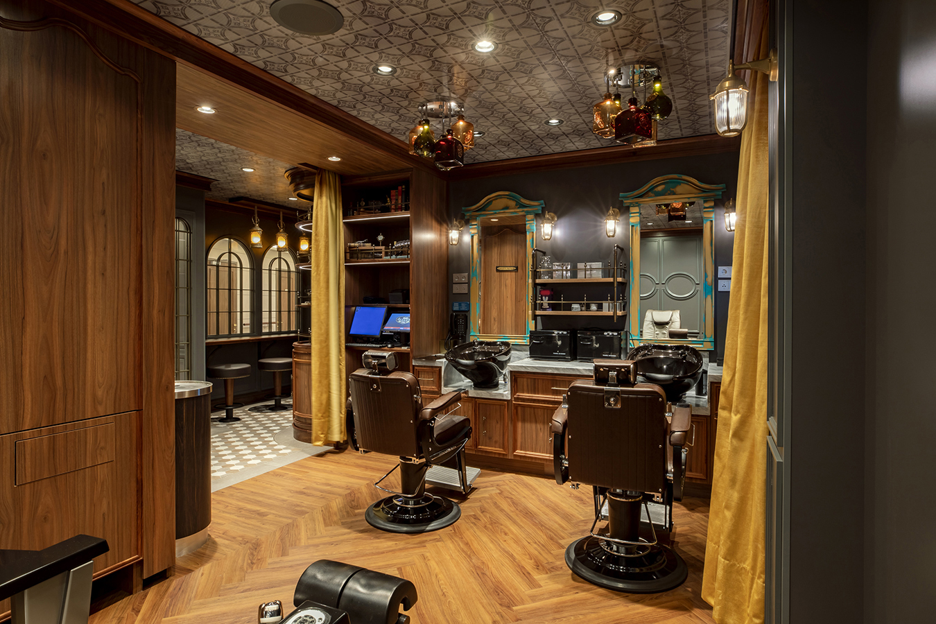 - Upscale grooming services for both men and women are available in Hook's Barbery (inspired by Peter Pan) and the Untangled Salon (I could see Rapunzel getting some work done on her hair here).